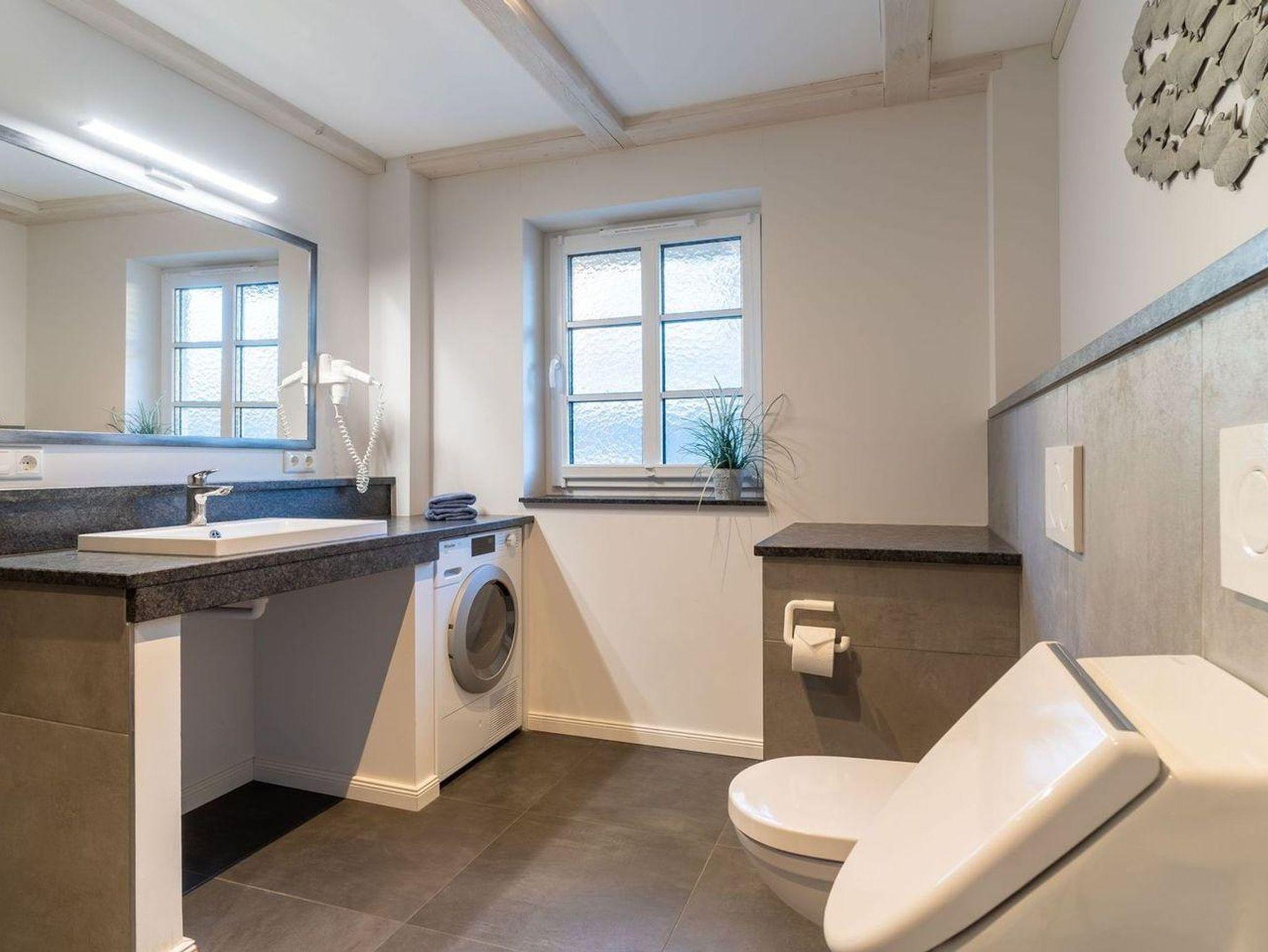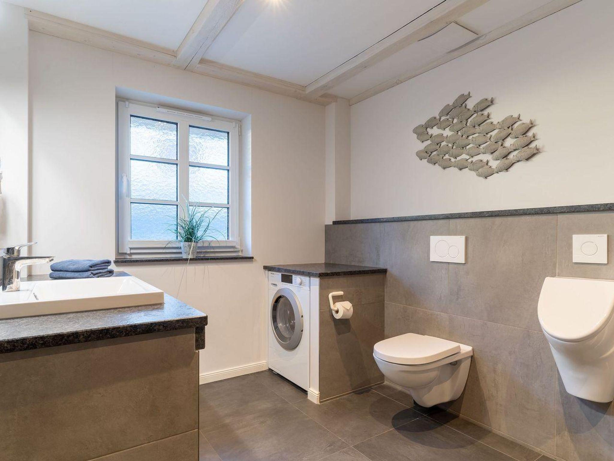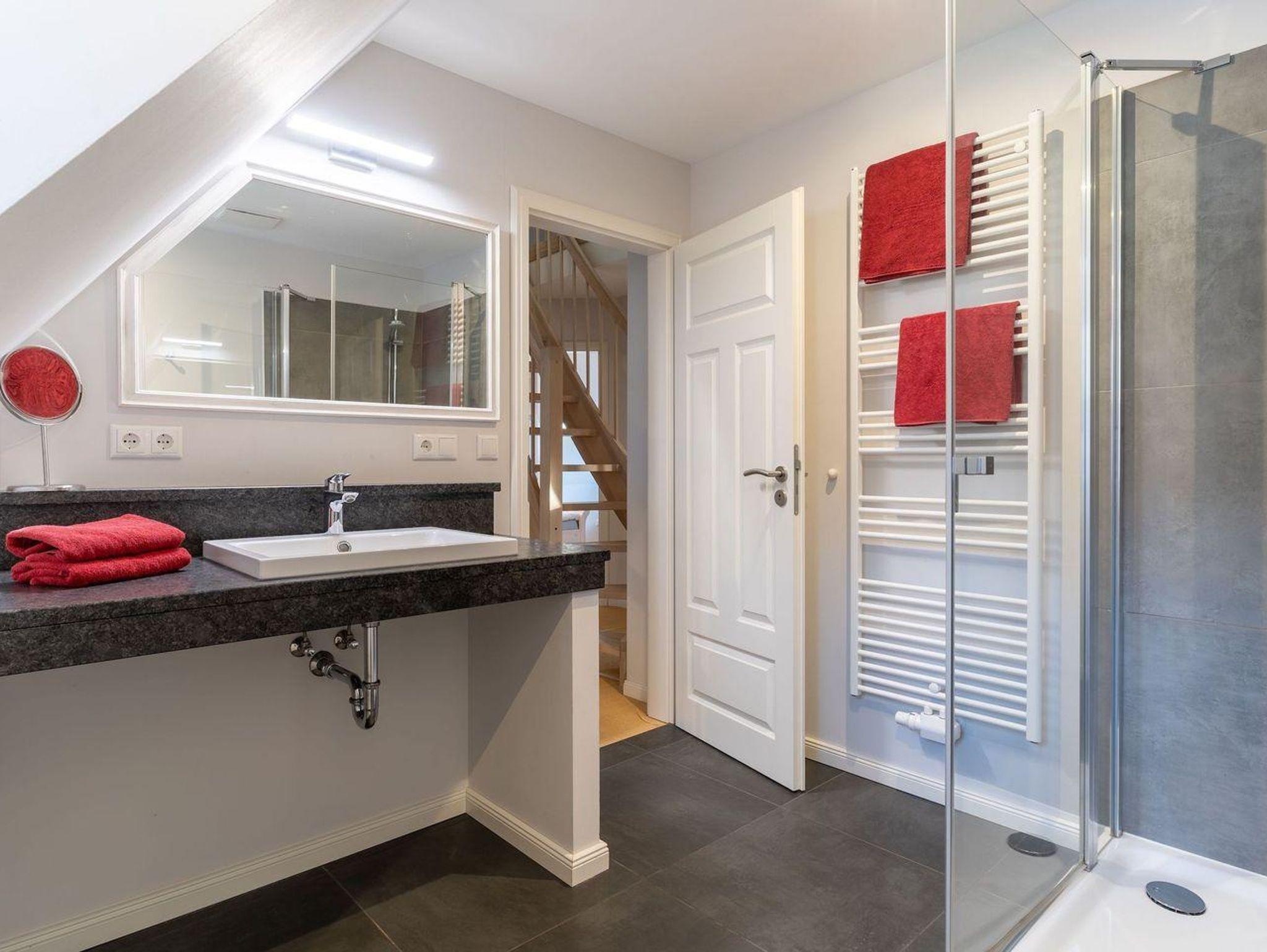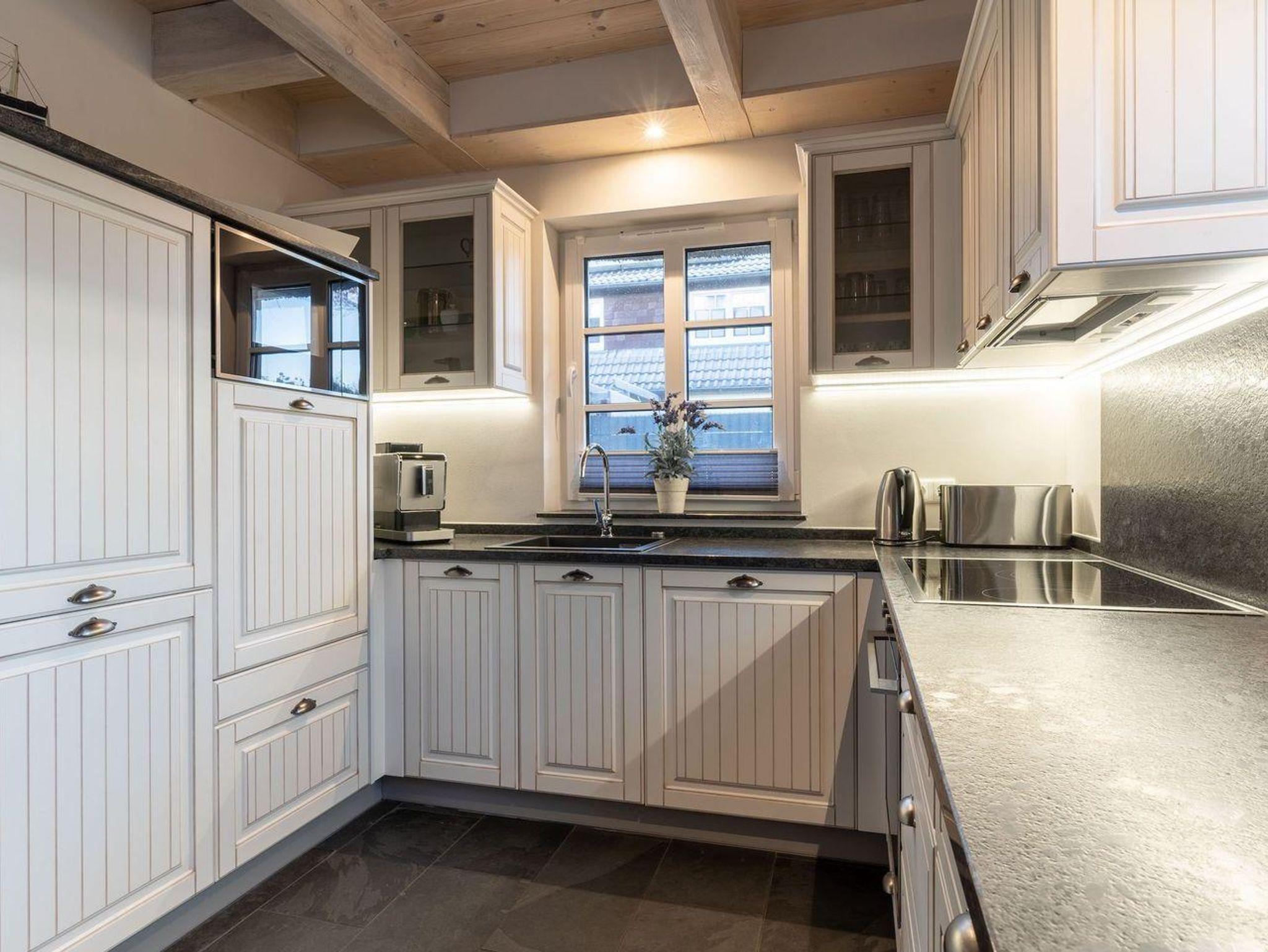 Die wunderschöne Haushälfte unter Reet verfügt über ca. 130 m² und bietet Platz für 1-6 Personen.Im Erdgeschoss befindet sich der lichtdurchflutete Wohnraum mit TV, Kamin, einer offenen Küche sowie einem stilvollen Essbereich.Die Küche ist ausgestattet mit Backofen und Geschirrspüler, sowie einem Esperto-Caffè-Automat, Toaster, Wasserkocher und den üblichen Küchenutensilien.An den Wohnbereich schließen sich ein Flur, ein Duschbad und ein Doppelschlafzimmer an.Das Erdgeschoss ist rollstuhlfreundlich.Über eine Holztreppe gelangt man in das Obergeschoss. Die beiden Schlafzimmer, jeweils mit einem Doppelbett sorgen für ruhevolle Erholung.Im ersten Stock befindet sich ausserdem ein weiteres Duschbad sowie eine Sauna.