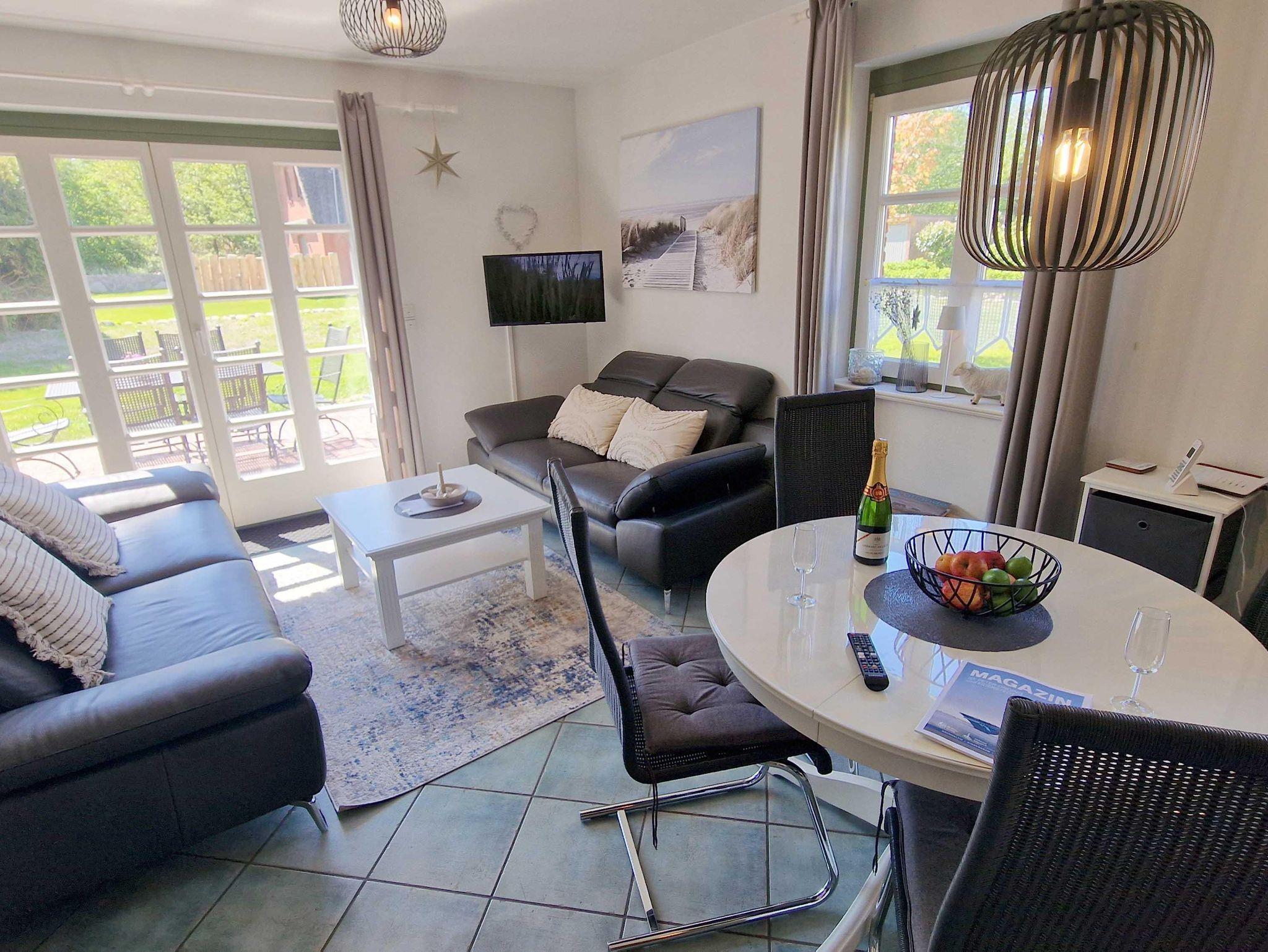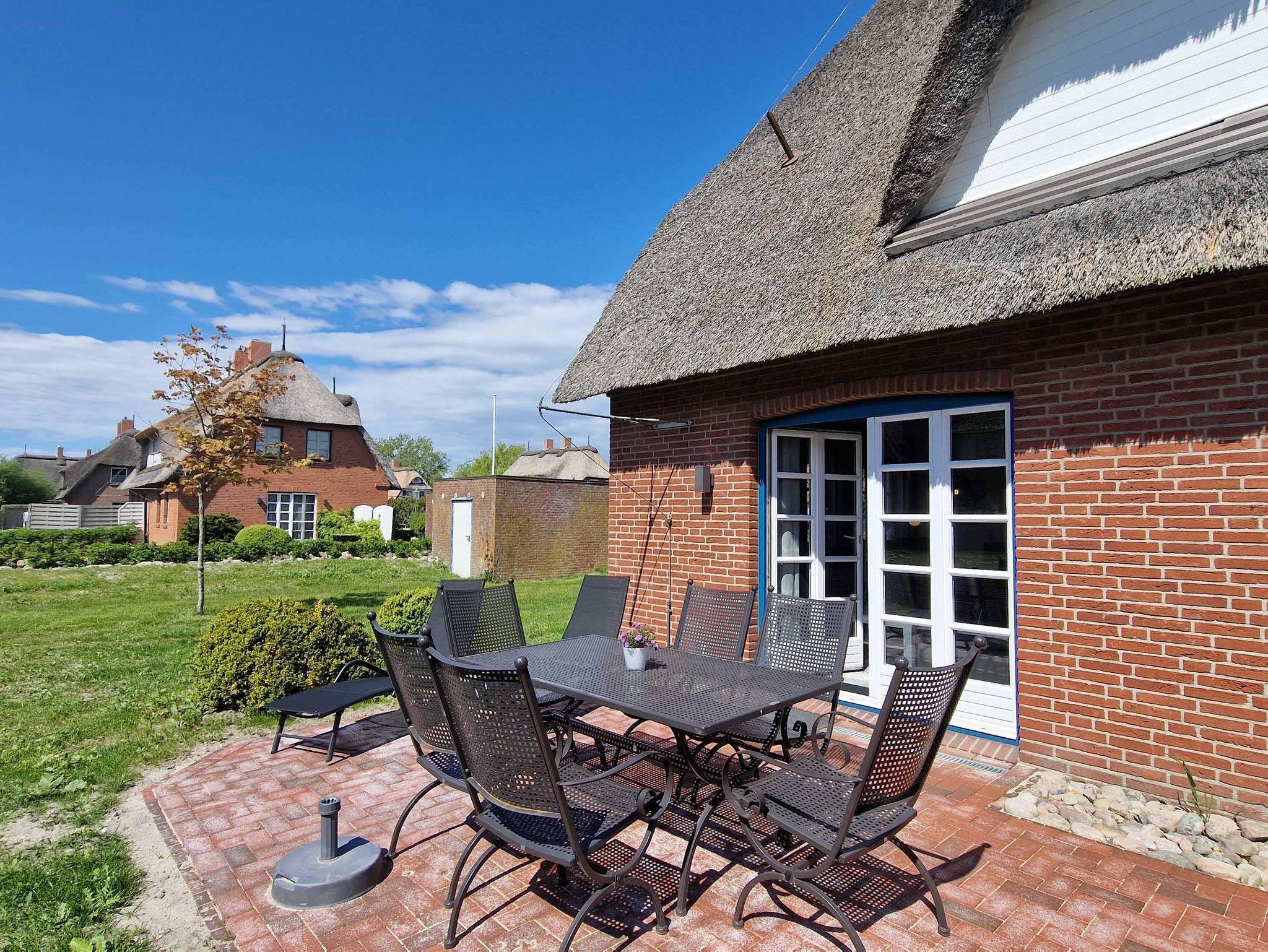 In der Reetdachhaushälfte Friesenstraße 51 erstrecken sich die 4 Zimmer über 2 Etagen und garantieren so ausreichend Platz. Auf der Terrasse in Süd-Westlage fällt das Entspannen leicht. Die schöne Einrichtung wird im Wohnzimmer durch einen Kamin ergänzt. Insgesamt gibt es hier 3 Schlafzimmer, von denen zwei mit Doppelbetten ausgestattet sind. Zusätzlich bekommen Sie hier ein Gäste-WC, eine Garage, eine Waschmaschine und eine wonnig-warme Fußbodenheizung.