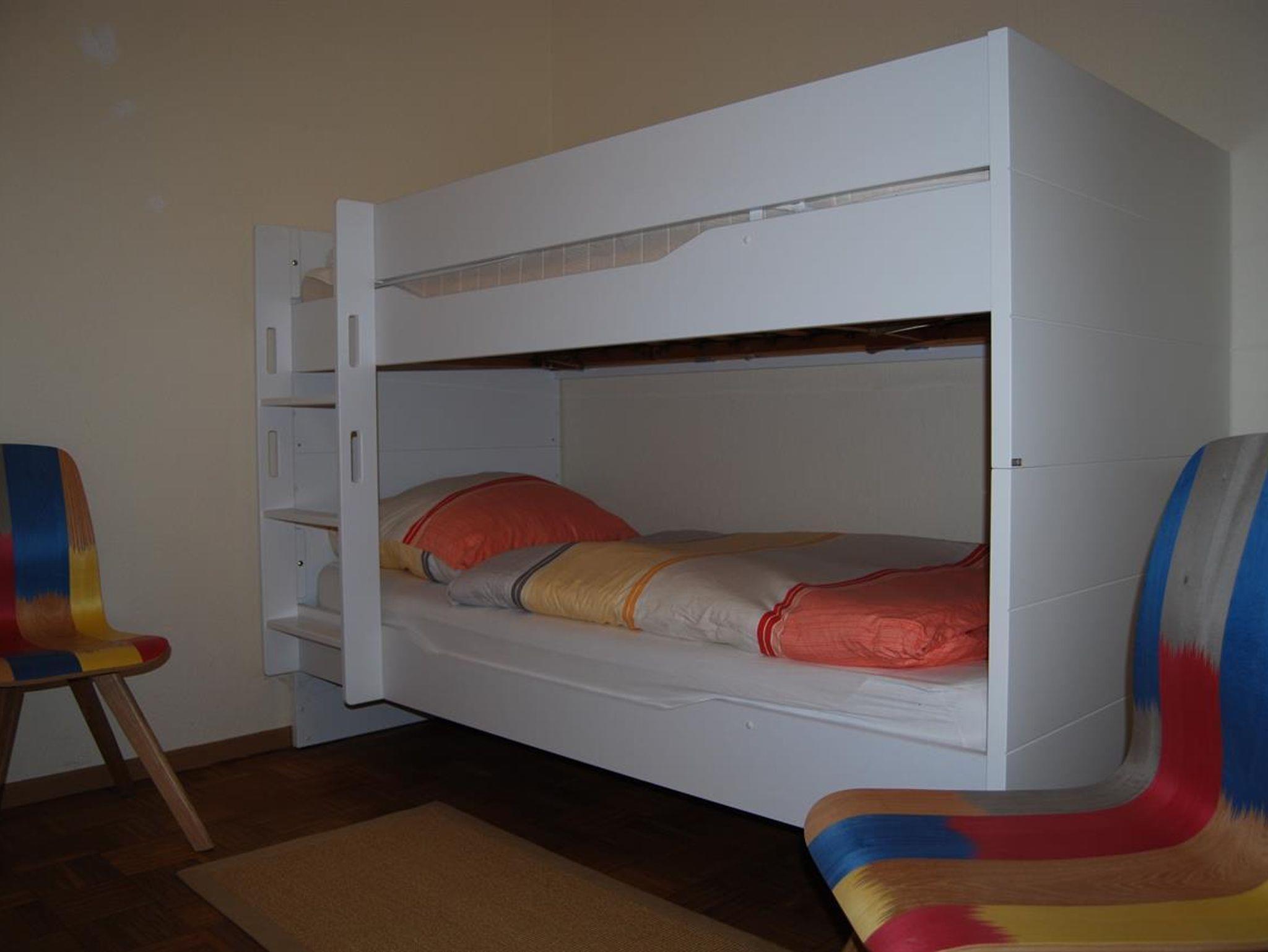 Ihre Kinder werden 'ihr' Zimmer lieben, ein tolles Etagenbett und ein Einzelbett, alles in weiss auf geöltem Parkett.