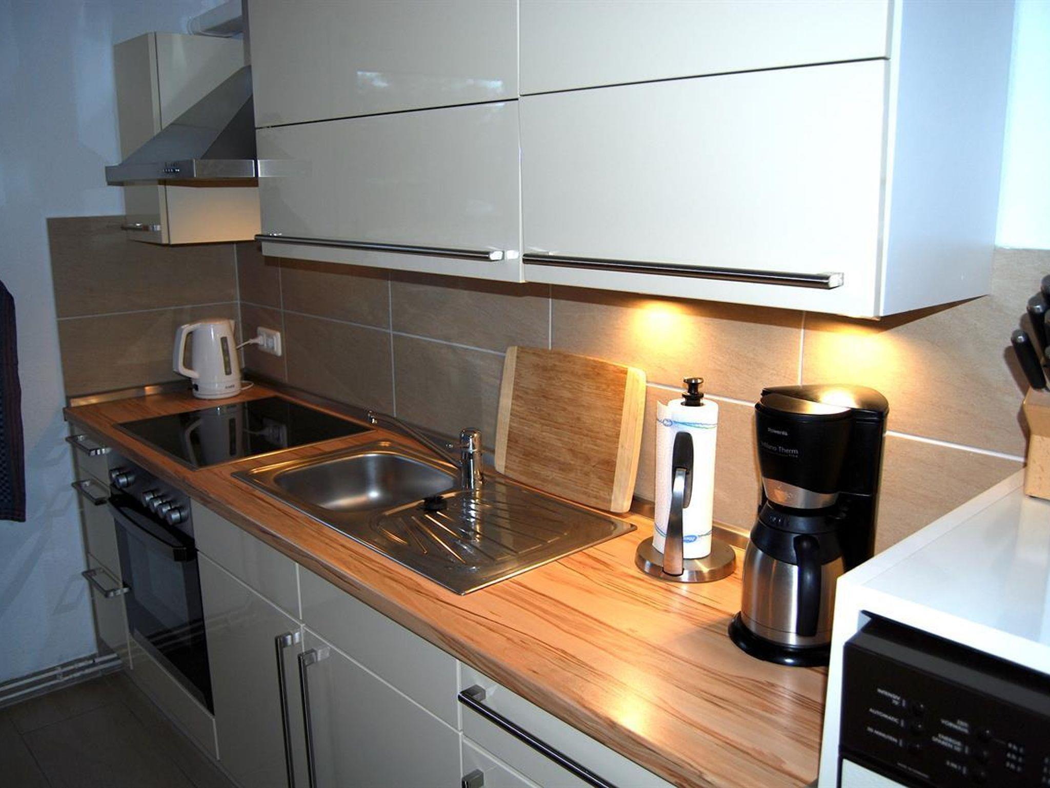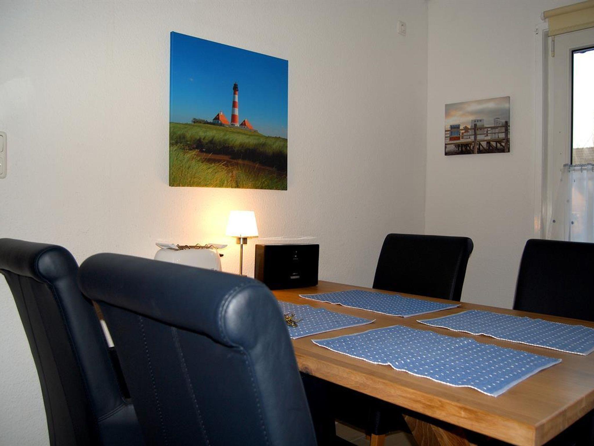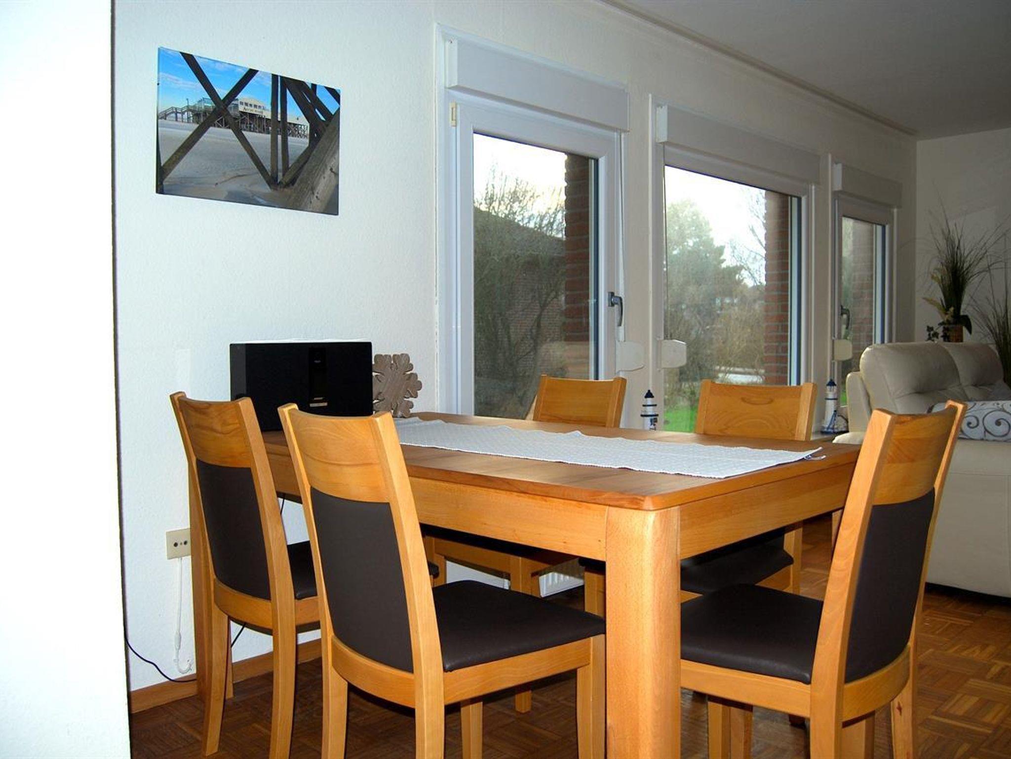 Die Einbau-Küche hat einen tollen Essplatz mit Eichentisch und gepolsterten Stühlen, da mag man nach dem Frühstück gar nicht mehr aufstehen.... es sei denn, man macht Urlaub an der Nordsee.