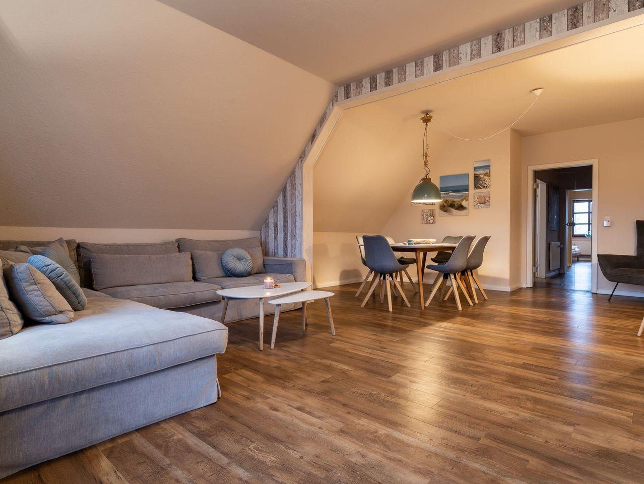 Das App. Scandi unter Reet verfügt über ca. 115 m² Wohnfläche und bietet Platz für 1-6 Personen. Die Wohnung befindet sich im Obergeschoss mit einem großzügige Wohnraum mit TV, gemütlichem Essbereich und einer separaten Küche. Die Wohnräume sind mit modernen Möbeln ausgestattet. An den Wohnbereich schließen sich ein Flur mit 3 Schlafzimmern. Ein Schlafzimmer mit einem Doppelbett, das Zweite mit einem Doppel-Boxspringbett und das Dritte mit 2 Einzelbetten, die zum Doppelbett zusammengeschoben sind. 3 Duschbäder bieten Ihnen jeden Komfort. Vom Wohnzimmer gelangen Sie auf eine großzügigen Balkon. Hier können Sie wunderbar entspannen und die Seele baumeln lassen.