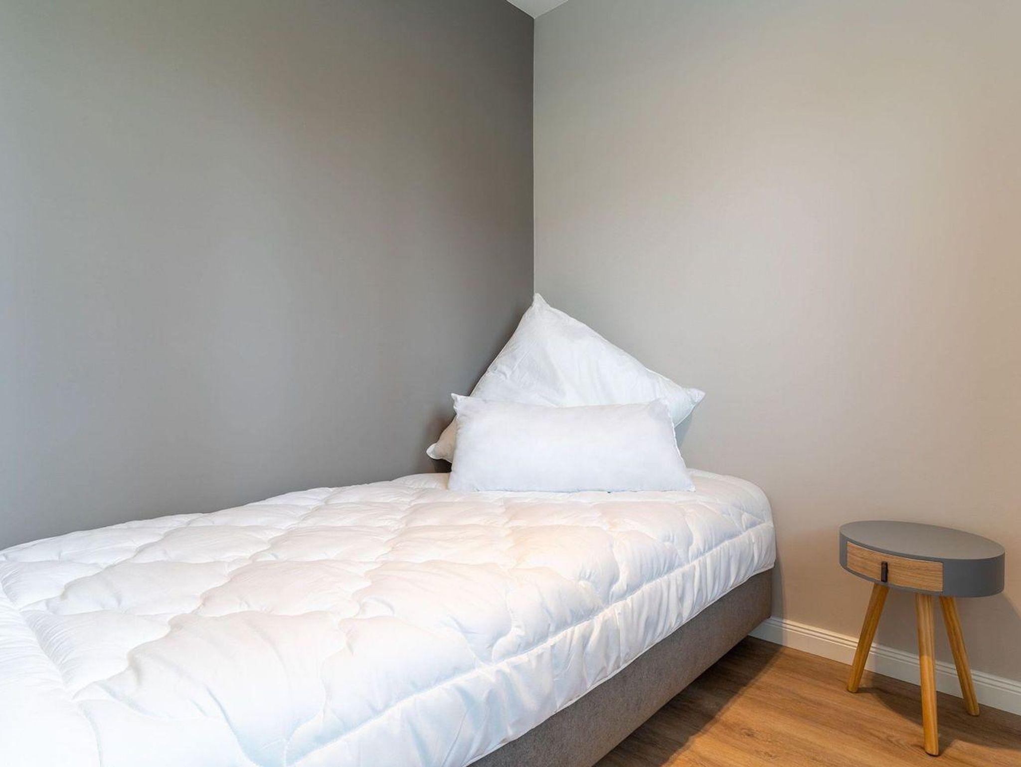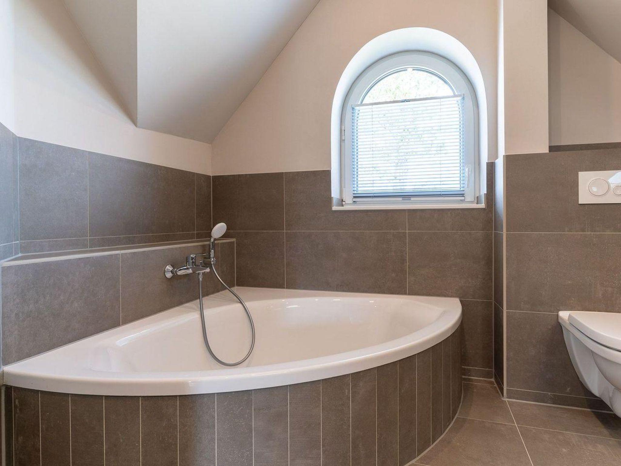Besonderes Highlight im Wohnbereich ist die gemütliche Sitzbank direkt im Fenster, die ganz sicher zu einem Ihrer Lieblingsplätze im Haus wird, um ein gutes Buch zu lesen oder den ersten Kaffee am Morgen zu genießen. Die Küche verfügt über hochwertige Elektrogeräte und bietet genügend Platz zum gemeinsamen Kochen. Vom Flur mit Garderobe, welche ausreichend Platz für Jacken und Schuhe bietet, gelangen Sie in ein Duschbad, sowie in den Schlafraum mit einem Einzelbett. Über eine Holztreppe gelangt man in das Obergeschoss. Drei Schlafzimmer mit je einem Boxspring-Doppelbett (180x200 m) sind ausgestattet mit TV und großen Kleiderschränken. Ein zweites vollausgestattetes Badezimmer im OG, mit einer Dusche, einer Eckbadewanne und zwei einzelnen Waschbecken runden das hochwertige Hauskonzept ab und lassen keine Wünsche offen. Über eine weitere Holztreppe geht es vom Flur ins Dachgeschoss. In dem großzügigen Dachgeschoss stehen Ihnen noch zwei weitere Einzelbetten zur Verfügung.