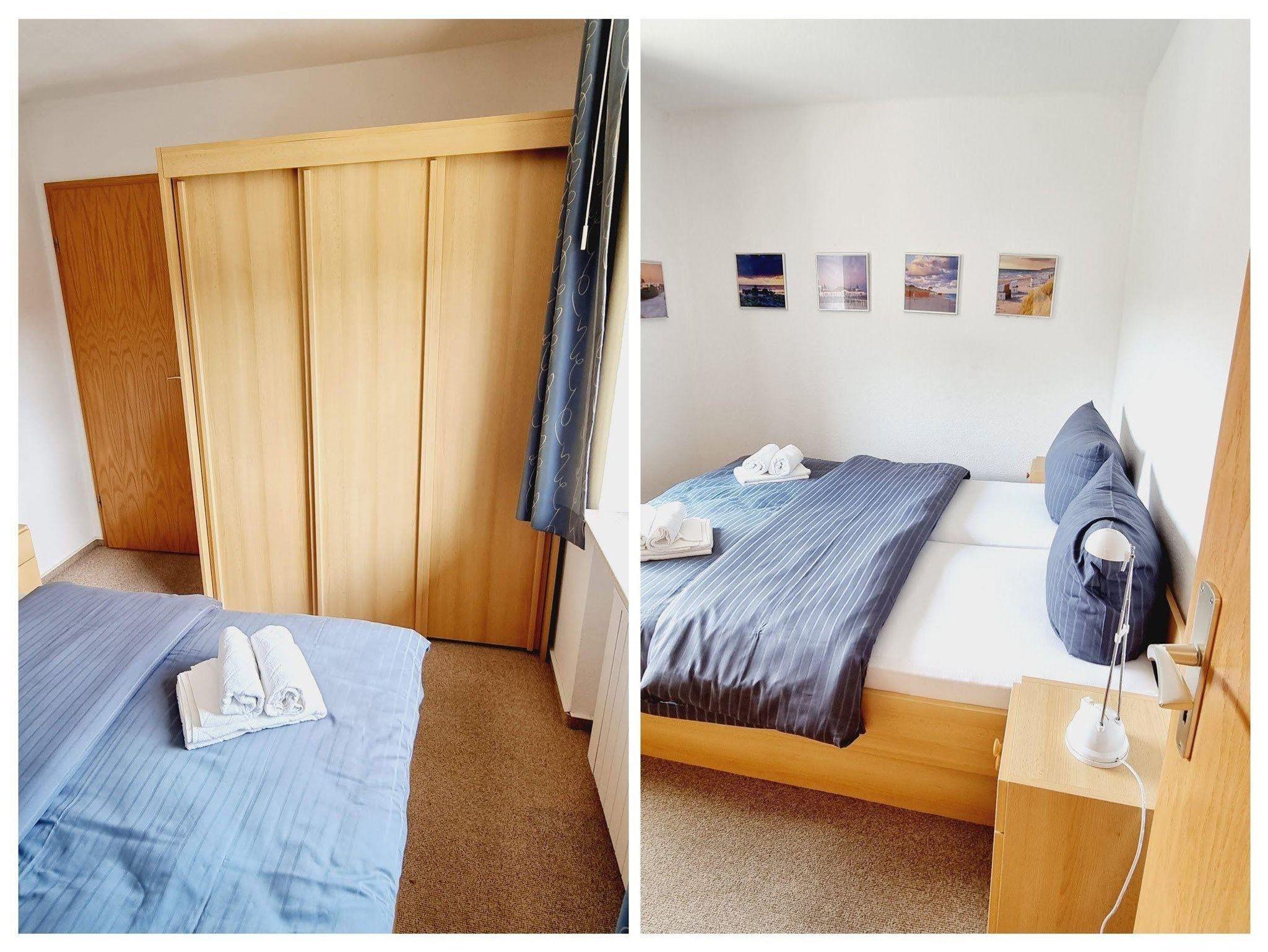 • Schlafzimmer mit Doppelbett und Kleiderschrank.