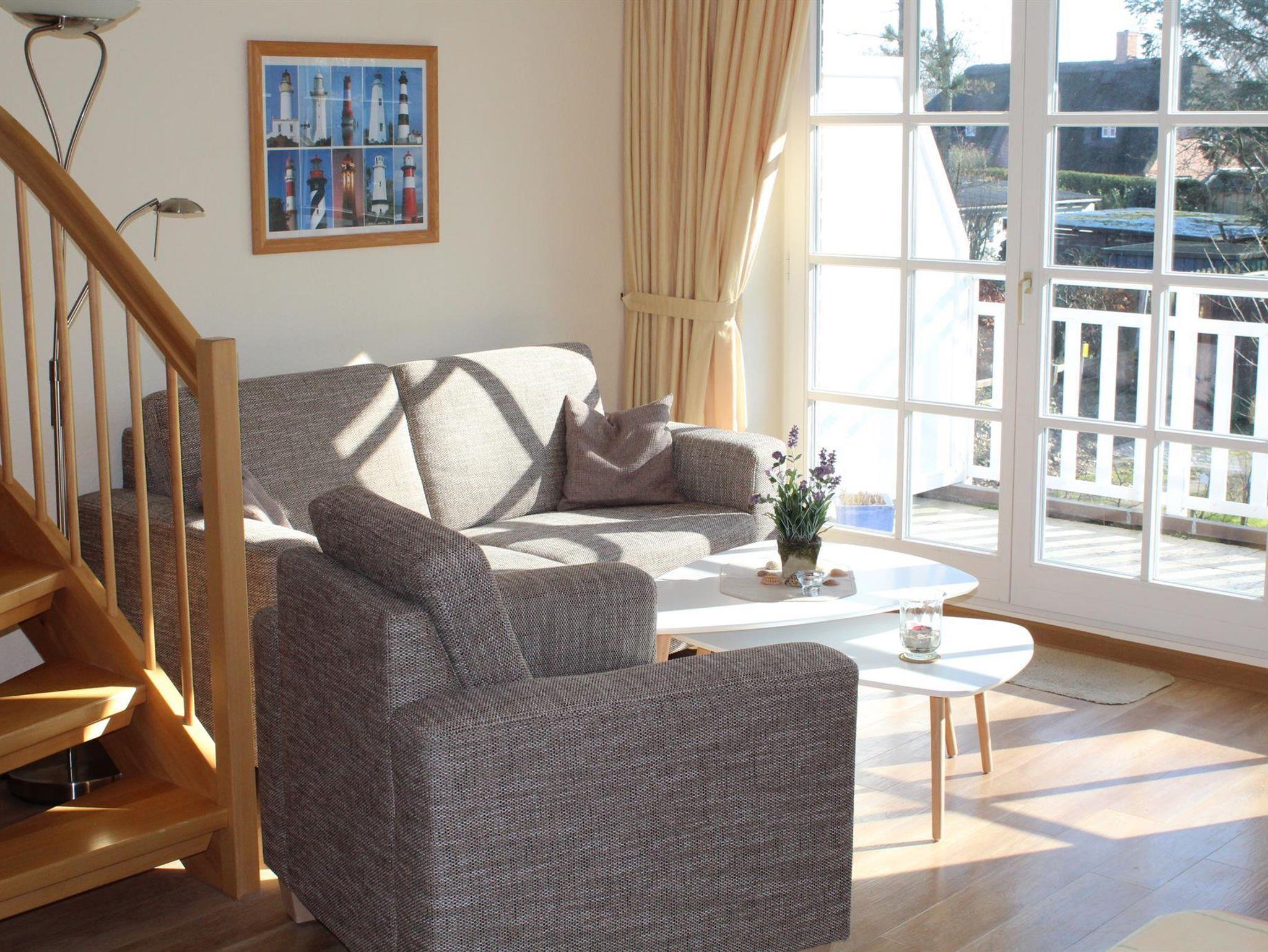3-Zimmer-Appartement im Ober- und Dachgeschoss, 56 qm: Flur. Duschbad/WC. Schlafraum mit 2 Einzelbetten. Wohnraum mit Sitzecke, Eßecke, LCD-TV, Radio, Stereoanlage. Küchenzeile (4-Pl.-Herd, Ceran, Backofen, Geschirrspüler. Möbl. Südwestbalkon. Im Dachgeschoss Schlafraum mit Doppelbett, Einbauschrank, gemütlicher Leseecke.