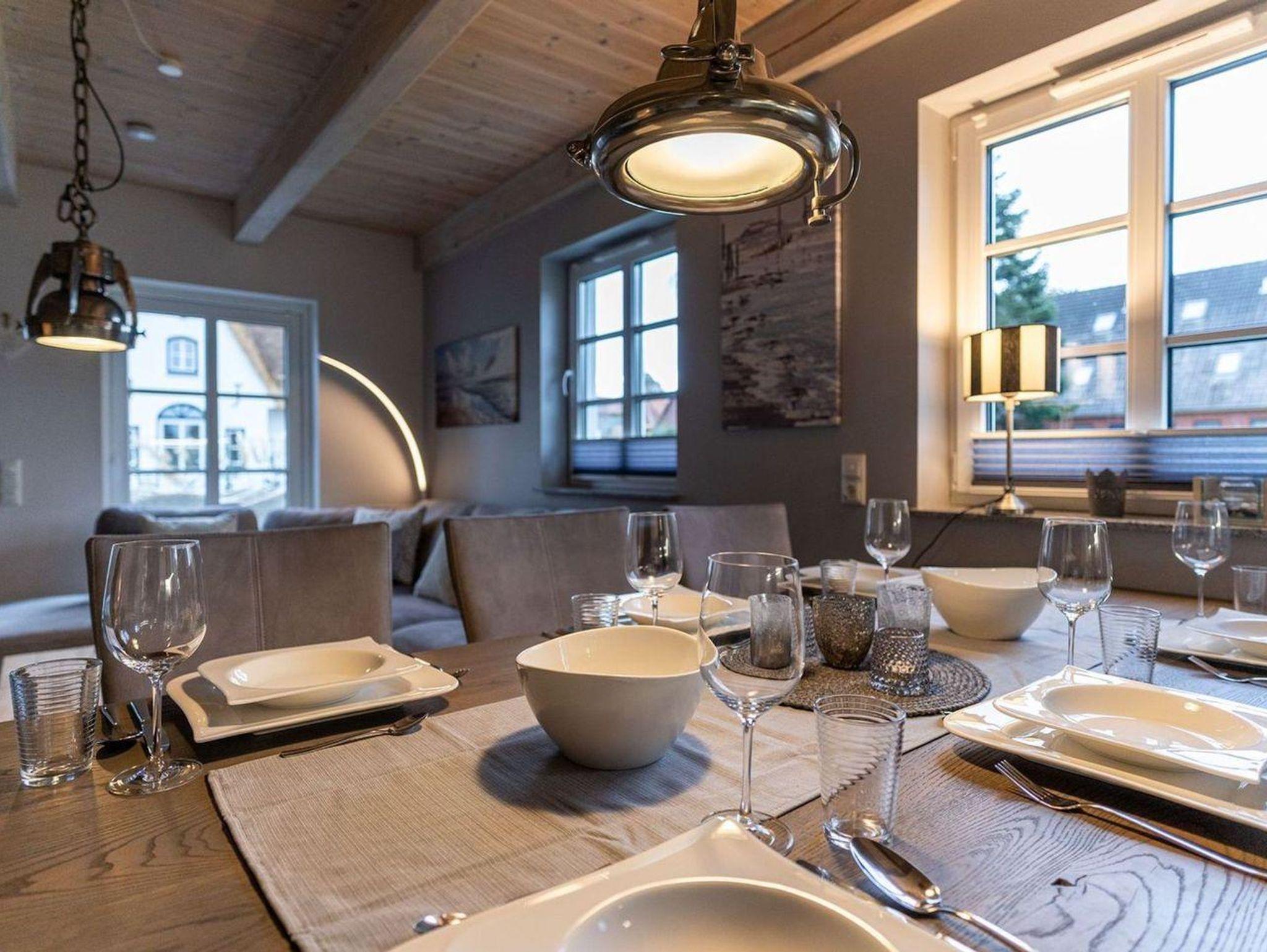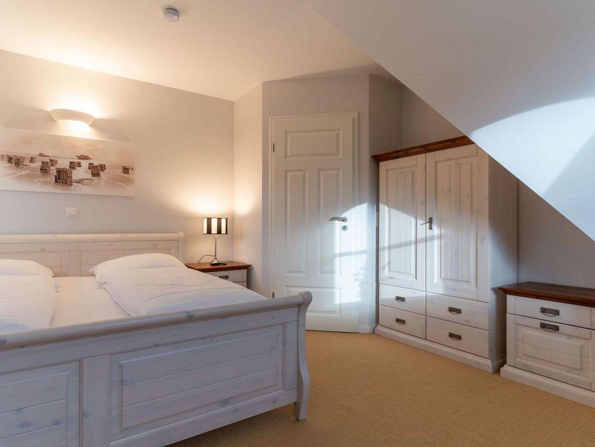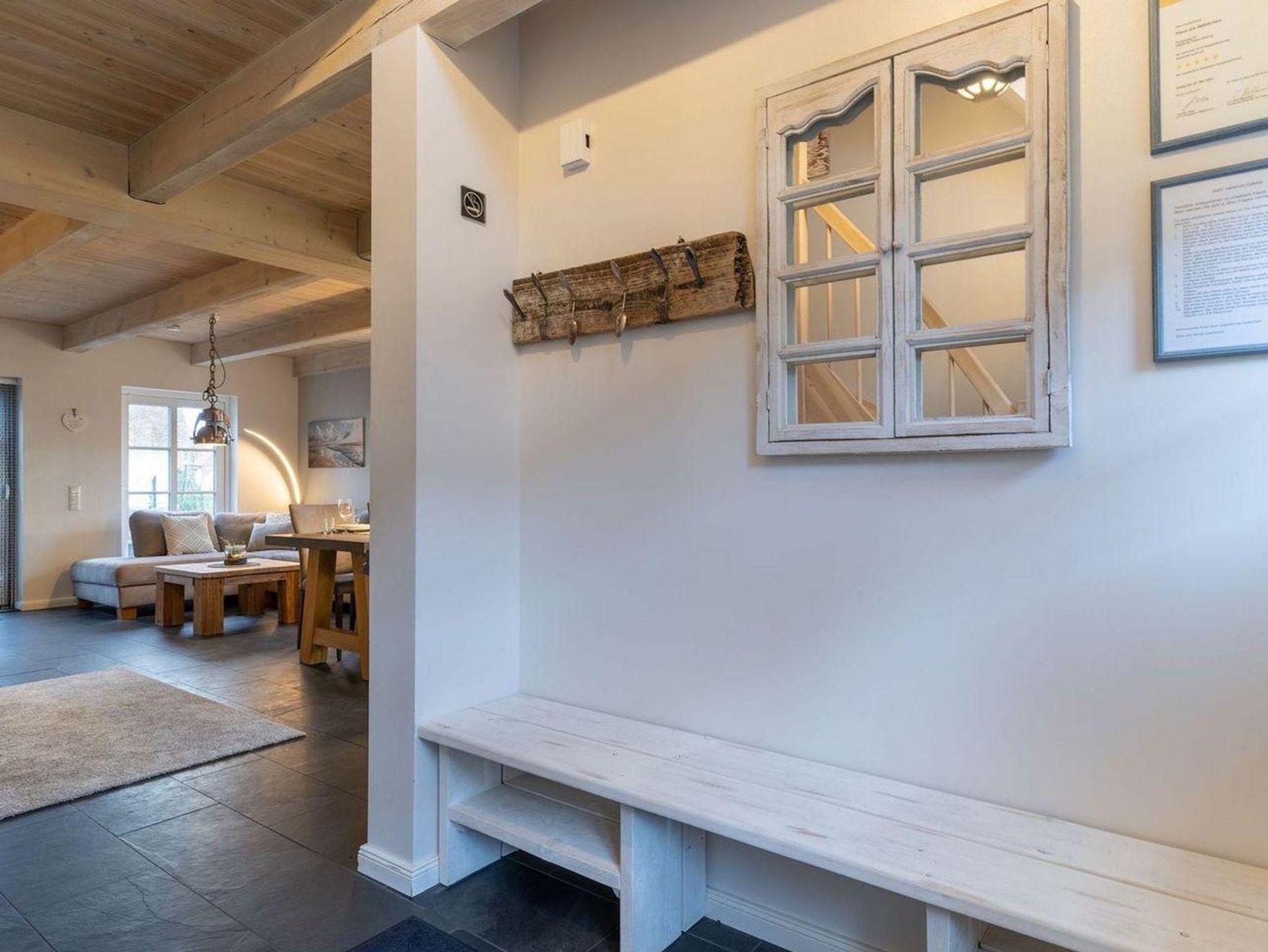 Die wunderschöne Haushälfte unter Reet verfügt über ca. 130 m² und bietet Platz für 1-6 Personen.Im Erdgeschoss befindet sich der lichtdurchflutete Wohnraum mit TV, Kamin, einer offenen Küche sowie einem stilvollen Essbereich.Die Küche ist ausgestattet mit Backofen und Geschirrspüler, sowie einem Esperto-Caffè-Automat, Toaster, Wasserkocher und den üblichen Küchenutensilien.An den Wohnbereich schließen sich ein Flur, ein Duschbad und ein Doppelschlafzimmer an.Das Erdgeschoss ist rollstuhlfreundlich.Über eine Holztreppe gelangt man in das Obergeschoss. Die beiden Schlafzimmer, jeweils mit einem Doppelbett sorgen für ruhevolle Erholung.Im ersten Stock befindet sich ausserdem ein weiteres Duschbad sowie eine Sauna.
