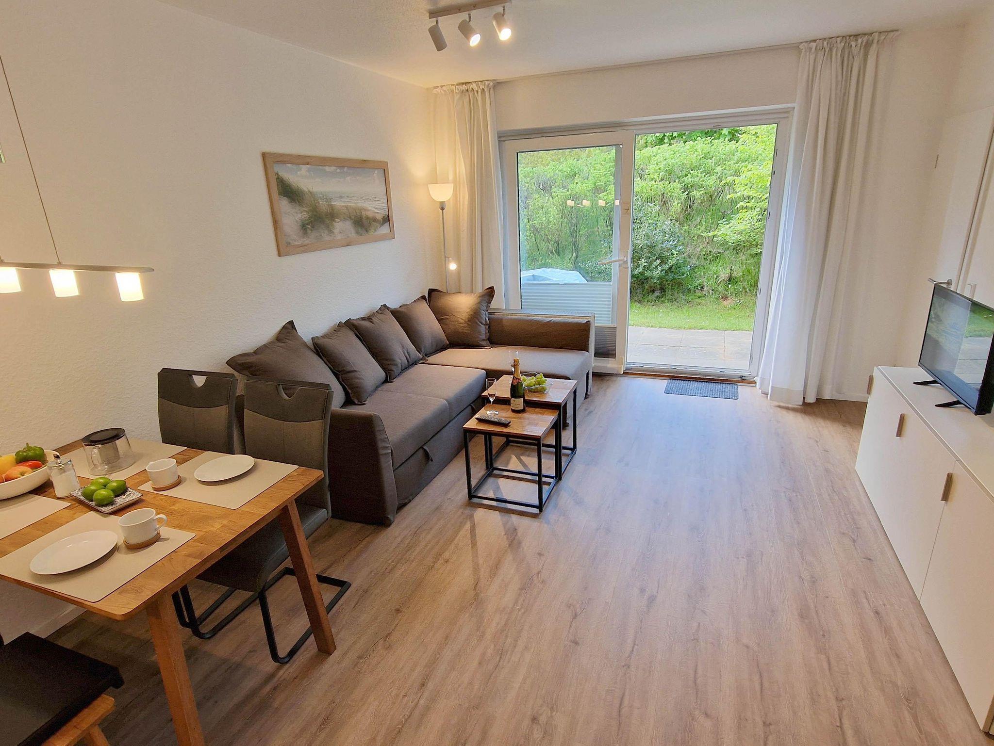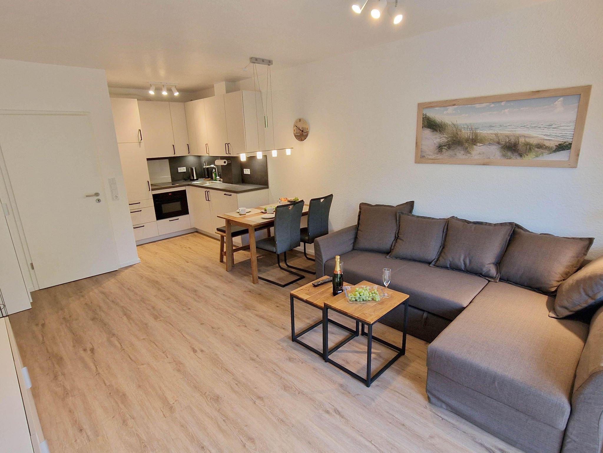 Die freundliche 2-Zimmer-Ferienwohnung Haus Nordsee Nr. 03 bietet Ihnen Urlaubsplatz für bis zu 4 Personen. Neben einem Schrankdoppelbett im Wohnzimmer finden Sie ein separates Schlafzimmer mit einem weiteren Doppelbett vor. Die Dusche im Bad ist bodengleich und befahrbar. Die Küche ist mit einem 4-Plattenherd und einem Backofen ausgestattet. Auf der halb überdachten Terrasse in Nord-West-Lage fällt Ihnen das Entspannen leicht.