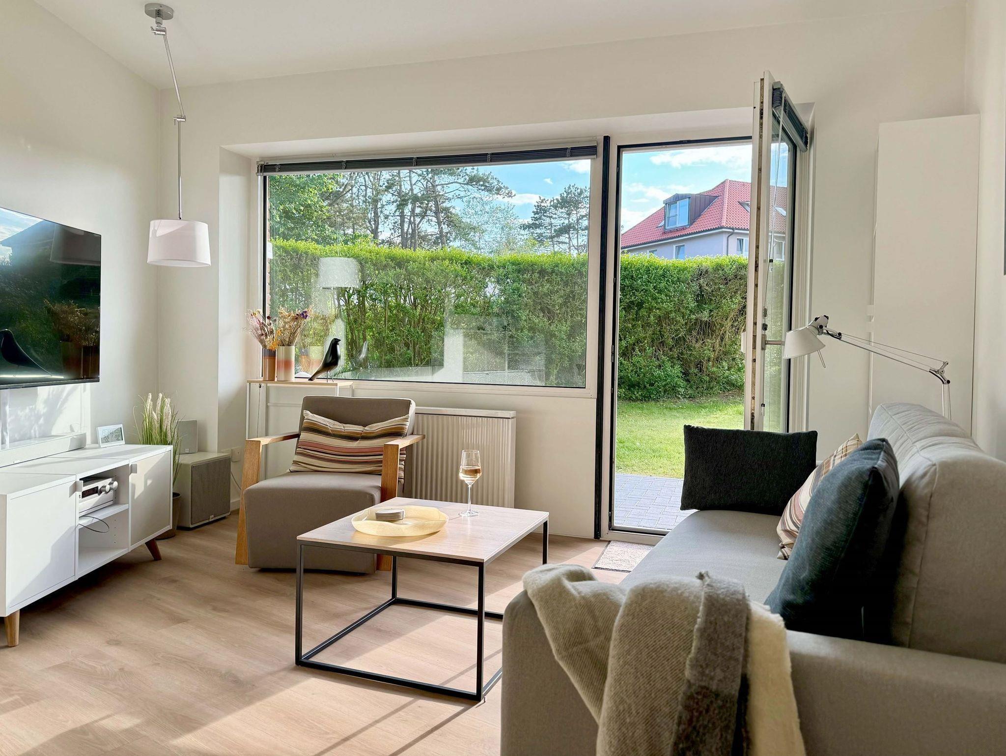 Am Deich 1 ? in Strandnähe am Dünenwaldrand gelegen ? erwartet Sie eine im Jahr 2024 komplett renovierte und im skandinavischen Design liebevoll eingerichtete 43 qm große 2-Zimmer Ferienwohnung. Genießen Sie Nordsee pur im Ortsteil Ording von St. Peter-Ording. Die Ausstattung der Wohnung lässt für entspannte Tage am Meer keine Wünsche offen: Eine hochwertige Küchenzeile mit umfangreicher Ausstattung (u.a. Geschirrspüler, Nespresso- und Filterkaffeemaschine), ein modernes Duschbad, ein gemütliches Schlafzimmer mit kleinem Arbeitsplatz und ein Wohnzimmer, in dem selbst Regentage zur Freude werden (55 Zoll Smart-TV, Soundbar, analoge und digitale Musiktechnik mit USB-C, AirPlay und Bluetooth Streaming). Auf der großen, überdachten Terrasse befinden sich Gartenmöbel, ein Grill sowie zwei Acapulco Sessel, in denen Sie den Tag beim Sonnenuntergang am Deich ausklingen lassen können.