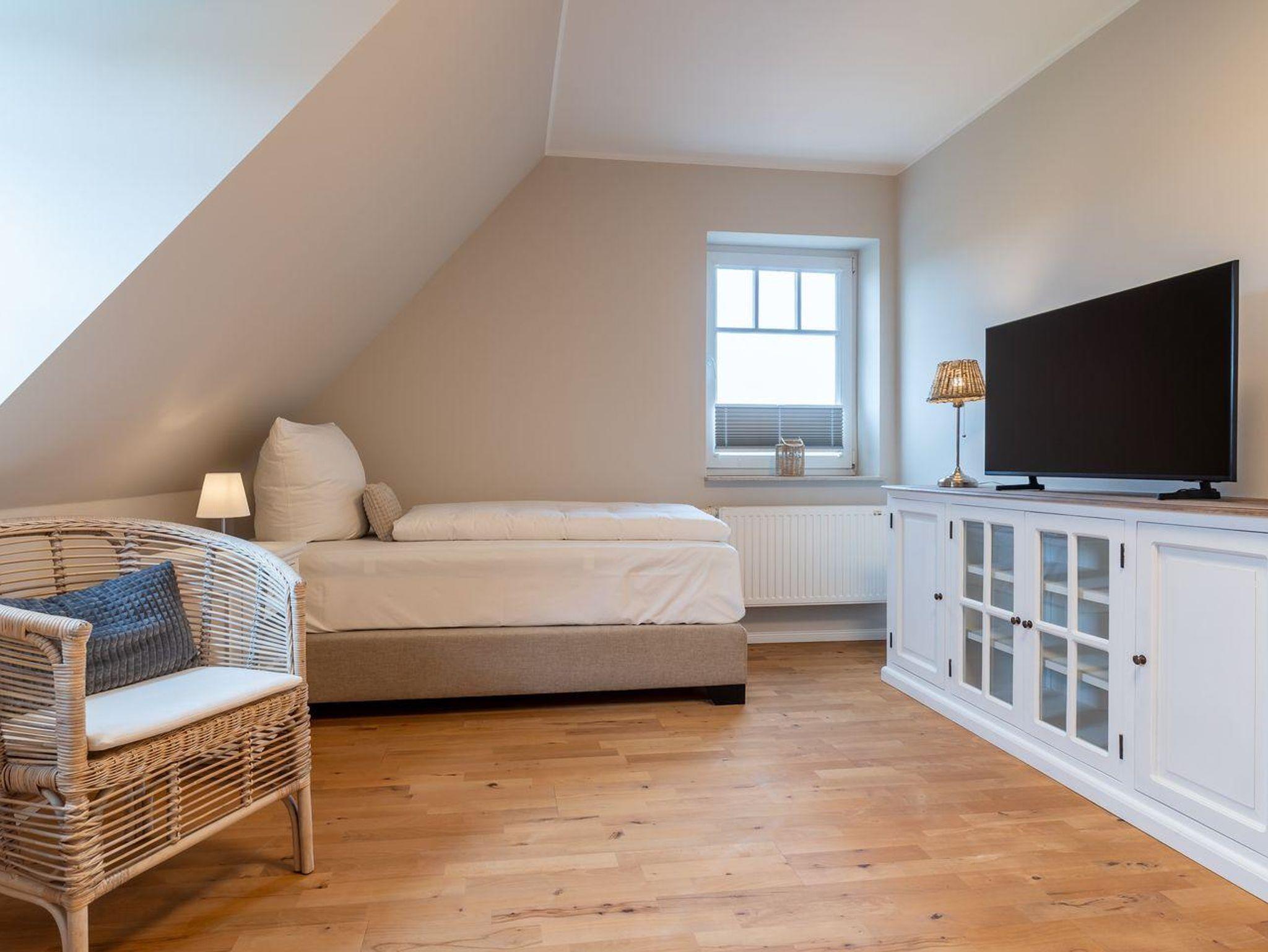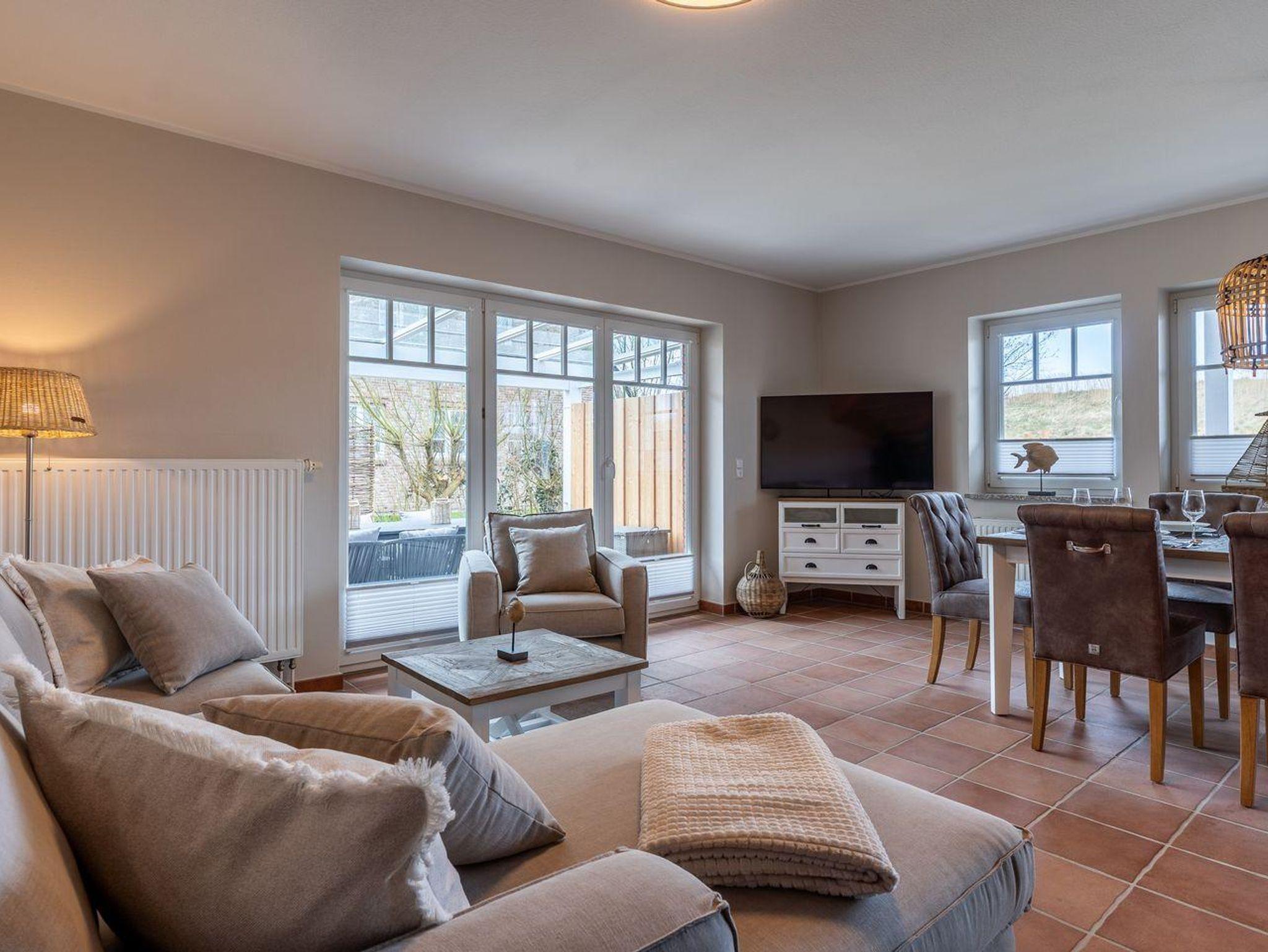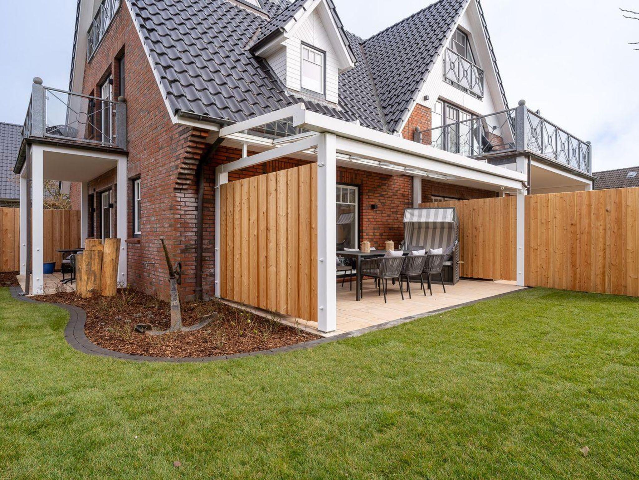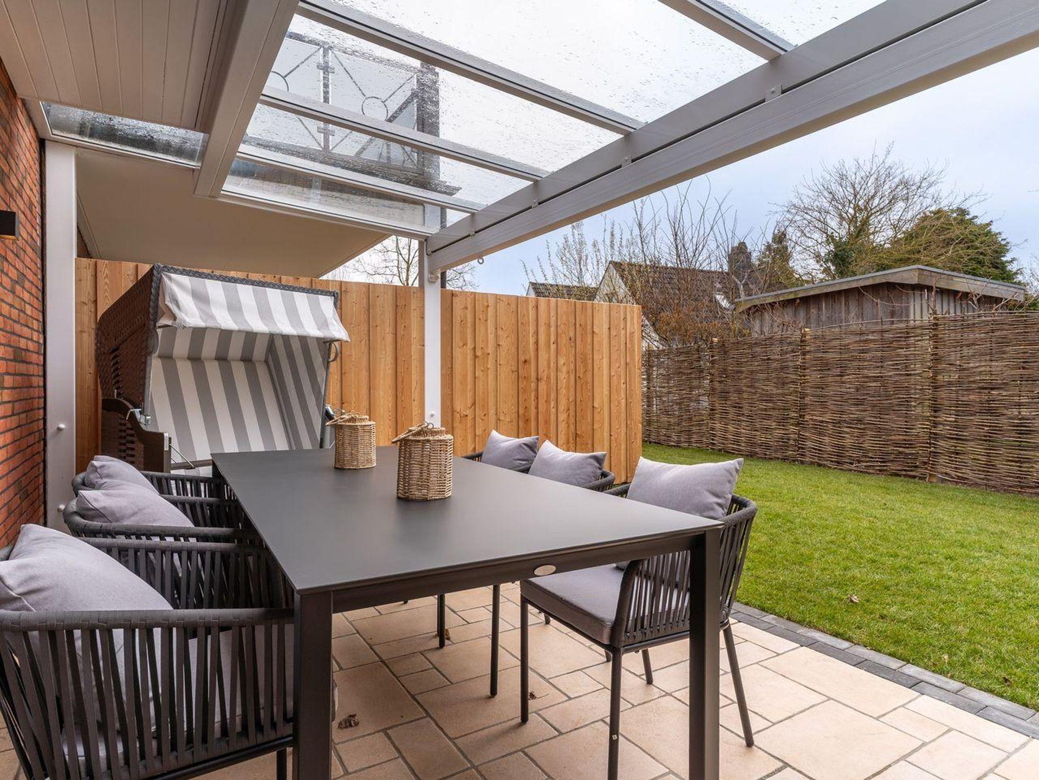Ein weiteres Highlight der Ferienunterkunft ist der Garten, in dem Sie sich auf Gartenmöbeln entspannen können. Genießen Sie die frische Nordseeluft auf der überdachten Terrasse oder dem Balkon und verweilen Sie mit einem guten Buch oder einer Tasse Kaffee. Auch der Strandkorb im Garten bietet den perfekten Platz zum Entspannen.