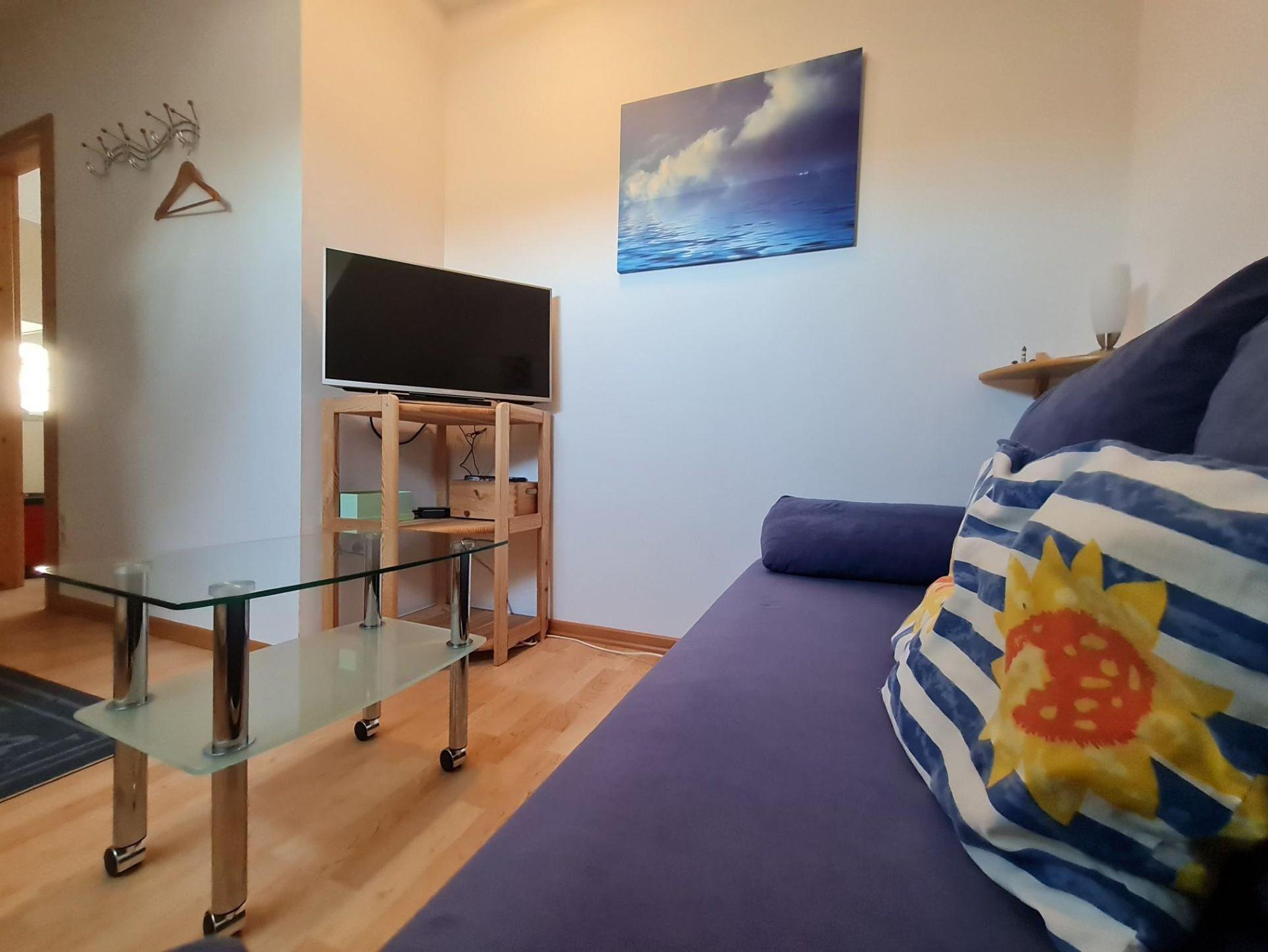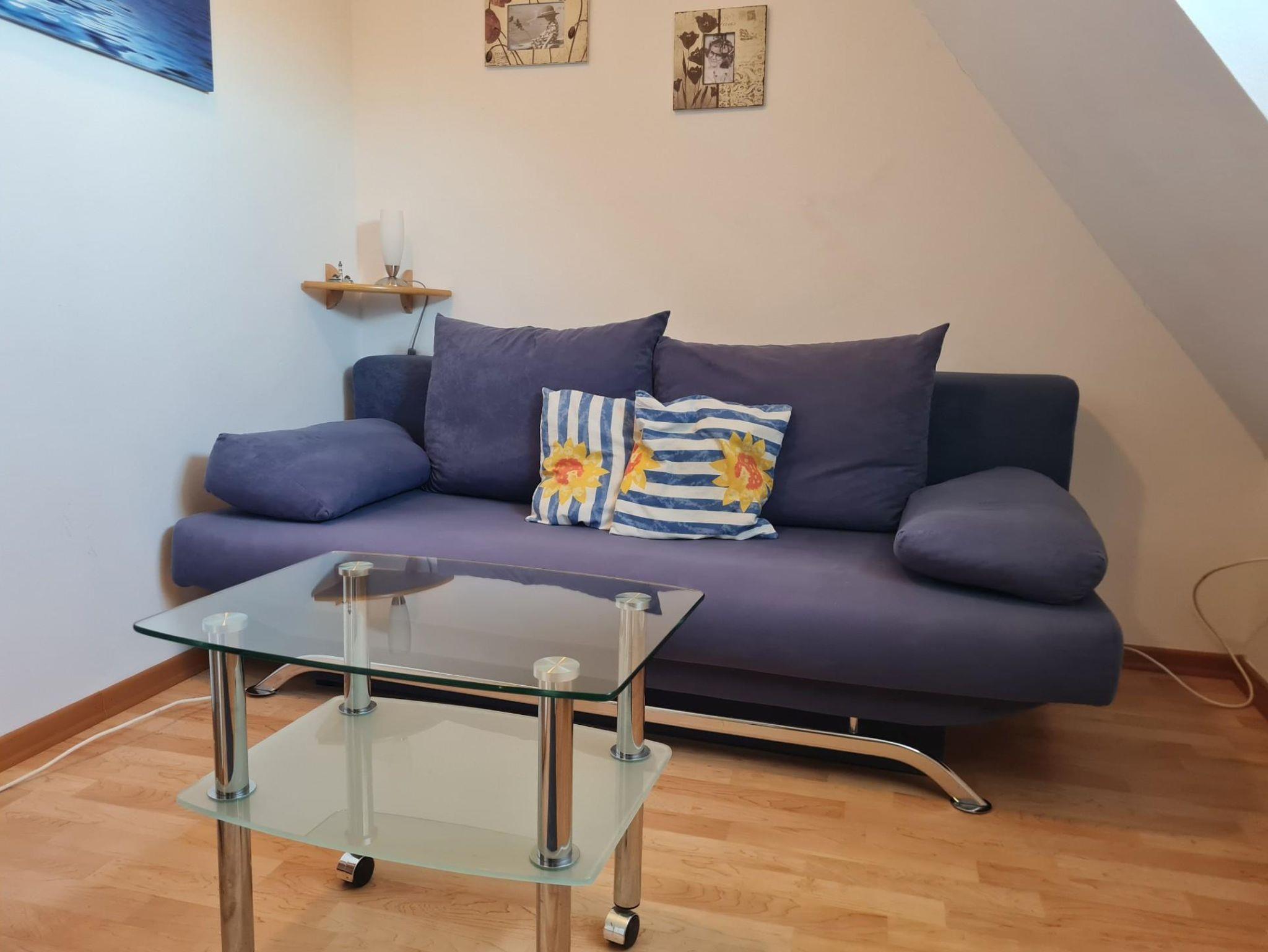 • Wohnzimmer: Hier finden Sie eine ausziehbare Schlafcouch, einen Fernseher, einen DVD-Player und eine Playstation – perfekt für gemütliche Abende.