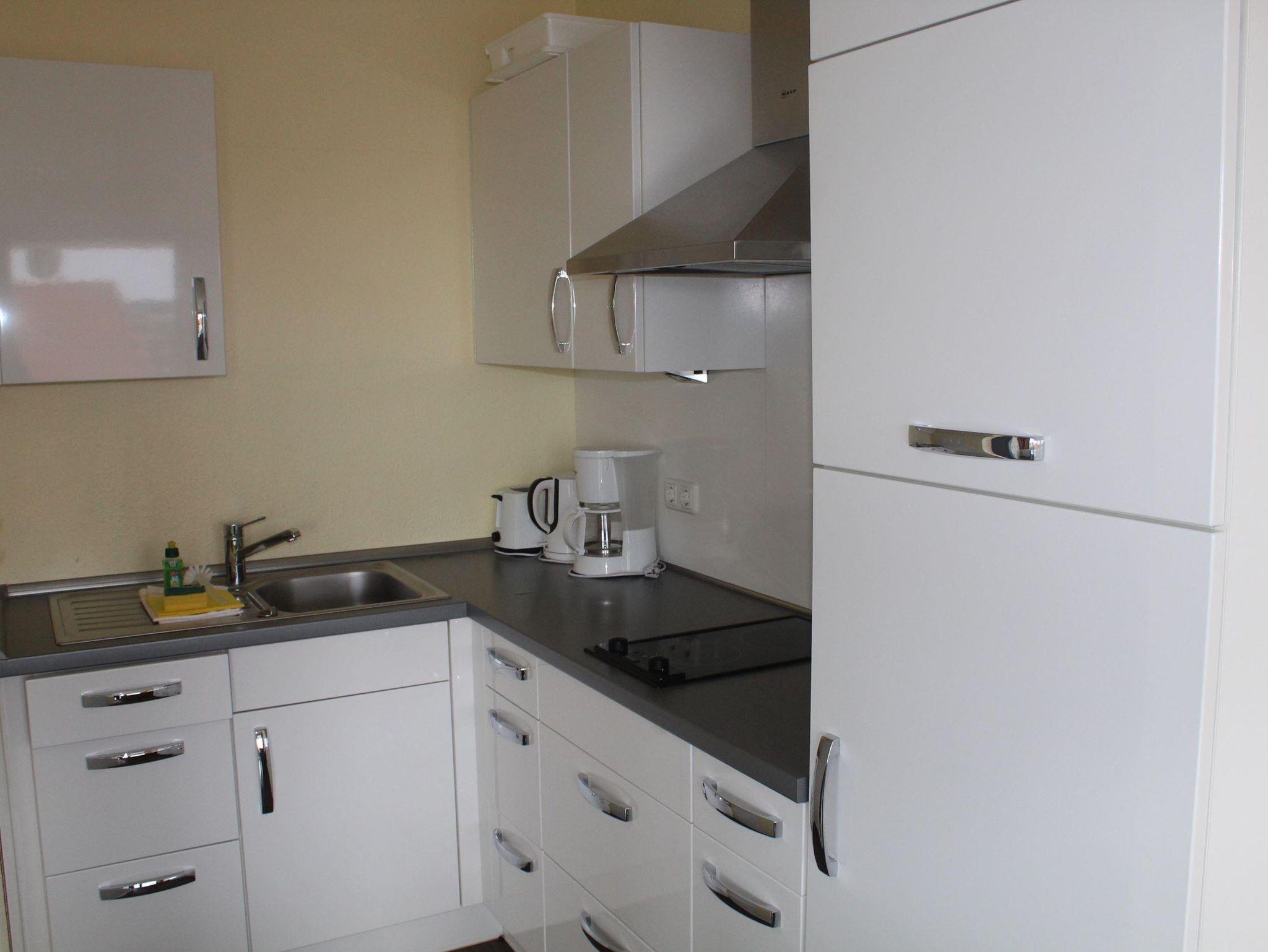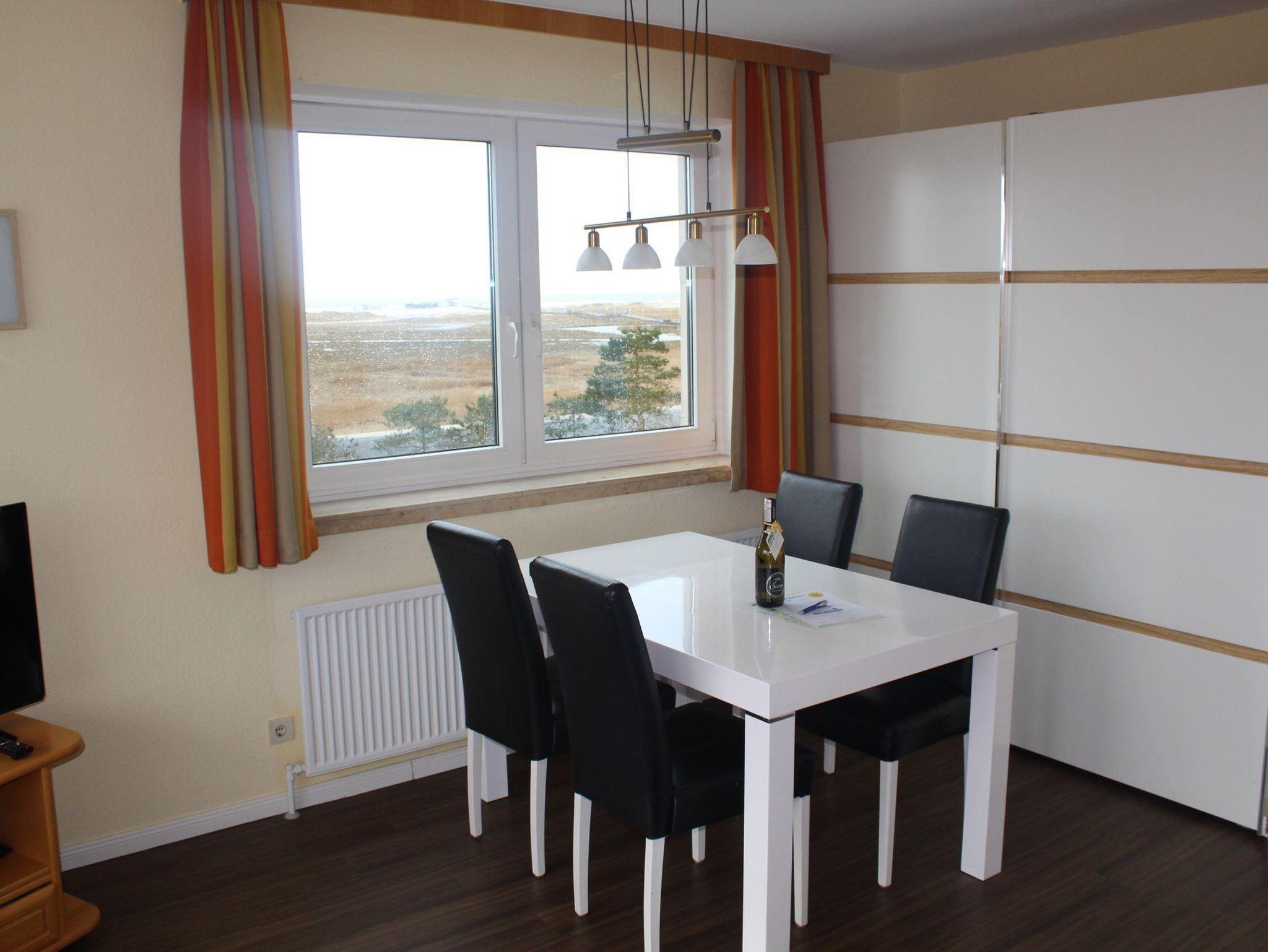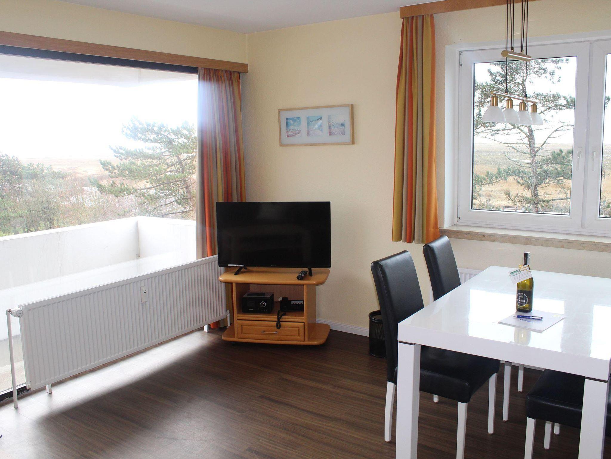 Schlafraum mit 2 Einzelbetten (je Bett 190 x 90), Wohn-Schlafraum mit Doppel-Schlaf-Couch, PVC-Fußboden, Sitzecke, Essecke, Küchenzeile mit Mikrowelle, Dusch/WC, Kabel-TV, Durchwahltelefon, Balkon, PKW-Platz-Nr. 59, Aufzug und Fahrradkeller.