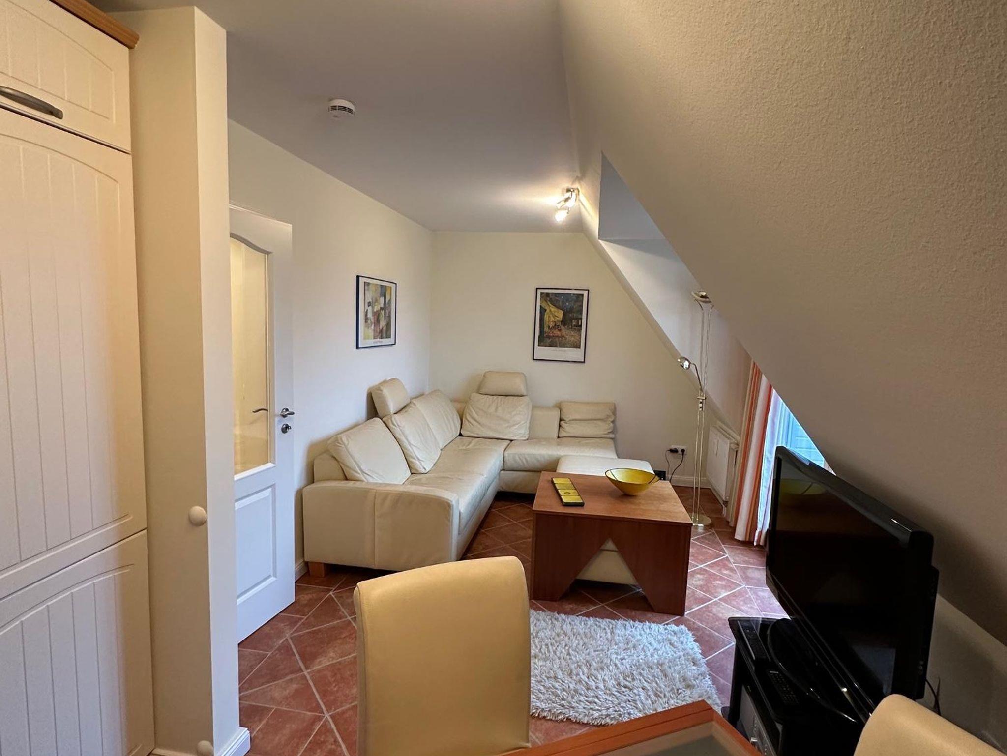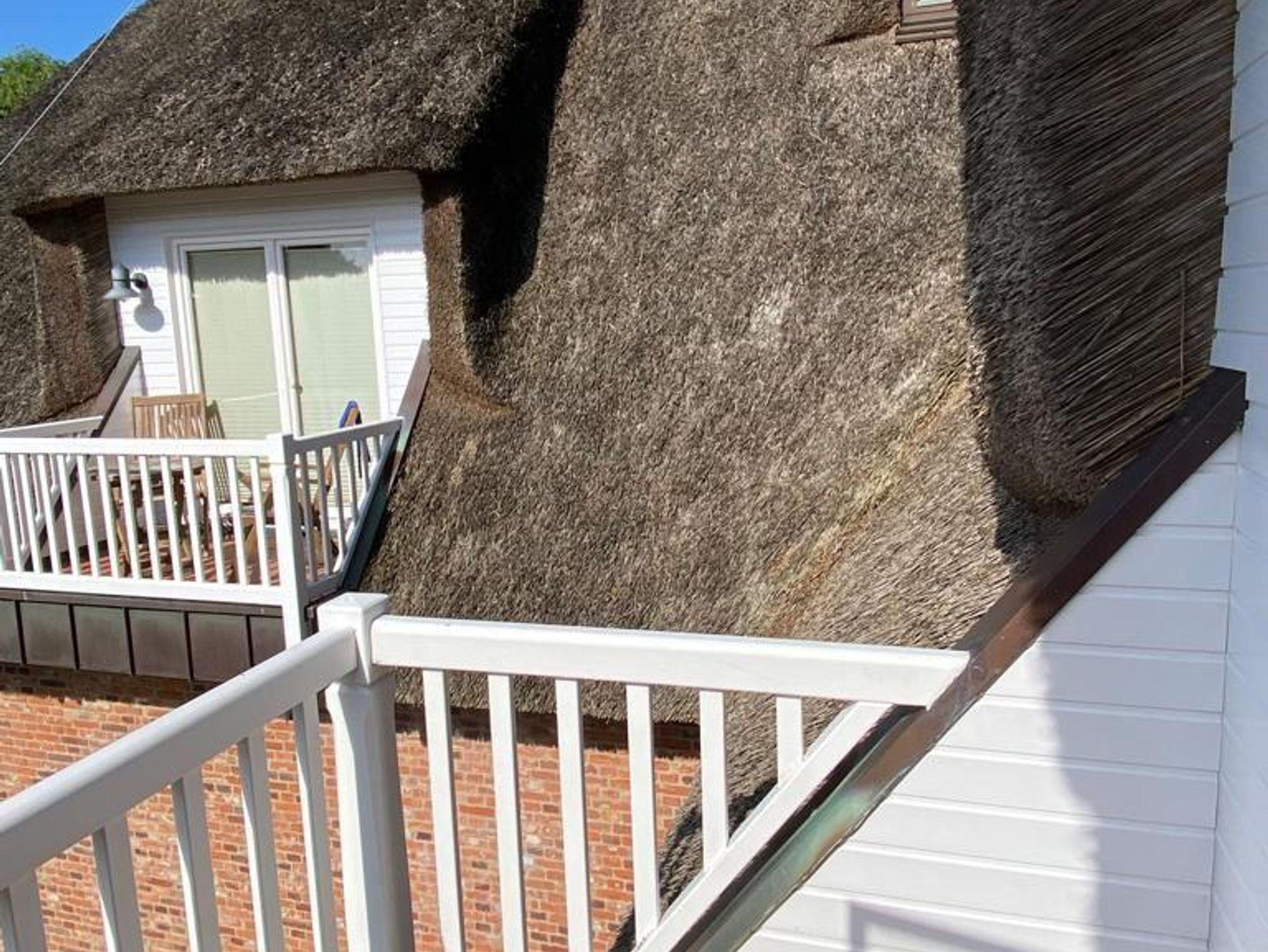 Reetdachhaus in einzigartiger Lage mitten im Herzen des historischen Dorfkerns. Die stilvoll eingerichtete 3-Zimmer-Wohnung im Obergeschoss/Dachgeschoss mit möbliertem Balkon bietet einen hohen Wohnkomfort und ist für max. 4 Personen geeignet. Wohnraum mit bequemer Couch, Esstisch, LCD-Flach-TV, Radio. Volleingerichtete Küchenzeile mit Ceranfeld, Backofen, Geschirrspüler, Mikrowelle mit offener Raumaufteilung zum Wohnzimmer ist der Treffpunktder Wohnung. Ein Schlafzimmer mit Doppelbett (180x200) im DG, ein Schlafraum mit 2 Einzelbetten (90x200) im OG. DG -offen von einer Treppe vom Flur erreichbar. Duschbad/WC. Gemeinschaftswaschmaschine und Trockner, Fahrradkeller, PKW-Stellplatz Nr. 7. Die Hausordnung ist einzuhalten. Nichtraucher, kostenloses Internet, 1 Haustier erlaubt. Das Grillen mit Holzkohle u. offenes Feuer ist wegen der Brandgefahr nicht erlaubt.