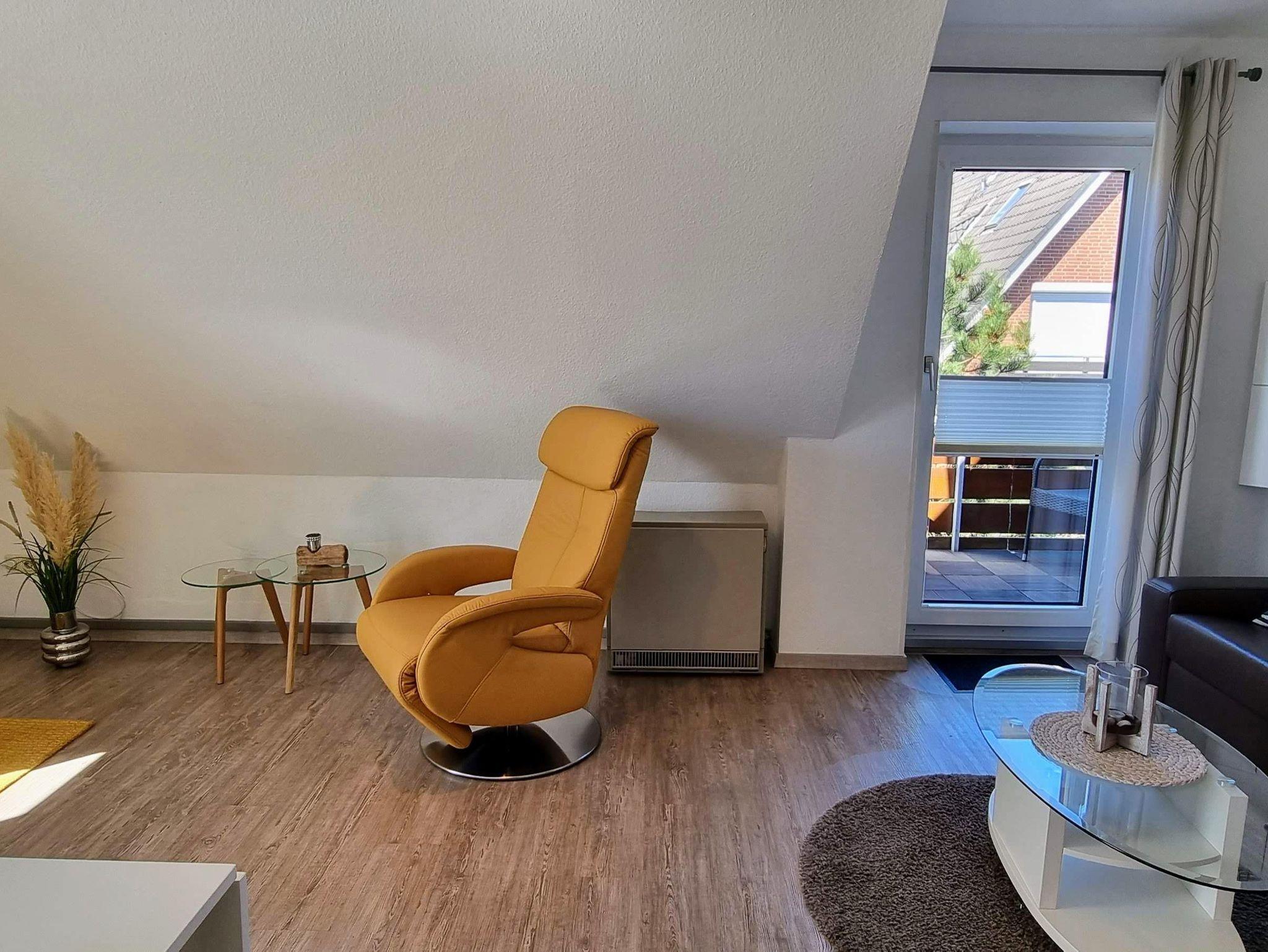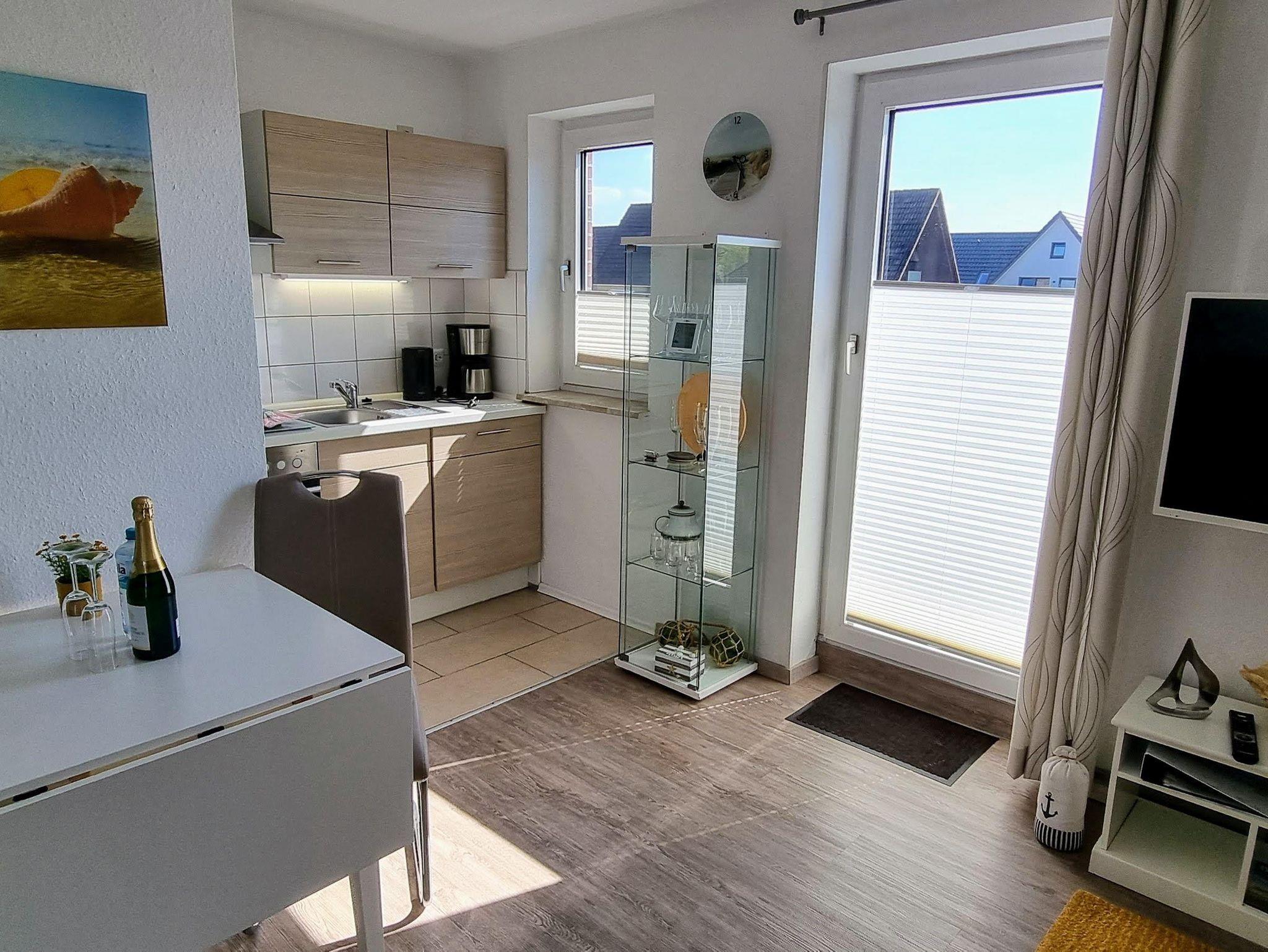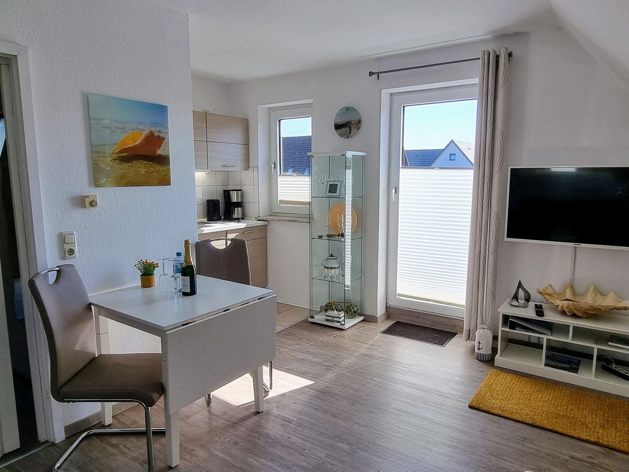 Die Ferienwohnung Gorch Fock befindet sich im Obergeschoss einer kleinen Wohnanlage und bietet auf einer Wohnfläche von 45 m² Platz für bis zu 2 Personen.