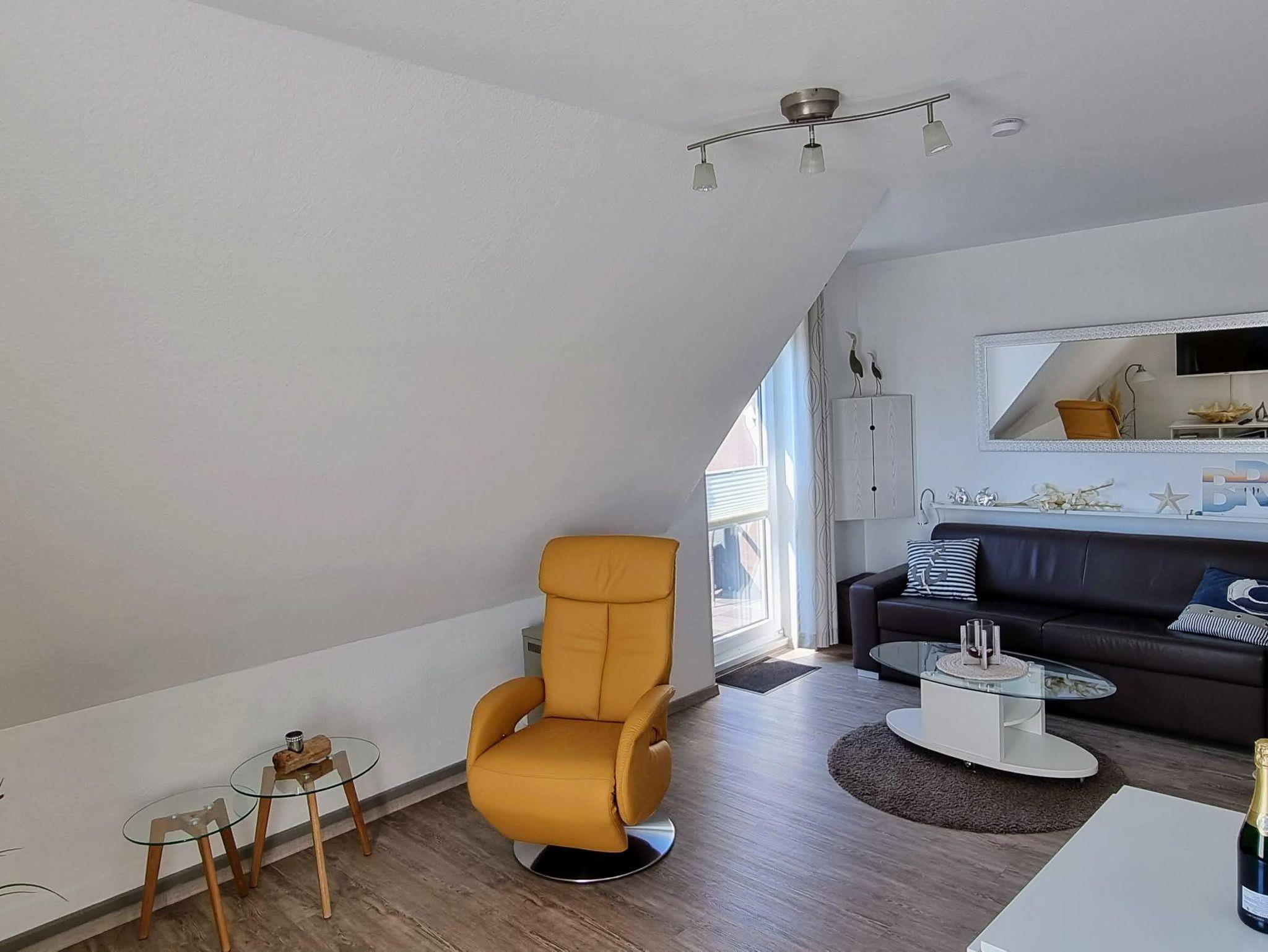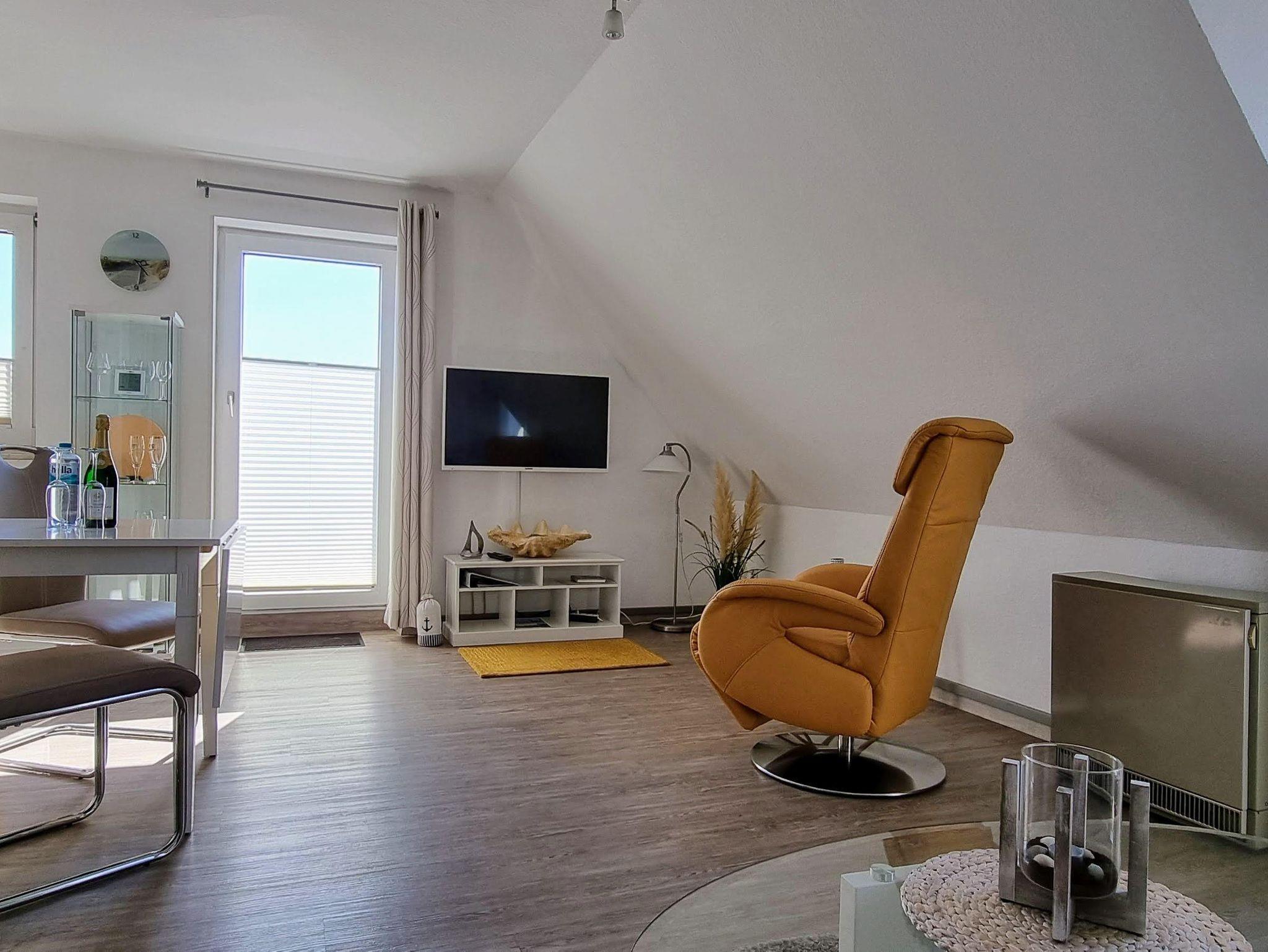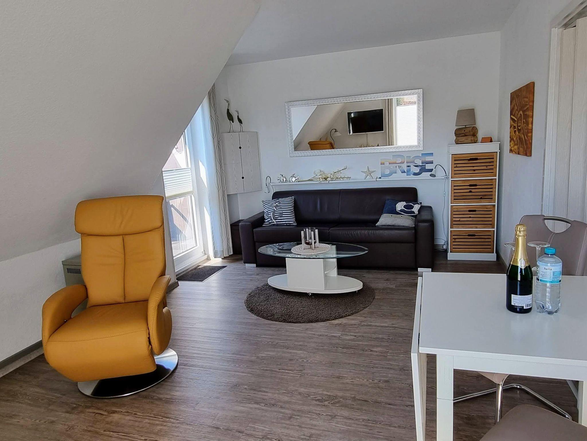 Die Ferienwohnung Gorch Fock befindet sich im Obergeschoss einer kleinen Wohnanlage und bietet auf einer Wohnfläche von 45 m² Platz für bis zu 2 Personen.
