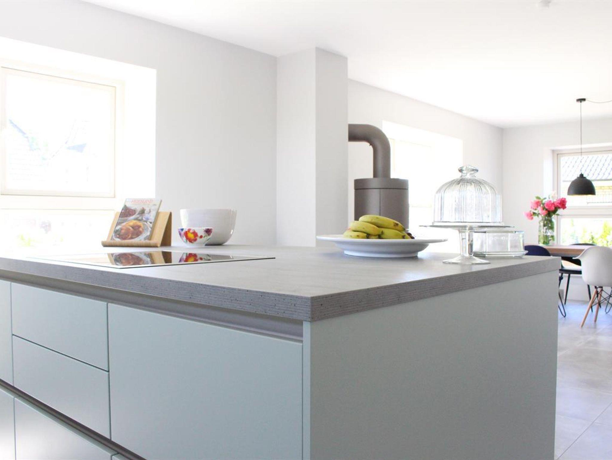Im Erdgeschoss lädt eine offene Wohnküche -ausgestattet mit hochwertigen Elektrogeräten inkl. eingebautem Weinkühler- zum Kochen, eine sonnige Aussenterrasse mit großem Tisch und Sonnenliegen zum Entspannen und eine Liegelandschaft mit Kamin und TV für gemütliche Abende zu Hause ein.