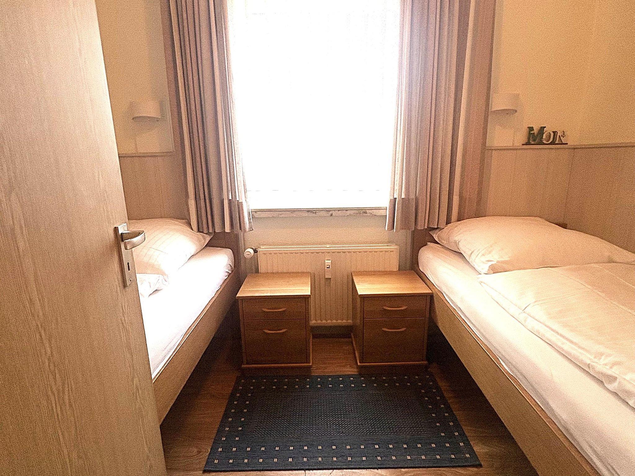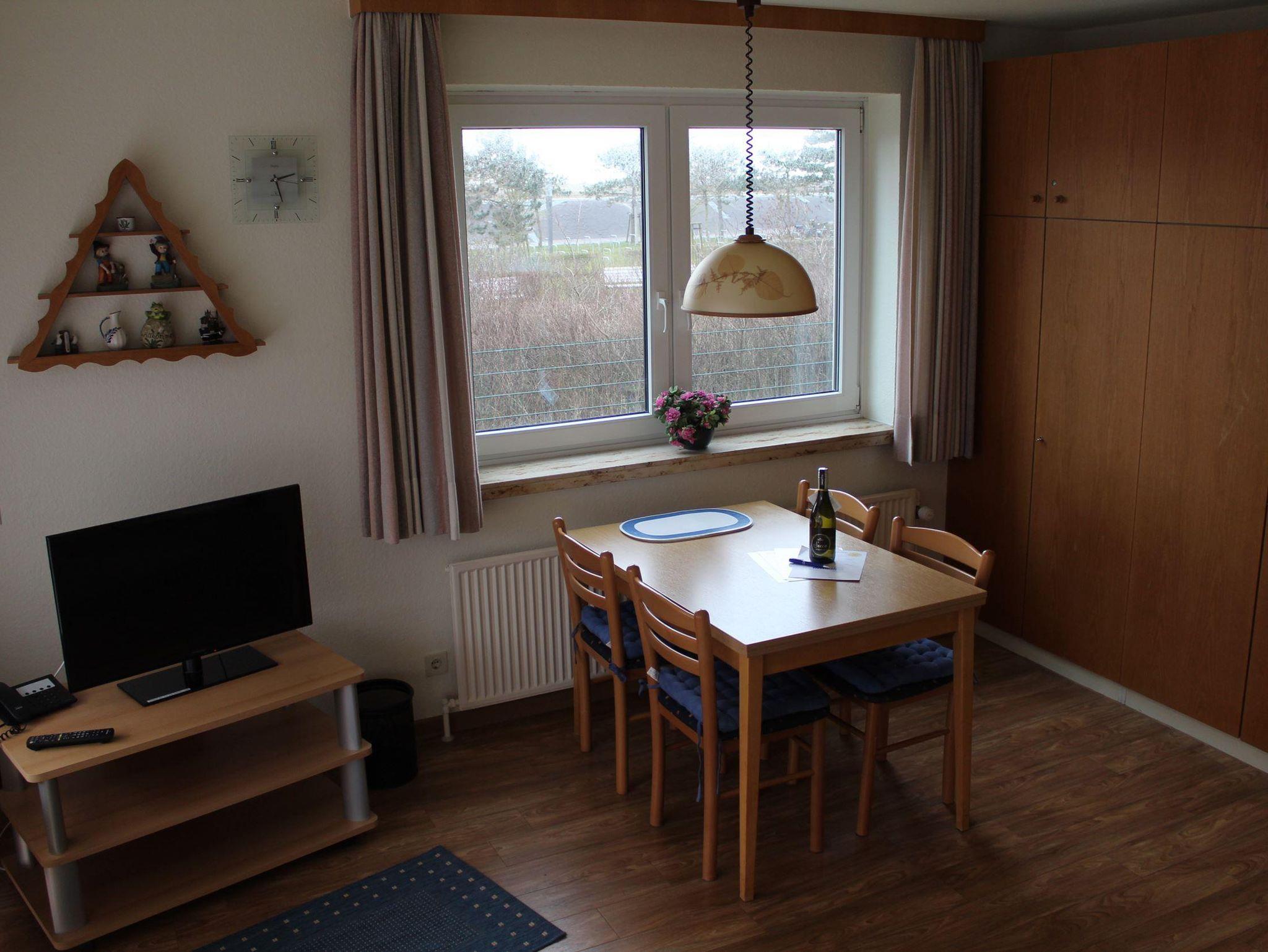 Schlafraum mit 2 Einzelbetten (je Bett 1,90 x 90), Wohn-Schlafraum mit Doppel-Schlaf-Couch, Laminatfußboden, Essecke, Küchenzeile, Kabel-TV, Durchwahltelefon, Dusche/WC,