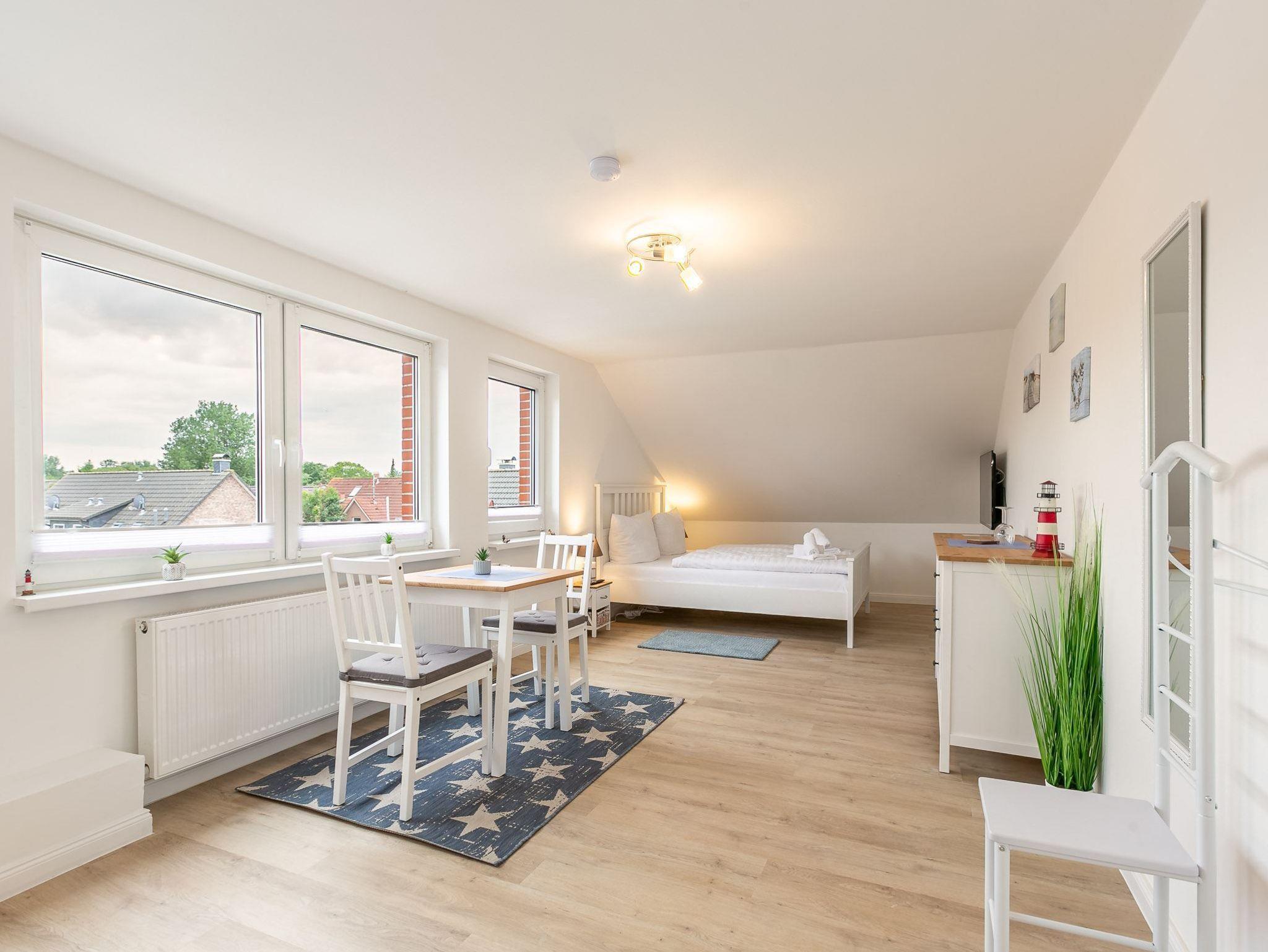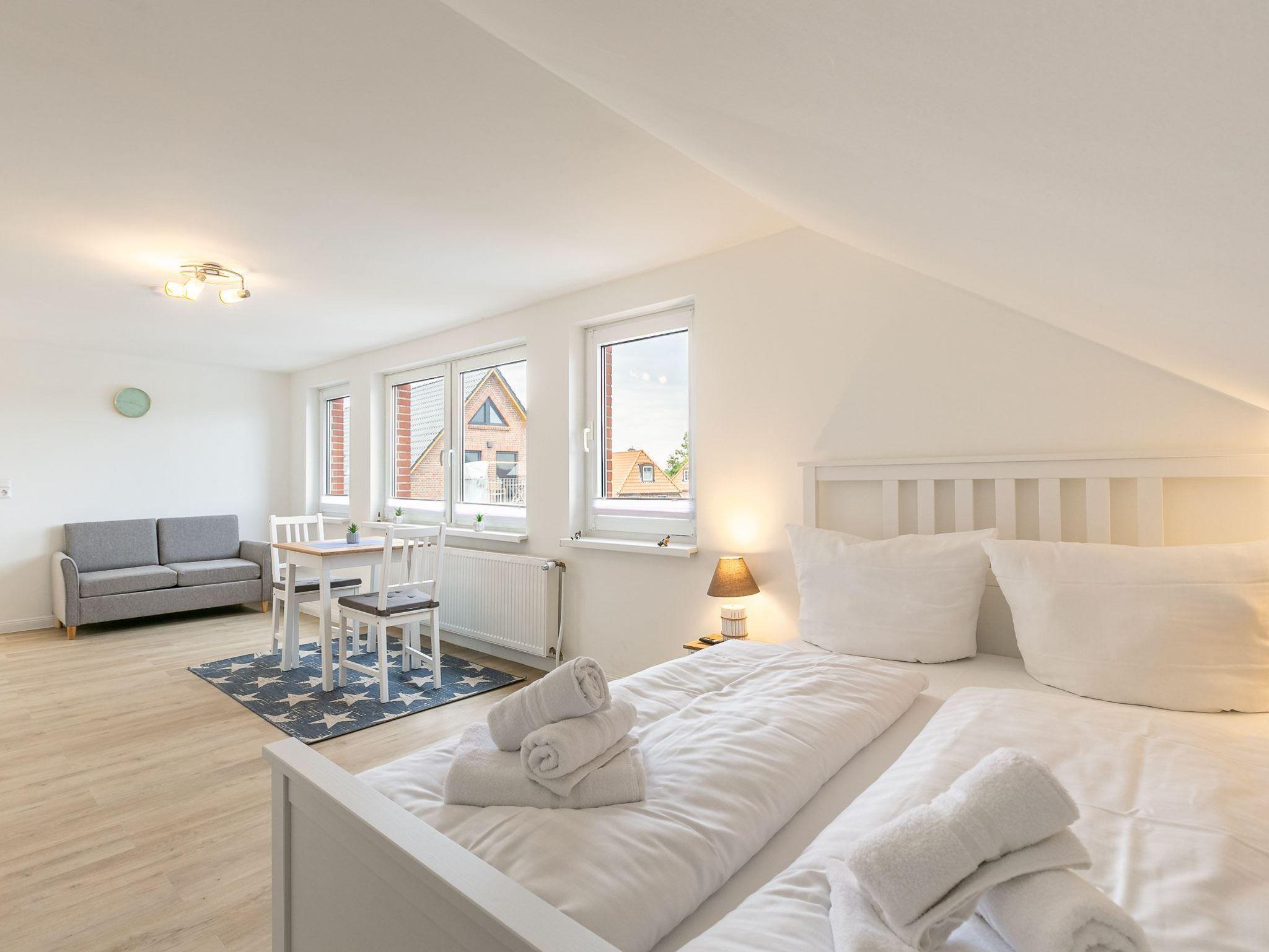 Modernes, liebevoll eingerichtetes Studio-Appartement Seestern im Haus Häwelmann mit ca. 25 m² auf 1 Ebene (DG) für bis zu 2 Personen. Zentrumsnahe, aber ruhige Lage im Ortsteil Dorf in St. Peter-Ording. Alle Geschäfte und Restaurants der Dorfstraße sind in nur wenigen Gehminuten erreichbar. Zum nächsten Strandübergang sind es ebenfalls nur wenige Meter. Das ideale Domizil für einen schönen Urlaub an der Nordsee.