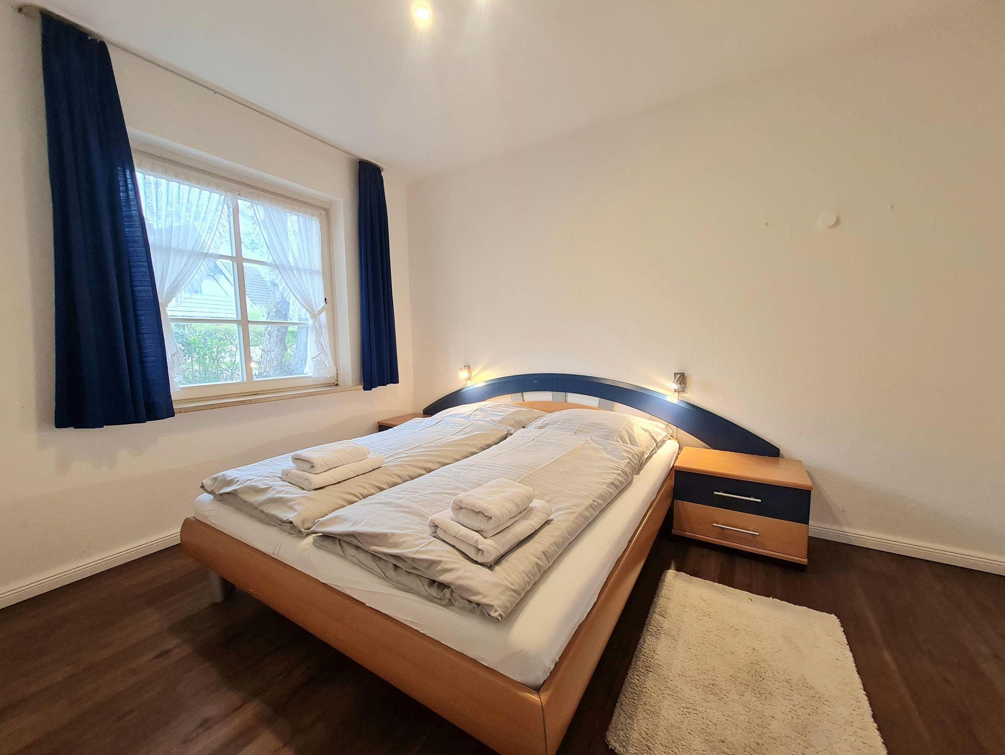 Ein geräumiges Schlafzimmer mit Doppelbett befindet sich ebenfalls im Erdgeschoss, wie auch ein modernes Tageslichtduschbad.