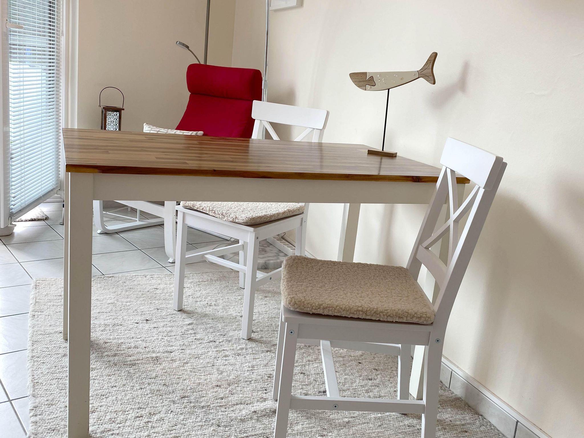 Die 2-Raum-Wohnung Utlande Nr. 34 bietet Ihnen eine farbliche schön gestaltete Unterkunft für bis zu 2 Personen im 1. OG. Der Fußboden ist in der gesamten Wohnung mit schönen Fliesen verlegt. Die Küchenecke lädt mit 4-Plattenherd und Backofen zum Kochen und Backen ein. Die Spülmaschine hilft Ihnen danach weiter. Es erwartet Sie ein renoviertes, modernes Bad. Auf dem großzügigen Süd-Balkon können Sie etwas Nordseeluft schnuppern.