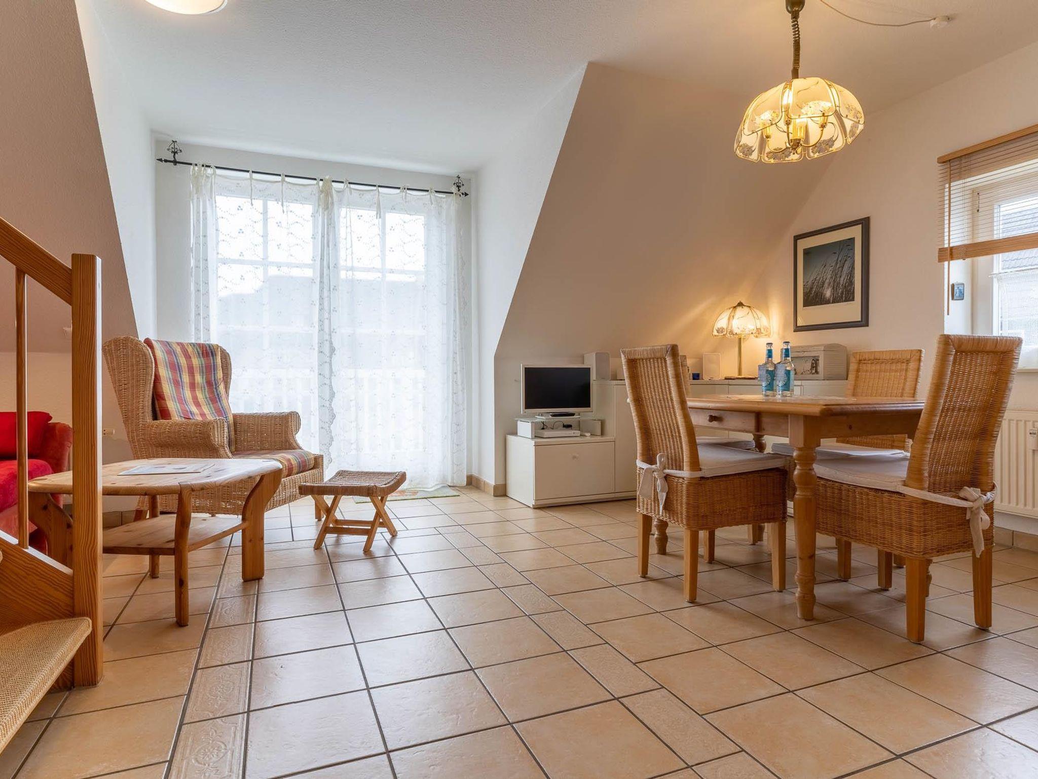 Die Wohnung ist ca. 65 qm groß und ist für bis zu 4 Personen (2 getrennte Schlafräume mit je einem Doppelbett) ausgelegt. Sie hat einen Balkon, der in Süd-West Richtung ausgerichtet ist, ein Bad mit Dusche und einen kombinierten Wohn/Essraum mit Einbauküche.