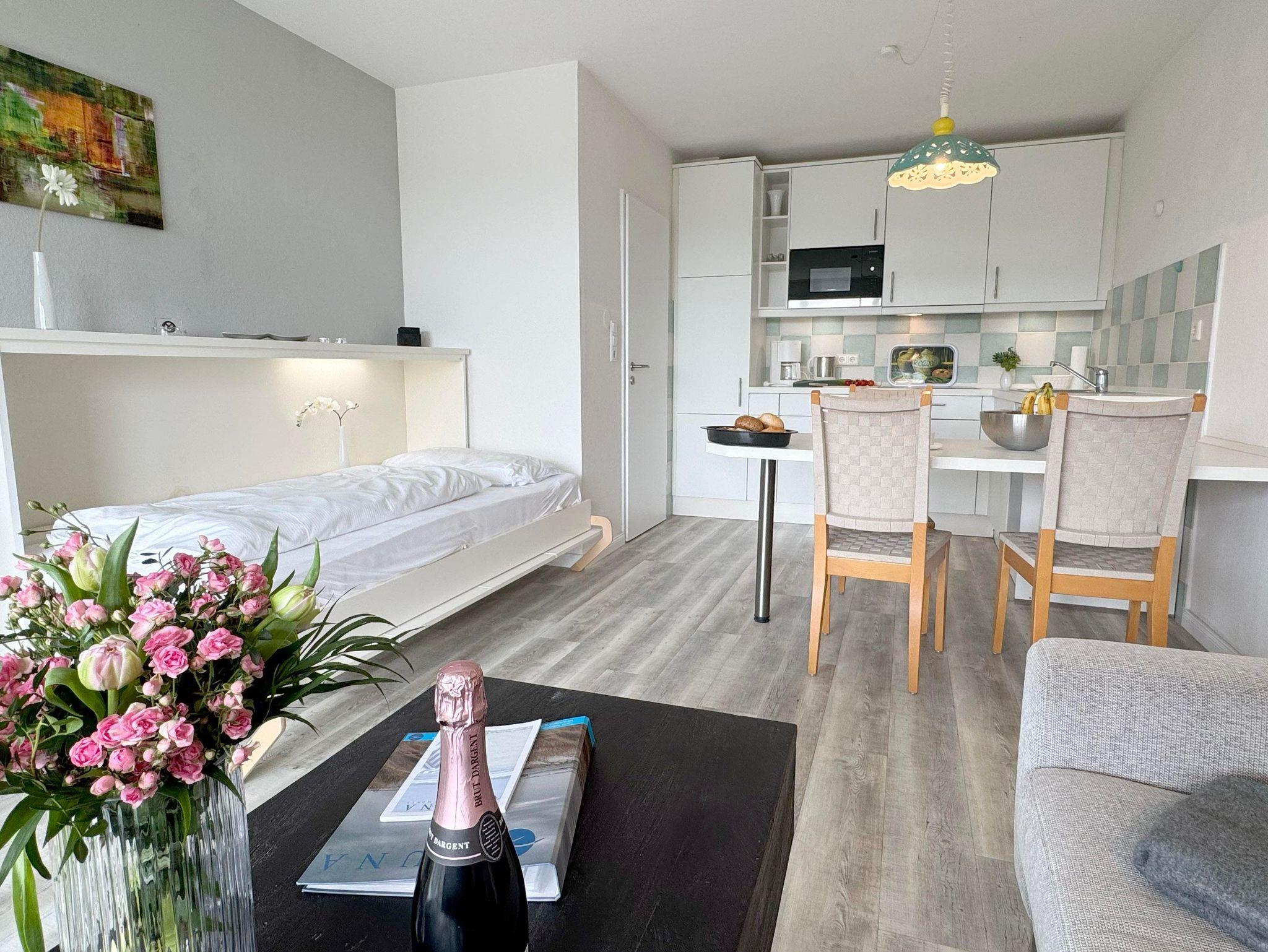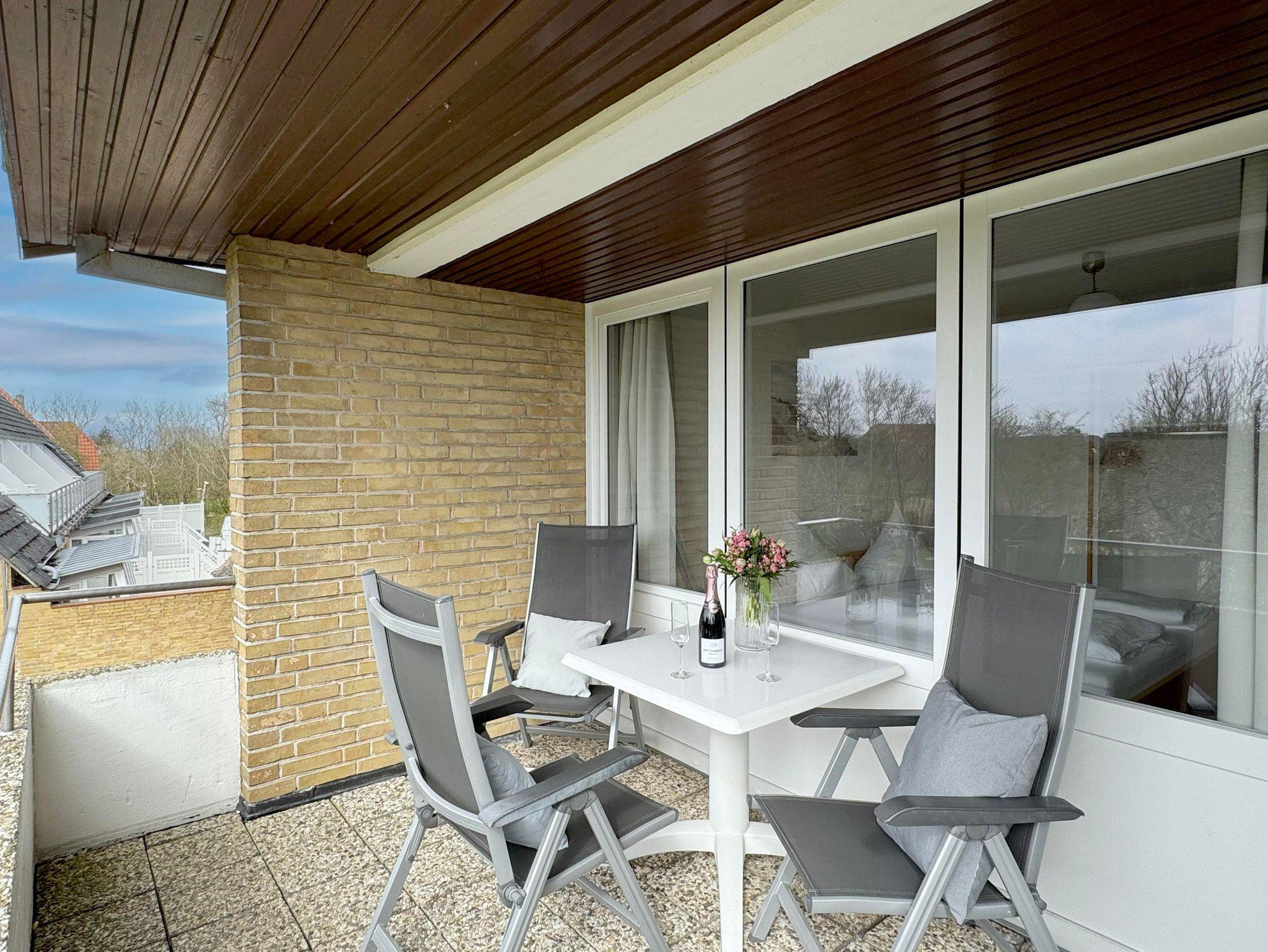Helle, freundliche und strandnahe Ferienwohnung in St. Peter-Ording im Obergeschoss mit großer Südloggia für 2-3 Personen, ruhig und strandnah