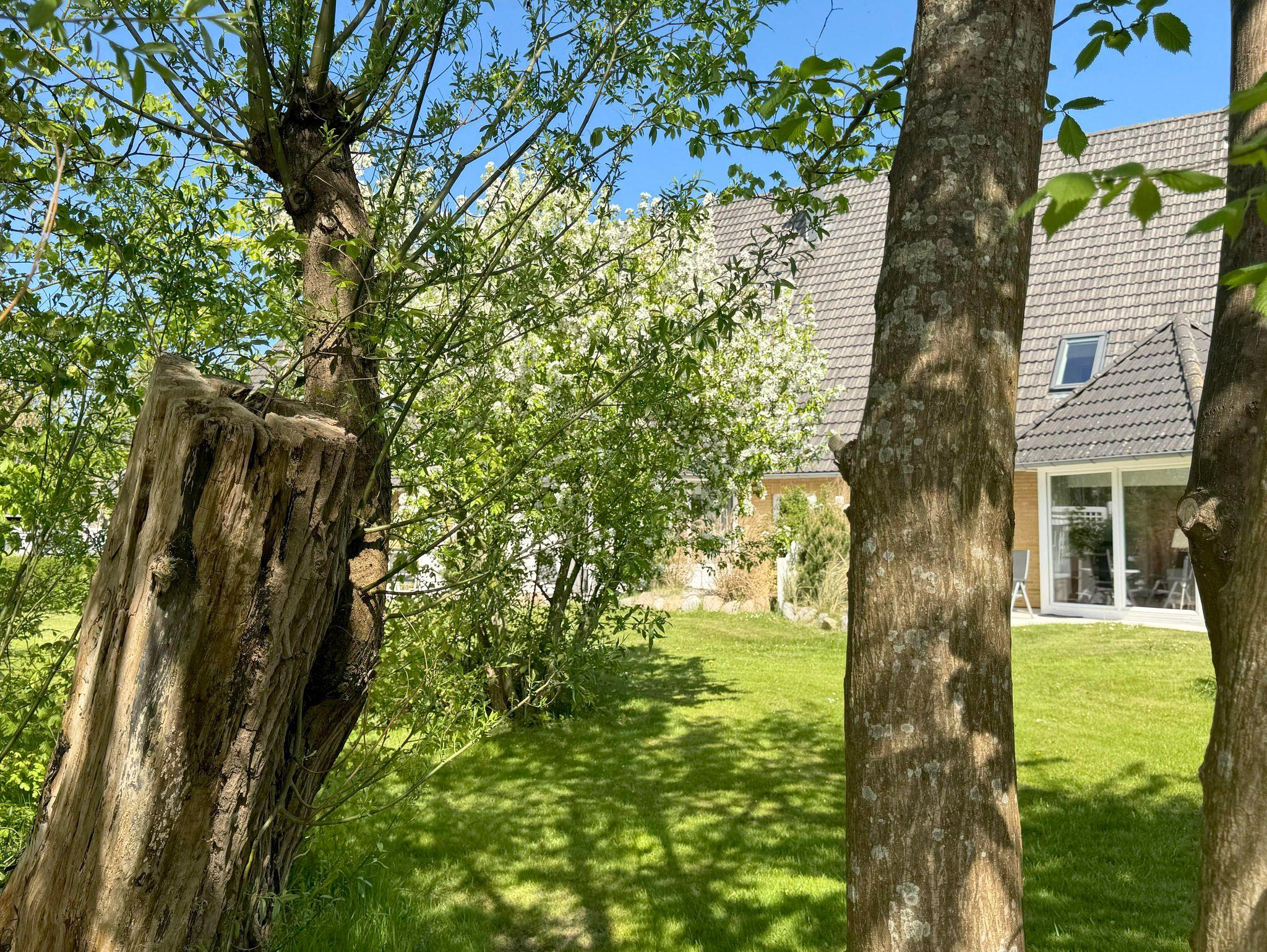 Das über 10.000 qm große Appartementhausgrundstück, eingerahmt von alten, landtypischen Bäumen ist parkähnlich mit Liegewiesen für unsere Gäste angelegt. Ein kurzer Weg, ca 100m, und Sie sind bereits im Dünengelände und am Strand.