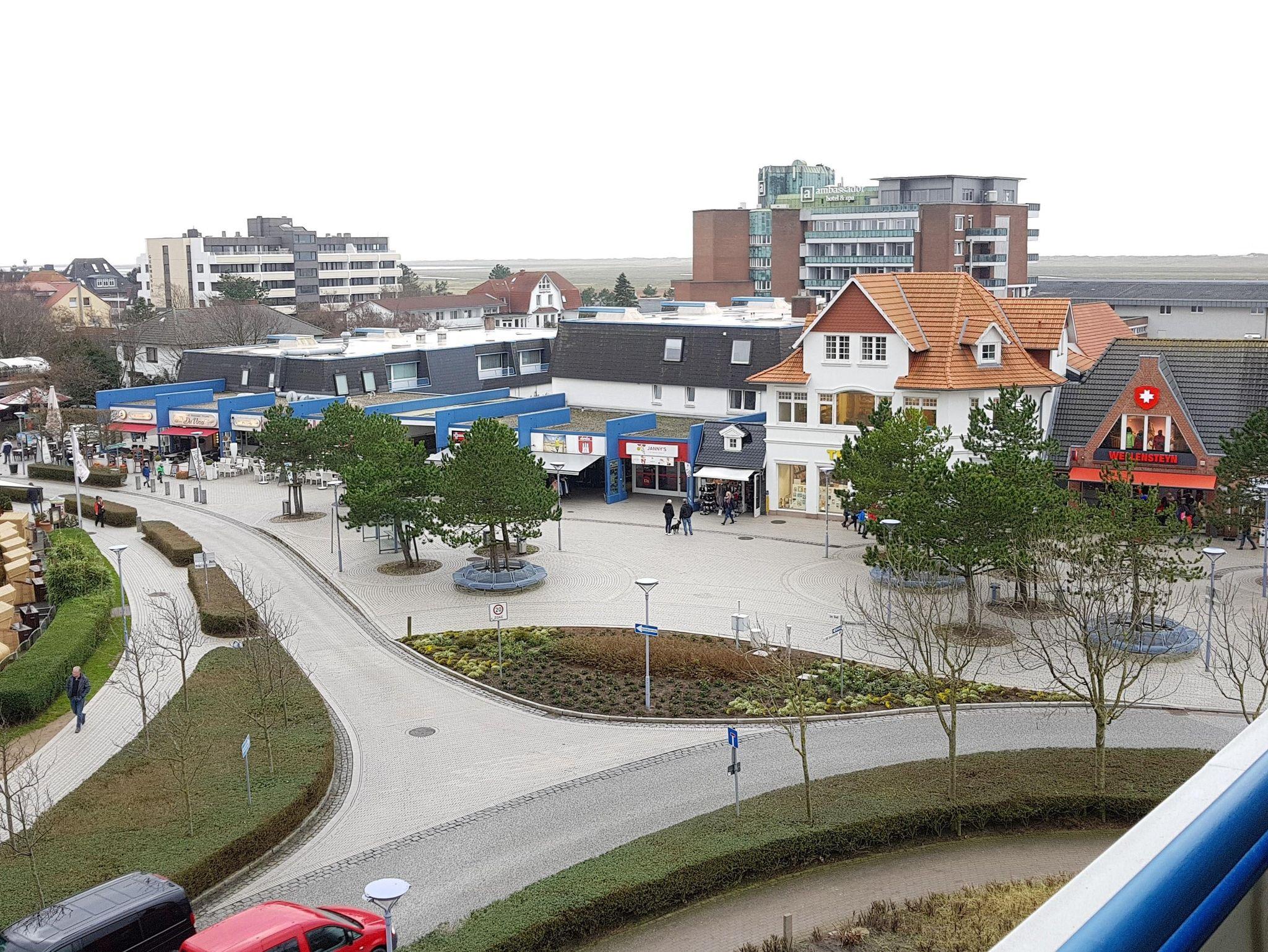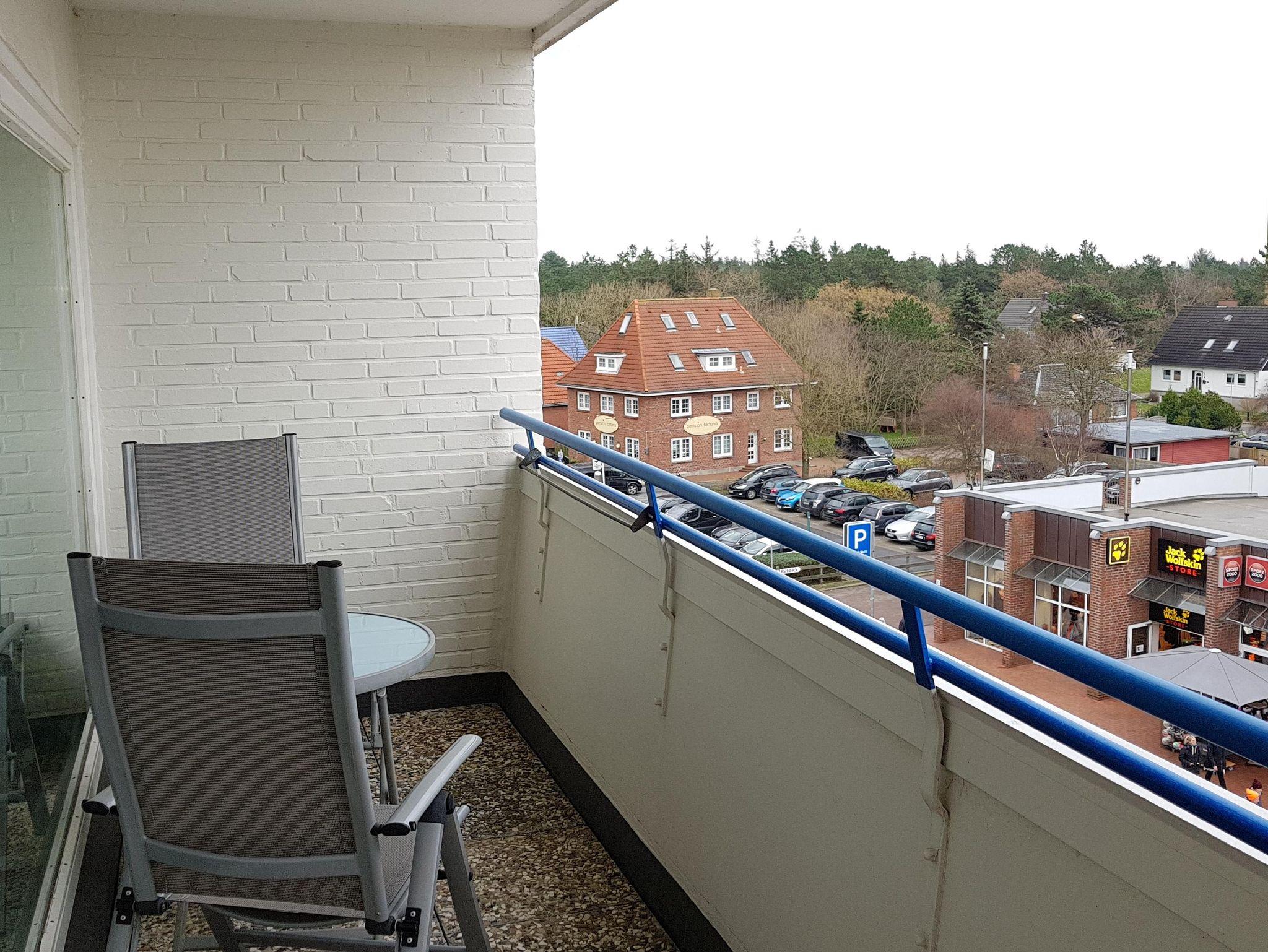 Auf dem großzügigen Südostbalkon haben Sie viel Platz zum Entspannen und Sonne tanken. Wenn Sie in Richtung Hotel Ambassador schauen, können Sie sogar ein bißchen Nordsee erblicken.