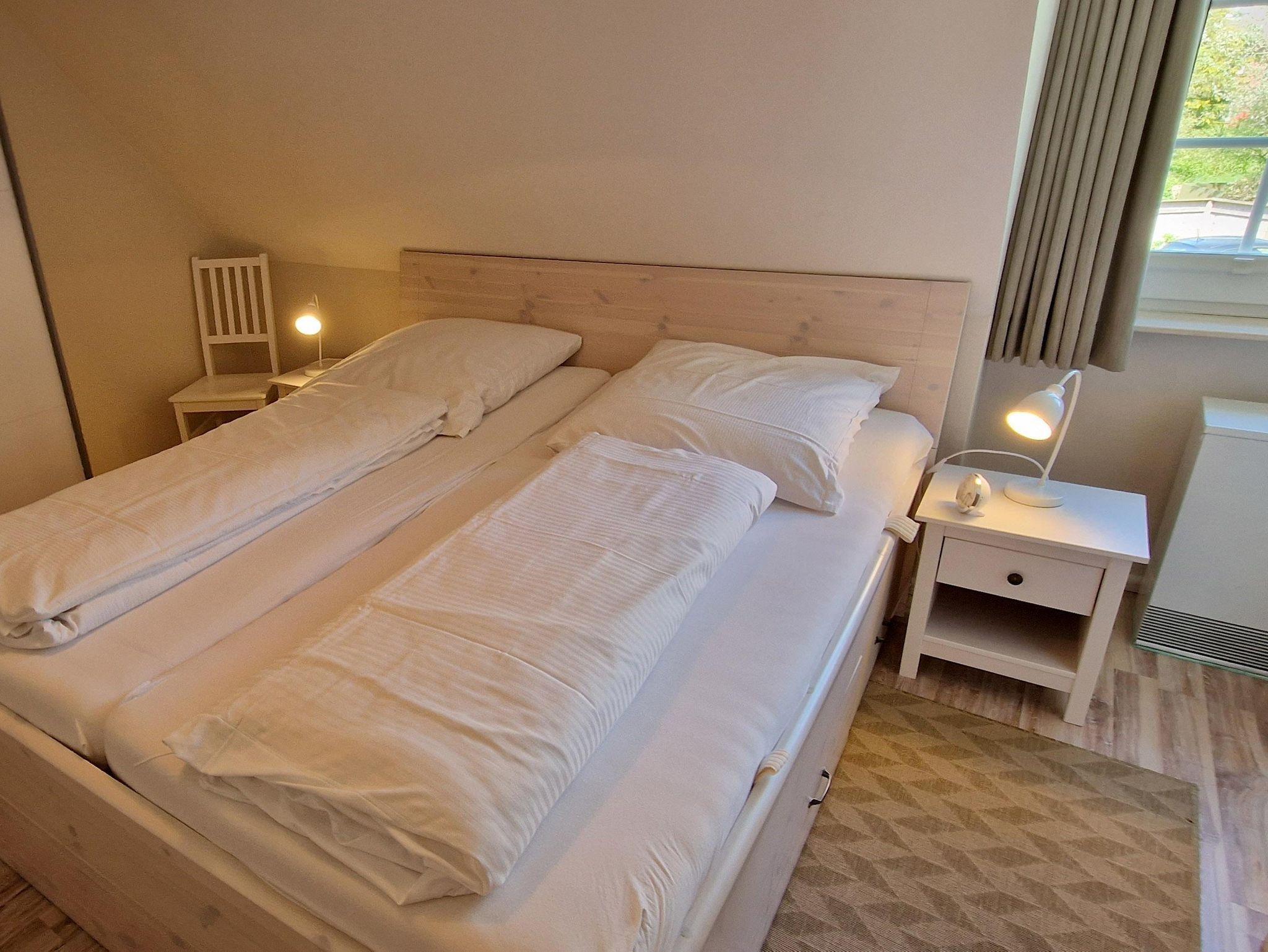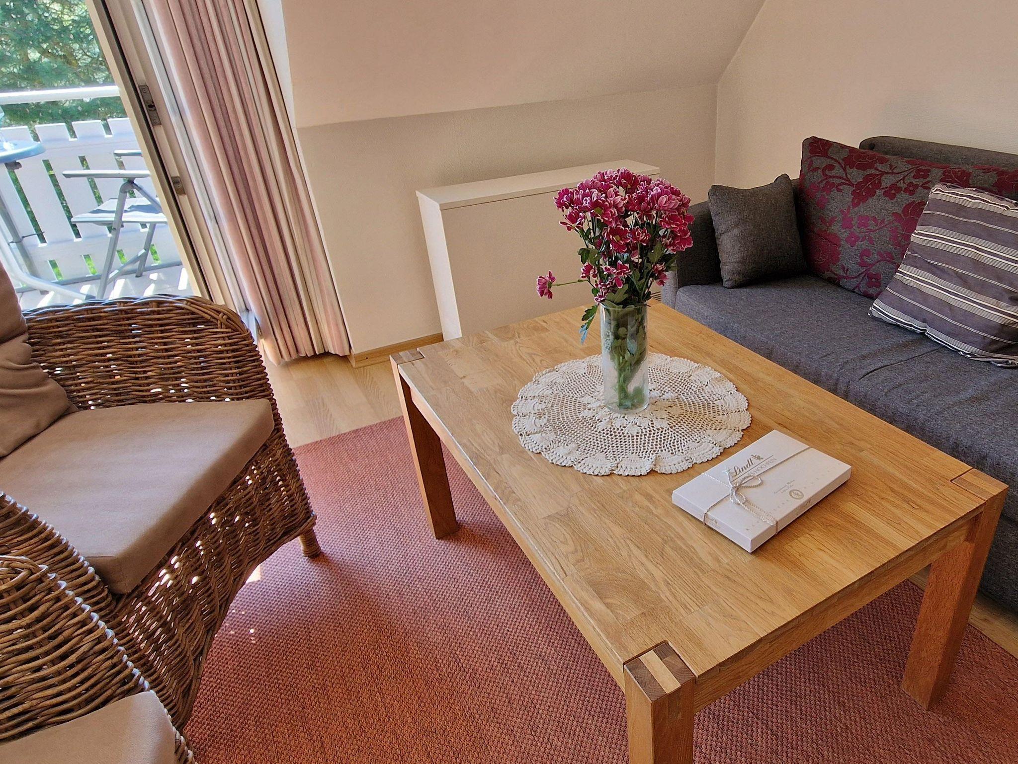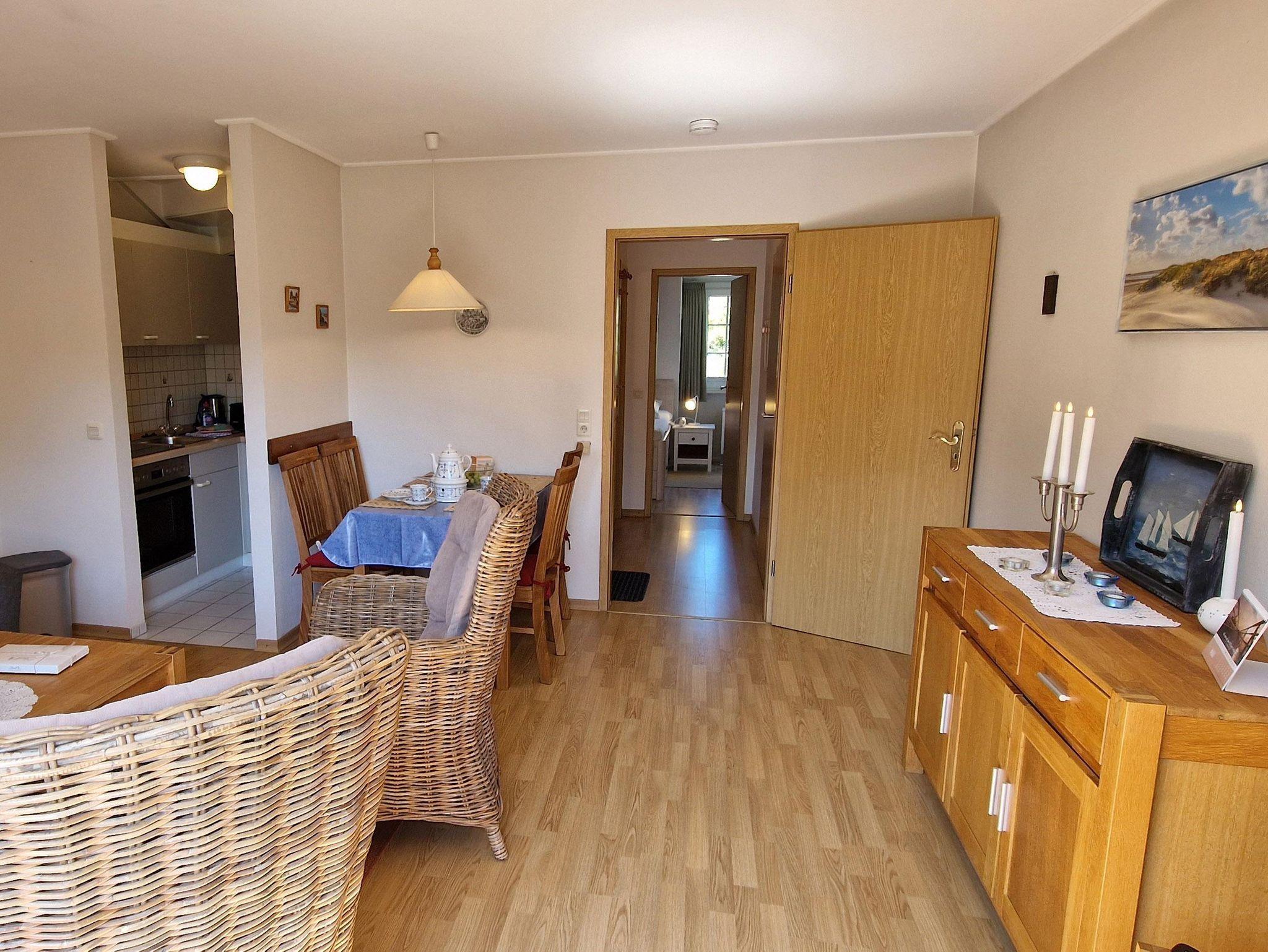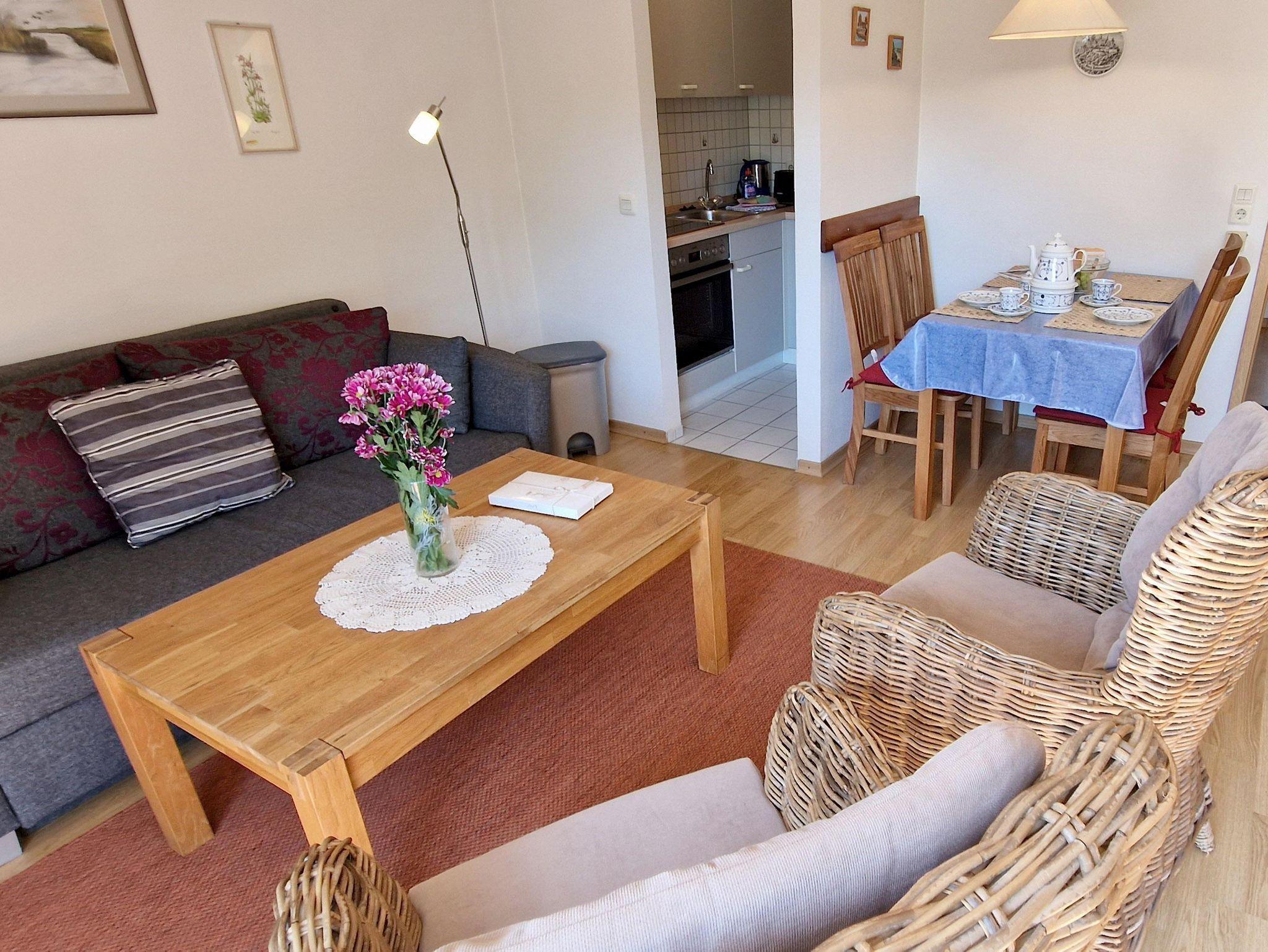 Probier's mal mit Gemütlichkeit. In der 3-Zimmer-Ferienwohnung Nis Randers Nr. 07 können Sie mit bis zu 4 Personen einen entspannten Urlaub verleben. Auf dem Balkon in Süd-Westlage können Sie die Seele baumeln lassen. Aufgeteilt in 2 Stockwerke bietet dieses Appartement genug Raum für alle. Im 1. OG. finden Sie ein Schlafzimmer mit Doppelbett. Der im Dachgeschoss gelegene Raum ist mit 2 Einzelbetten und einer Couchgarnitur ausgestattet. WLAN ist hier inklusiv.
