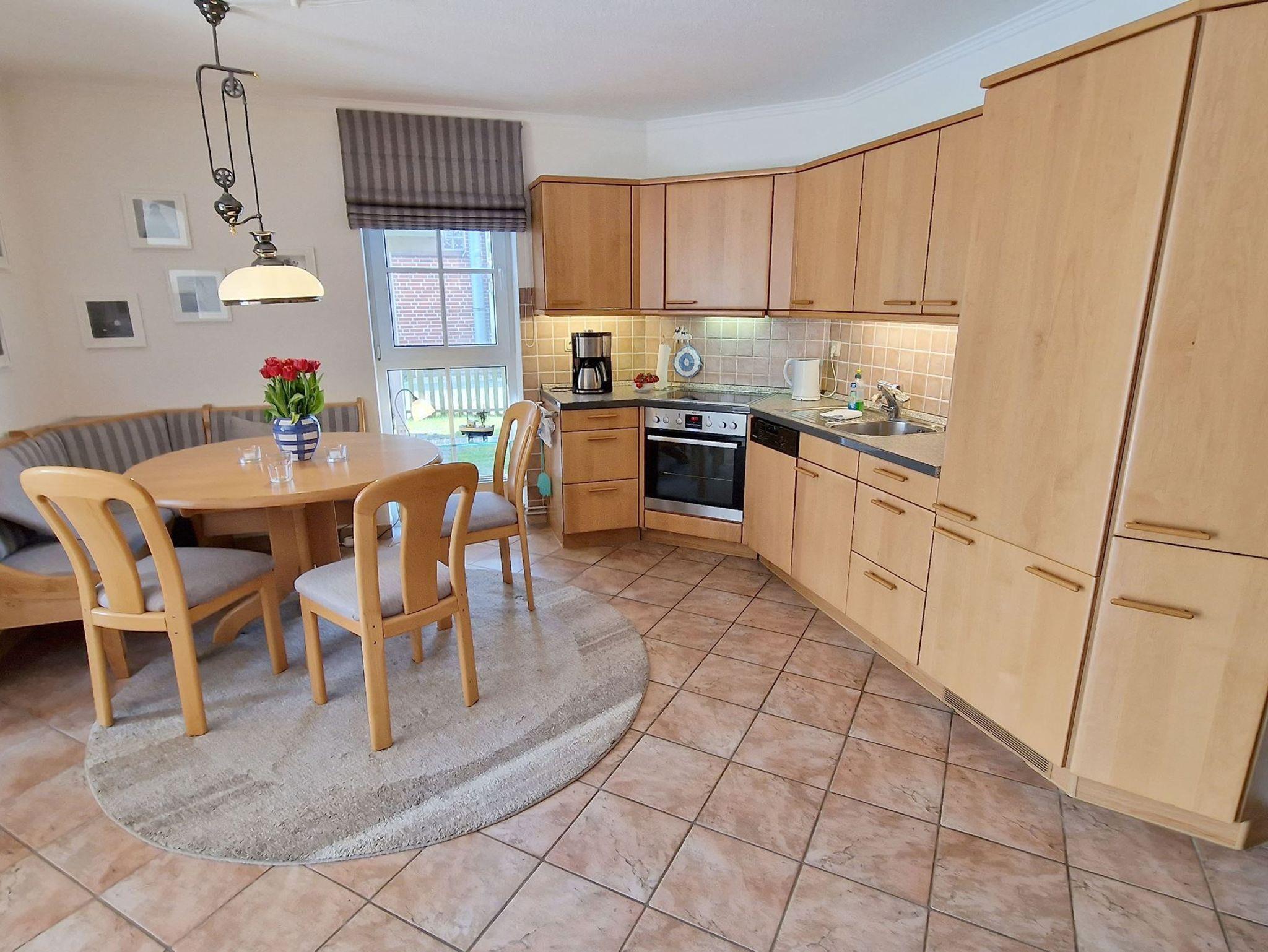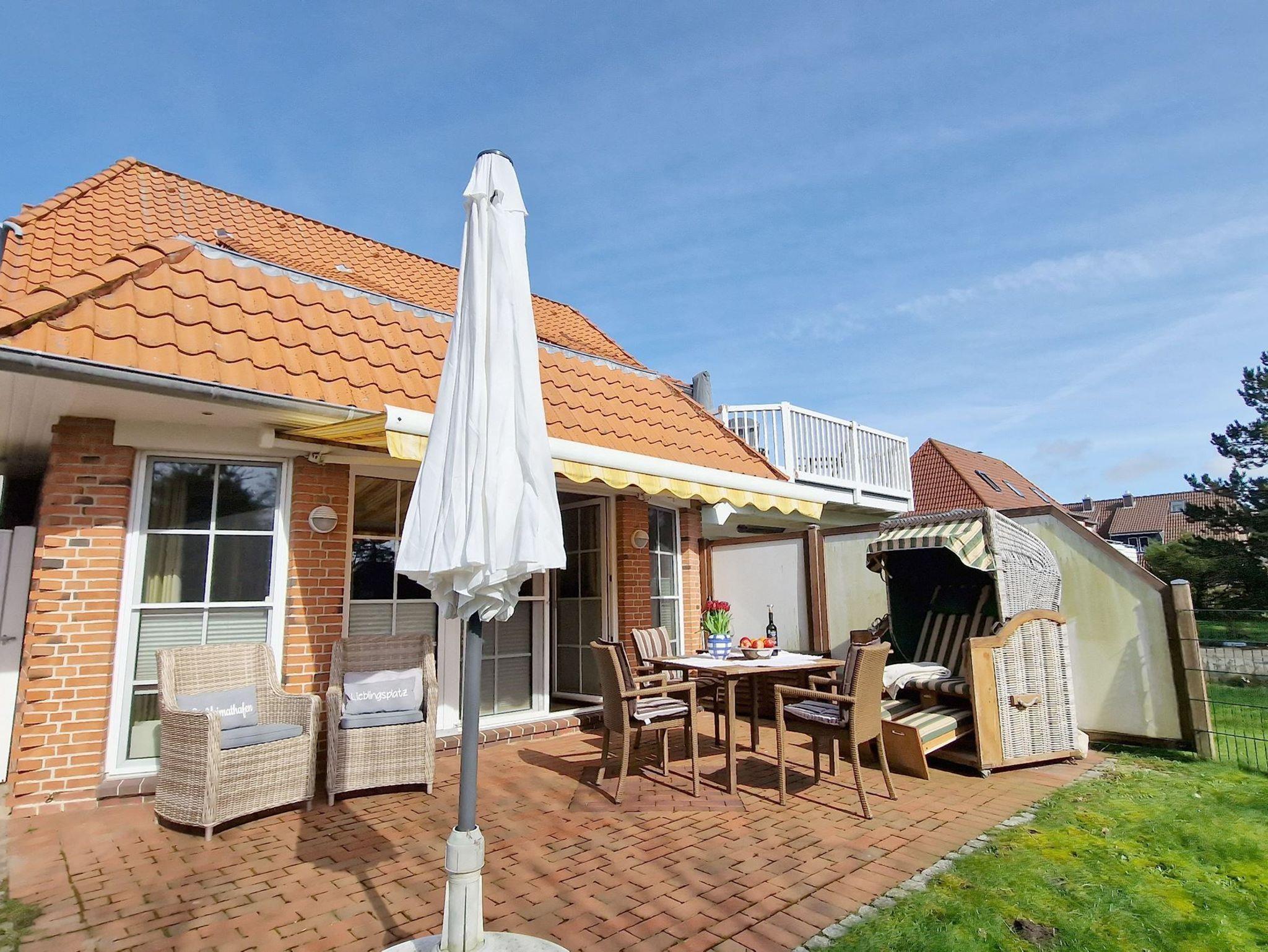Die geräumige und hochwertig ausgestattete 3- Zimmer-Wohnung (ca. 77m² ) befindet sich im Erdgeschoß und besitzt ein hohes Maß an Funktionalität. Das lichtdurchflutete und sehr hochwertige Wohn-/ Esszimmer verfügt über eine separate Sitzgruppe mit bequemer Couch. Die offene Küche beinhaltet eine voll ausgestattete Einbauküchenzeile. Eines der Schlafzimmer ist mit einem Doppelbett ausgestattet, das andere verfügt über zwei Einzelbetten. Das elegante Badezimmer verfügt über eine geräumige Dusche mit nahezu ebenerdigem Einstieg und Echtglastüren. Vom Wohn-Esszimmer haben Sie direkten Zugang zur großen sonnigen Terrasse mit Gartenmöbeln, Sonnenschirm, Strandkorb und Markise. Ihr Auto können Sie kostenfrei auf einem zu Ihrer Wohnung gehörendem Carport-Stellplätzen ( max. für 2 Pkw´s ) am Haus parken. Der Clou beim dem Grundstück ist, dass Ihr Vierbeiner nicht weglaufen kann, da der Garten komplett eingezäunt ist. Ihre Fahrräder können in einem abgeschlossenem Fahrradschuppen untergestellt werden.