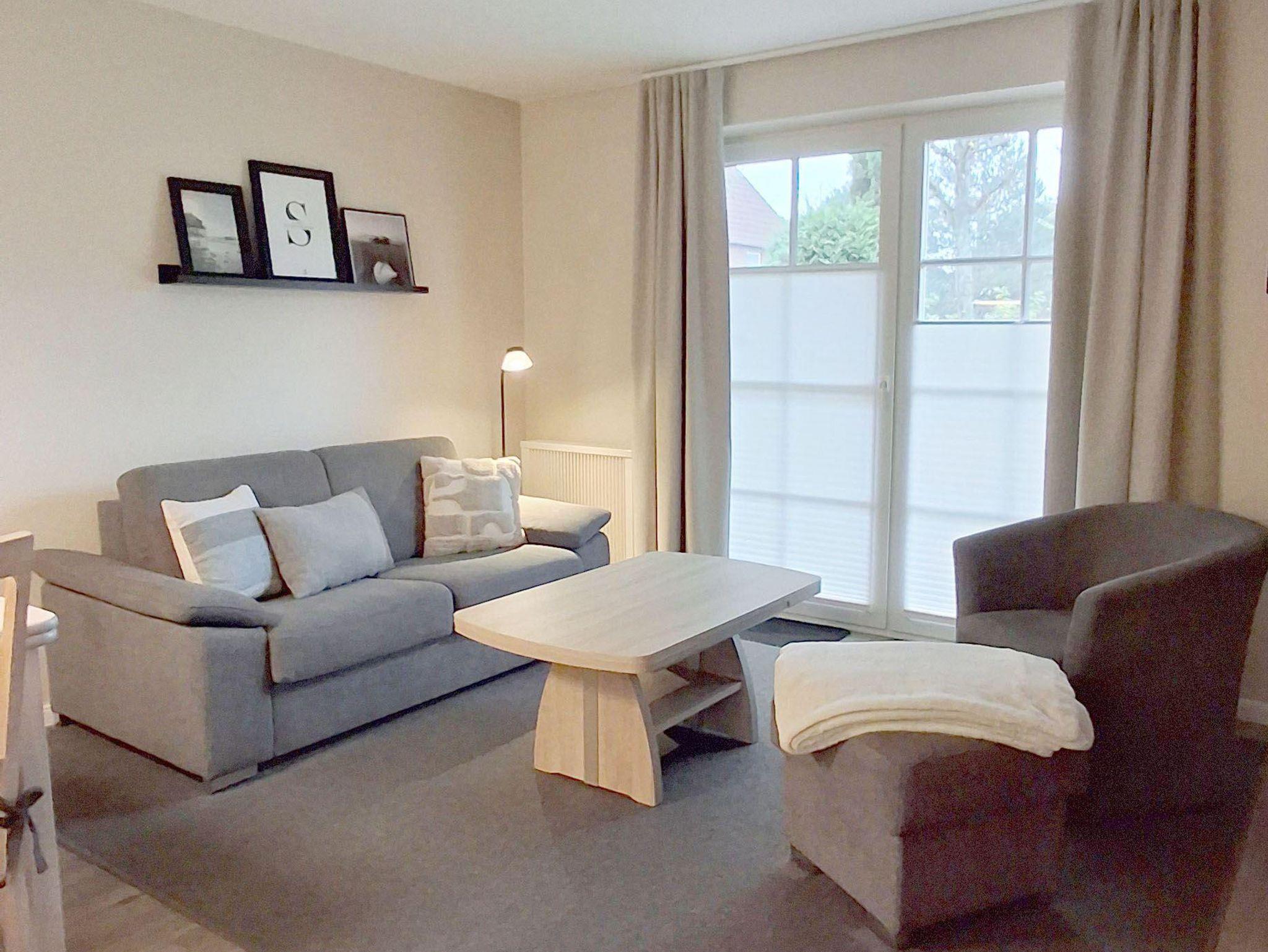 Die modern eingerichtete 2-Zimmer-Ferienwohnung Wattläufer Nr. 04 für 2-4 Personen liegt im EG. Vom gemütlich eingerichteten Wohnbereich treten Sie auf die schön abgetrennte Terrasse in Südlage, die halb überdacht ist. Hier können Sie Ihre Seele baumeln lassen. Die offene Küchenzeile lädt mit dem Cerankochfeld zum Kochen ein. Schlafplatz gibt es im Wohnzimmer und in den 2 Einzelbetten im separaten Schlafzimmer.