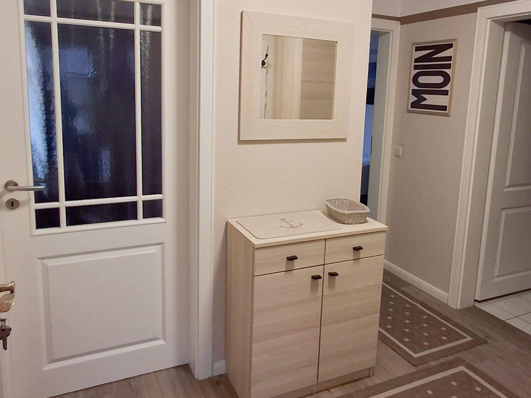Flur: Garderobe, Spiegel, Schuhregal, Anrichte, Schrank, Schirmständer, Staubsauger, 1 Elkatherm Flächenheizkörper