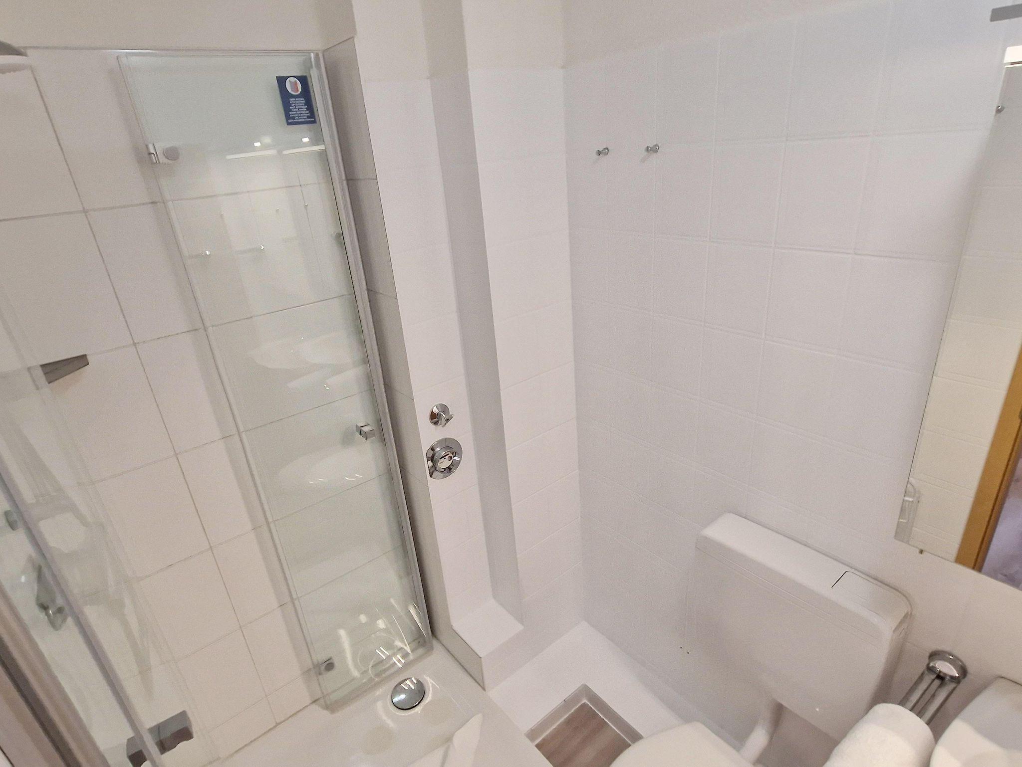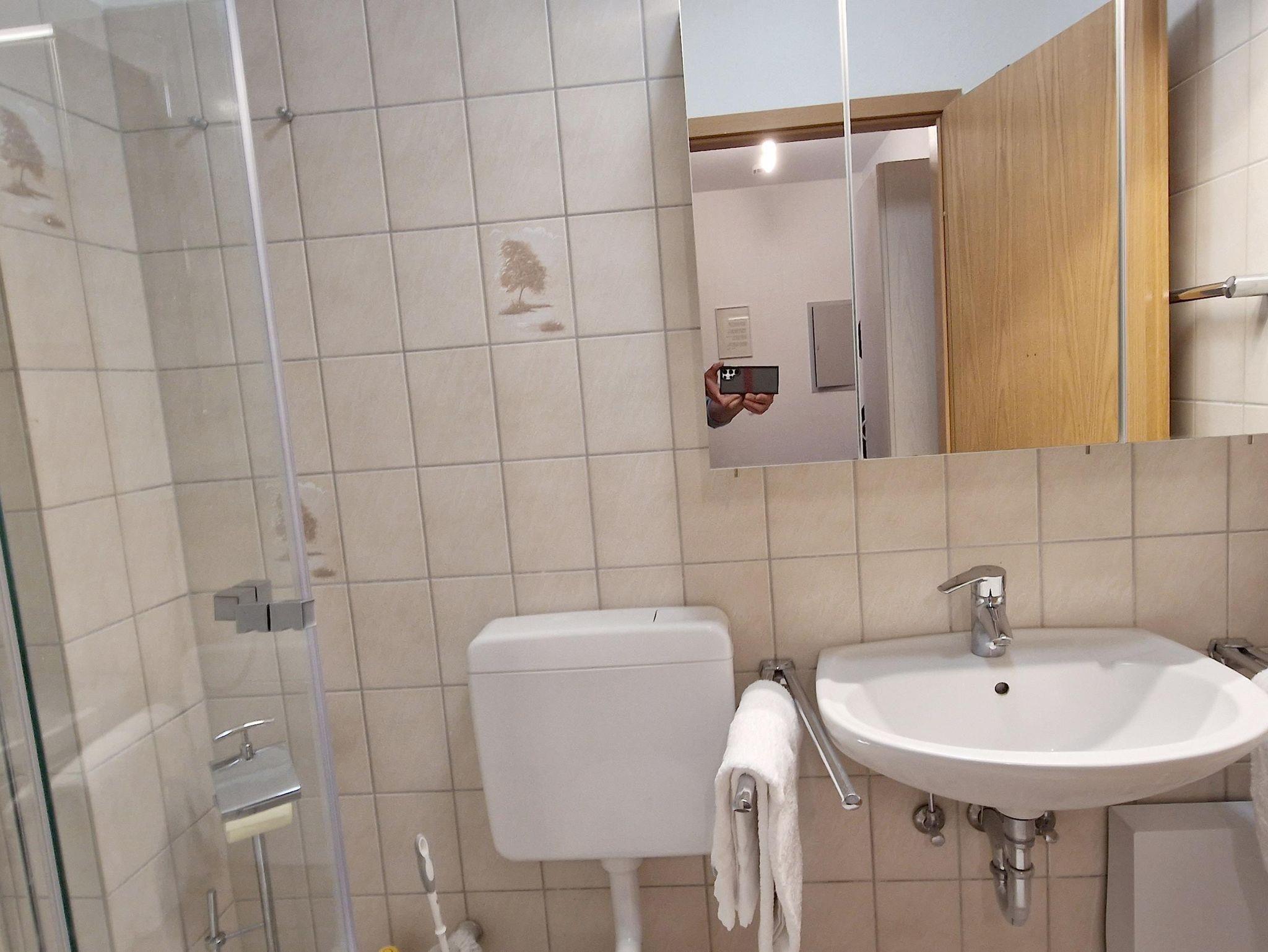 BadDusche, Waschbecken, WC, Duschkabine, Spiegelschrank