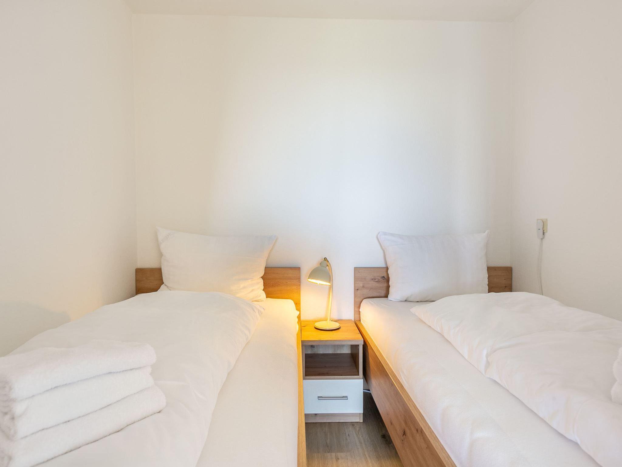 1. Schlafzimmer mit 2 Einzelbetten (je 100x200cm). Dieses Schlafzimmer ist durch einen Vorhang vom Wohnzimmer abgeteilt.