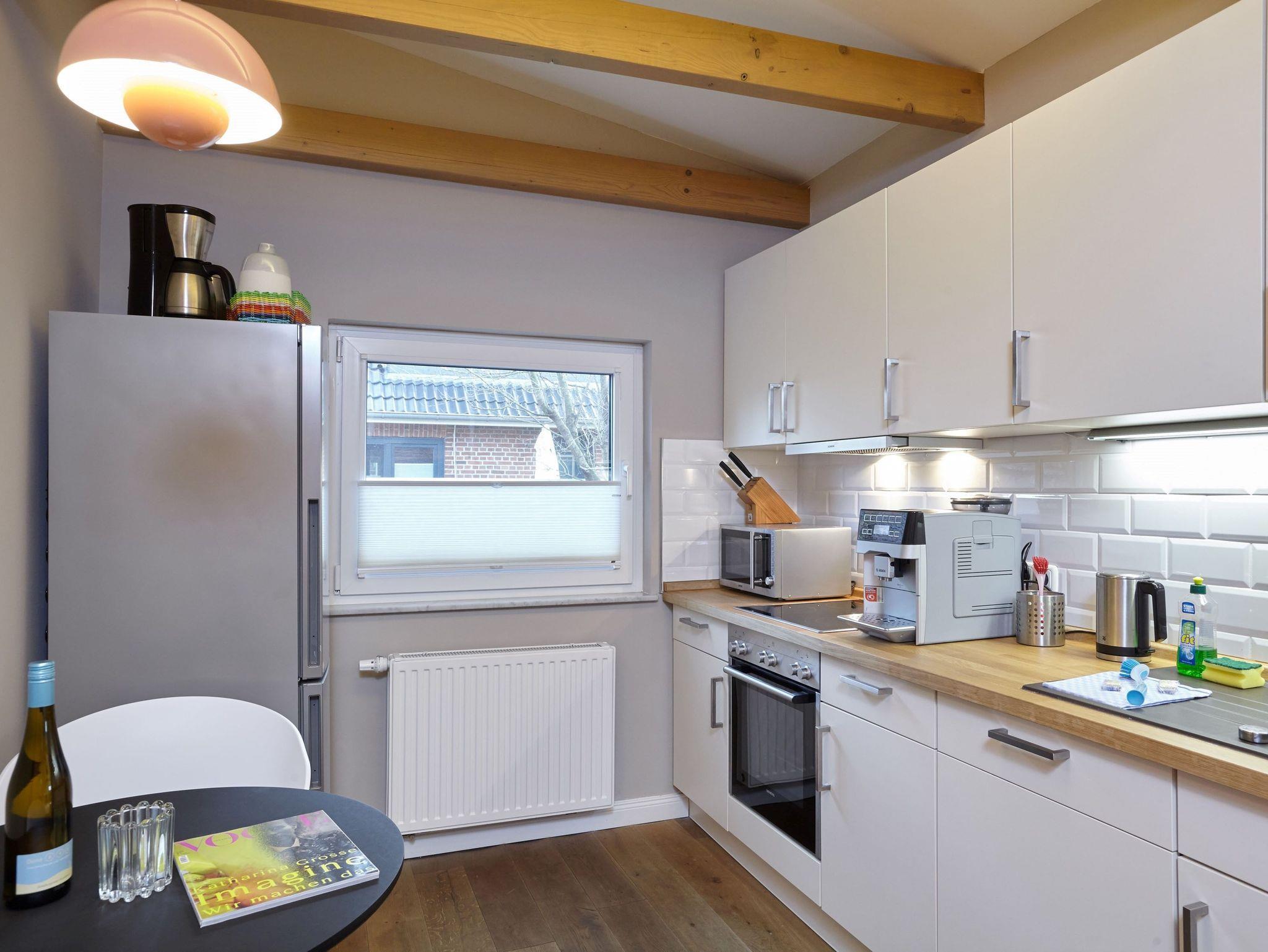 Das Ferienhaus Birklund besticht durch sein Ambiente. Ein offene Decke mit Balkenlage verleiht dem Wohnzimmer mit offener Küche ein besondere Atmosphäre. Auch das Schlafzimmer mit Blick in den angrenzenden Dünenrand lädt zu Träumen ein.