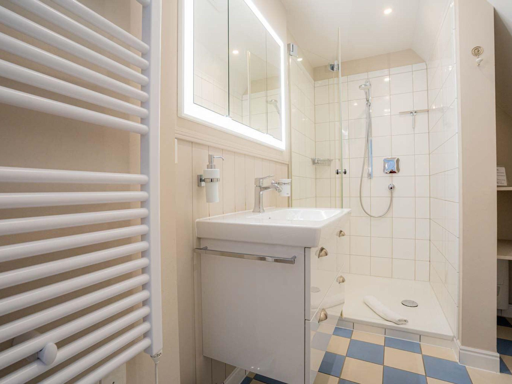 1. Badezimmer (Duschbad) mit Dusche (hoher Einstieg), WC, Handtuchwärmer und Tageslicht. Dieses Bad befindet sich im OG.