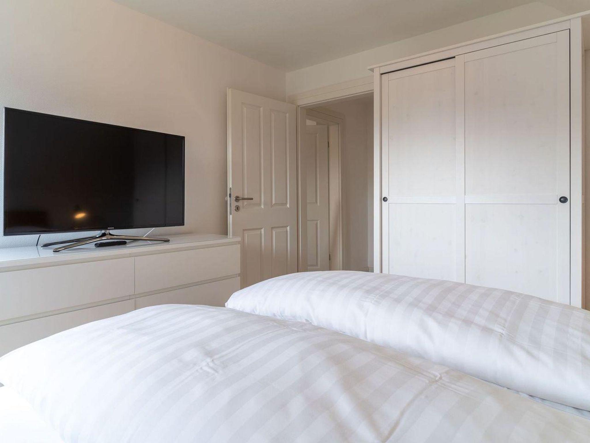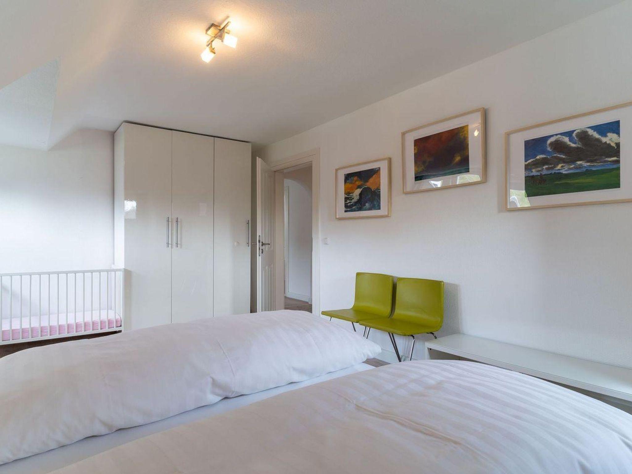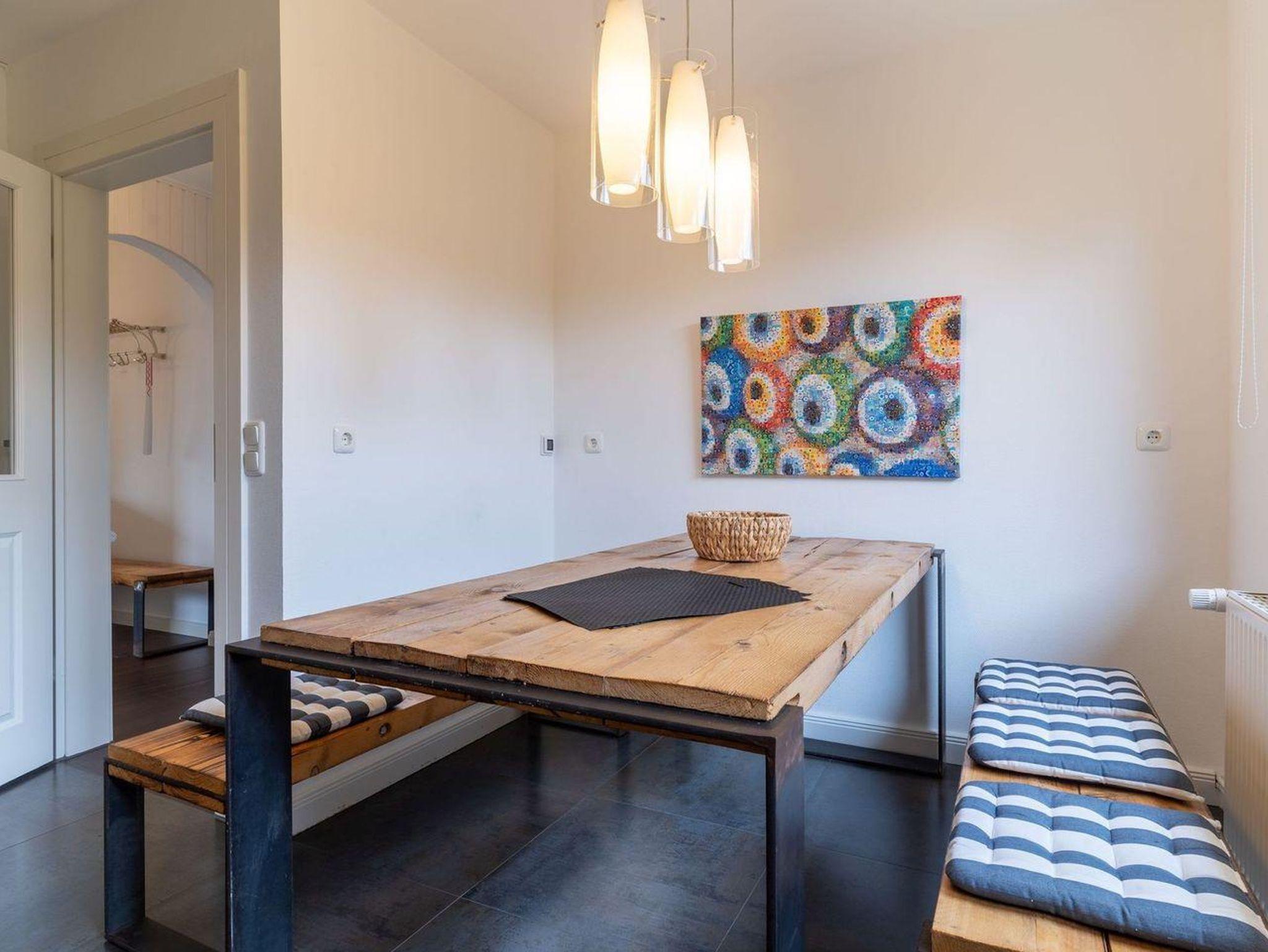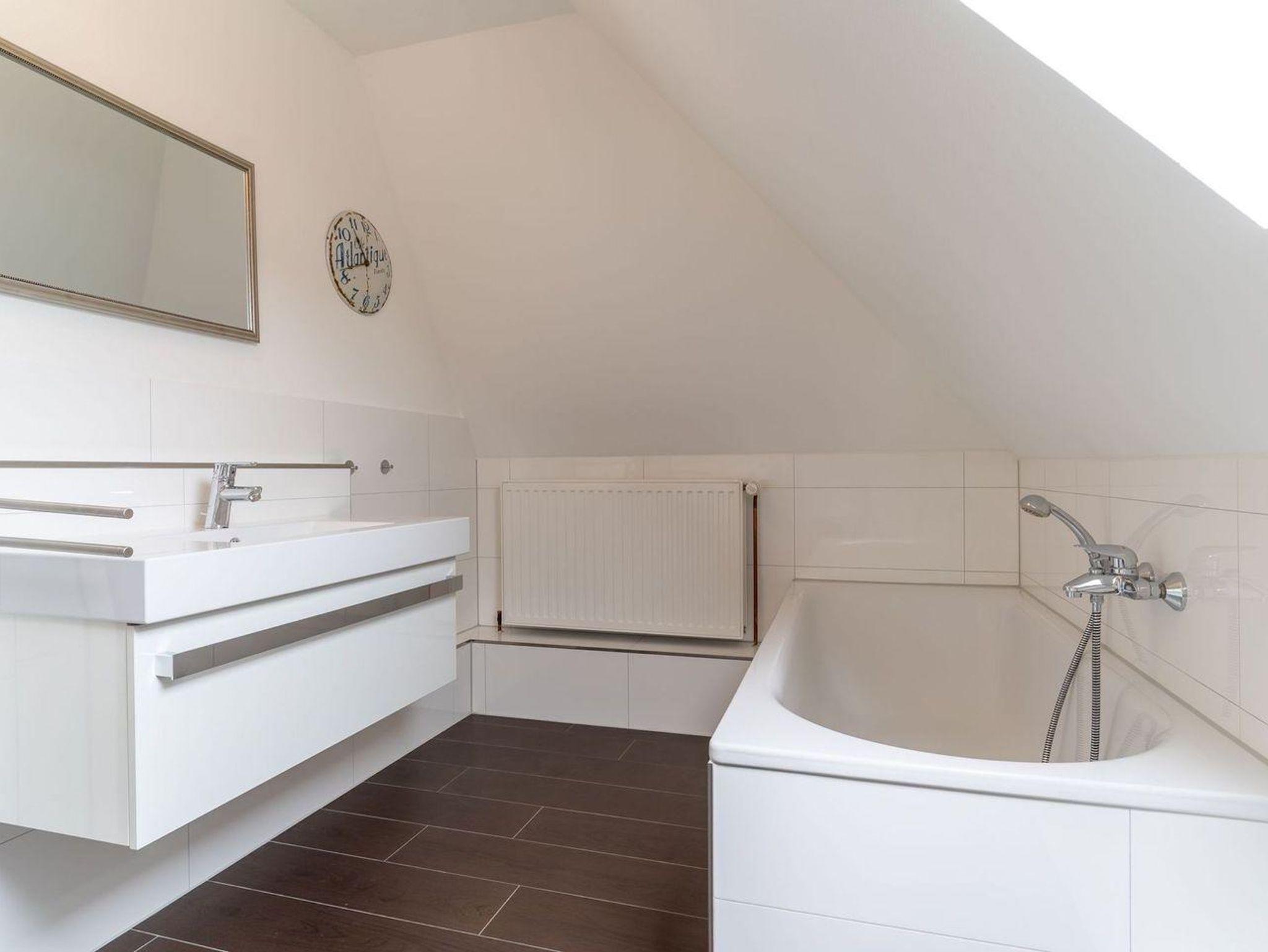 Im Erdgeschoss befindet sich der lichtdurchflutete Wohnraum mit TV und einem großzügigen Essbereich. Die Wohnräume sind mit Möbeln im shabby look ausgestattet. Vom Flur aus gelangt man in die voll ausgestattete Küche mit gemütlichen Sitzbänken. Außerdem ist im Erdgeschoss ein Duschbad und ein Einzelschlafzimmer mit Schreibtisch und einer Infrarot-Wärmekabine. Über eine Treppe gelangt man in das Obergeschoss. Die drei Schlafzimmer, zwei mit einem Doppelbett und eins mit einem Etagenbett sorgen für ruhmvolle Erholung. Darüber hinaus befindet sich im Obergeschoss ein weiteres Duschbad mit einer Badewanne.