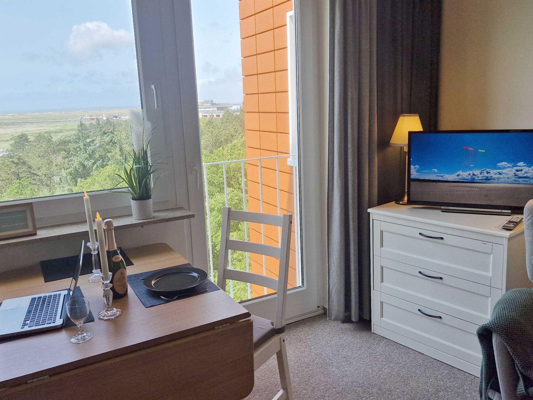 Küstenblick 54°Traumhafte Sonnenuntergänge genießen...Der Wohnraum lässt sich im Handumdrehen in ein gemütliches Schlafzimmer verwandeln. Das Schrankbett mit einstellbarem Lattenrost ist als 1,60 m großes Doppelbett ausgestattet (2 Matratzen). Morgens können Sie Ihr Bett inklusive Bettzeug schnell wieder einklappen – das Bett verschwindet komplett in der Schrankwand.
