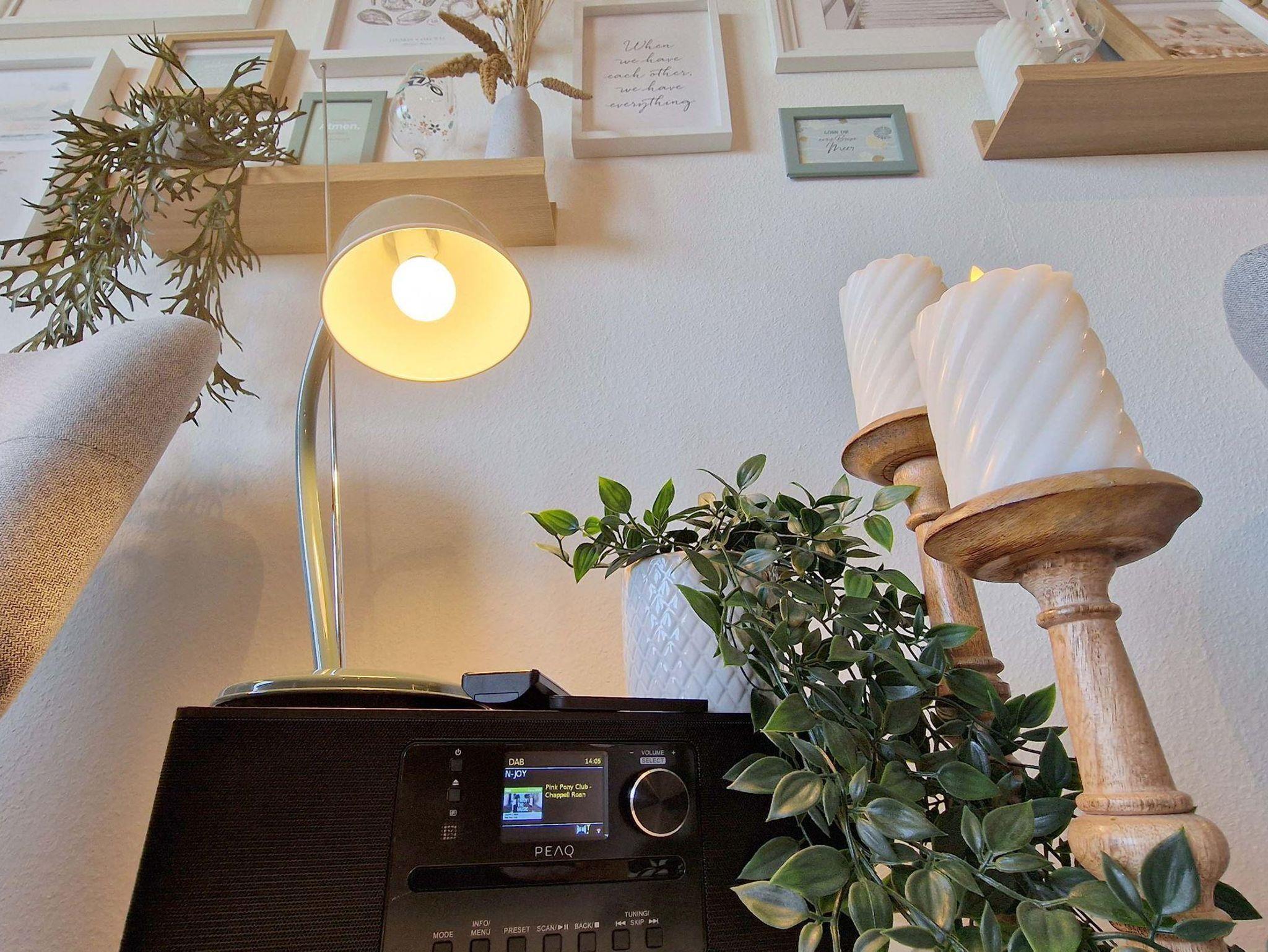 Die Küchenzeile ist mit Microwelle inklusive Backofenfunktion, 2-Plattenkochfeld und Kühlschrank gut ausgestattet – sie bildet eine eigene kleine Nische.
