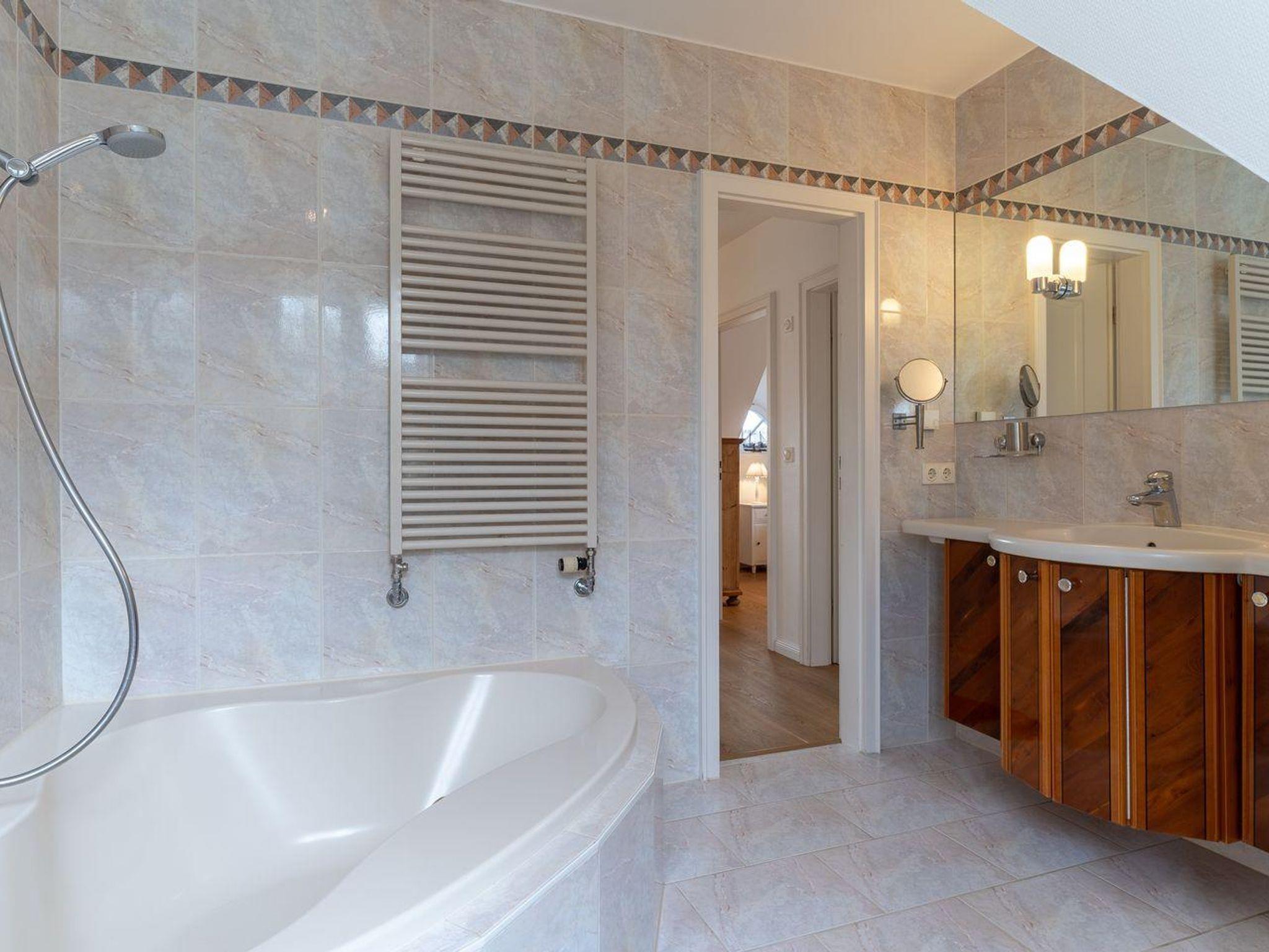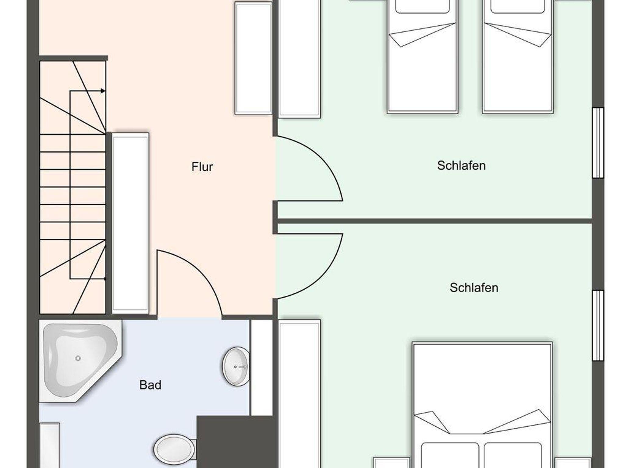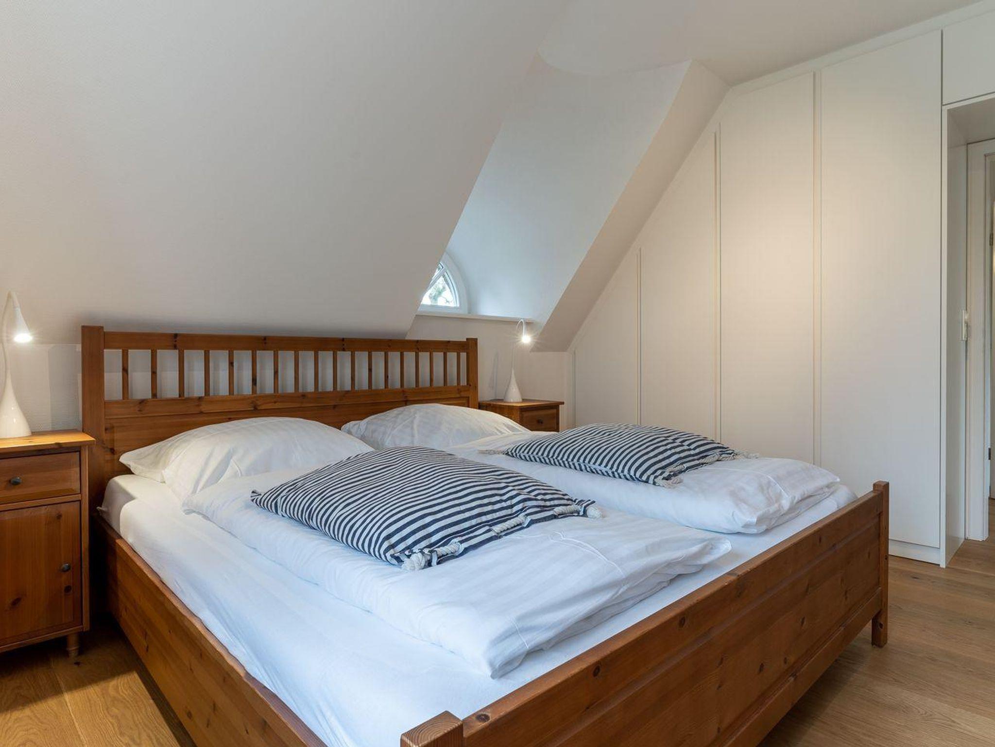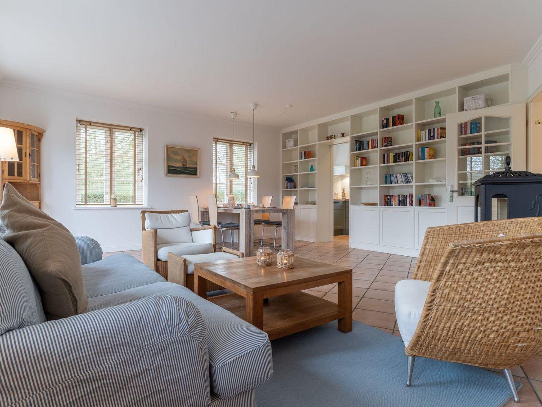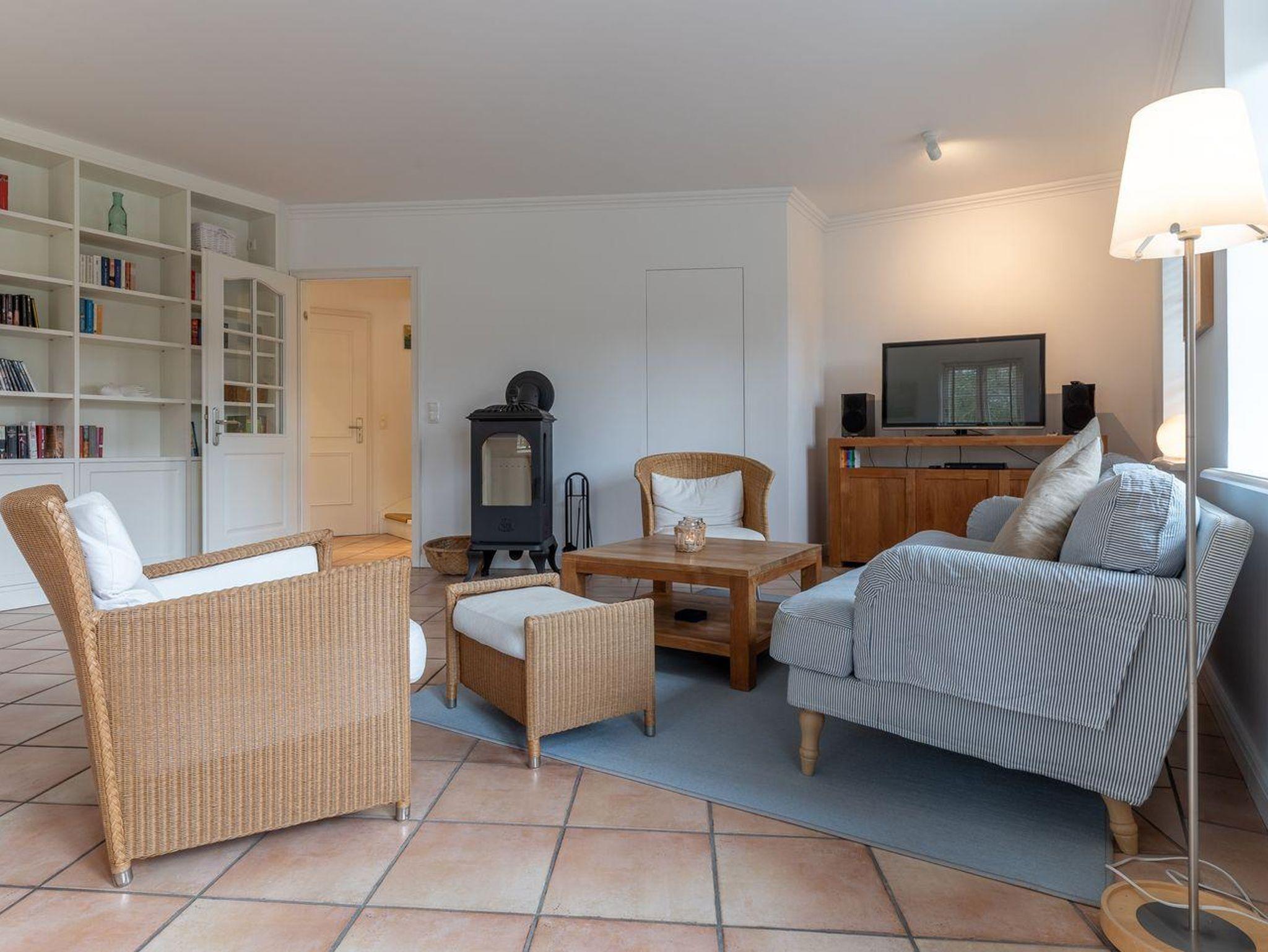 Die Wohnfläche von 93m² verteilt sich auf zwei Ebenen: Erdgeschoss: heller, freundlicher Wohnraum (40 m²) mit offener Küche und Wohn-/Essbereich mit Kamin. Duschbad mit WC und Urinal, Abstellraum. Obergeschoss: zwei gemütliche Schlafzimmer (1 x Doppelbett 180 x 200 cm, 2x Einzelbetten 90 x 200 cm), geräumiges Badezimmer mit Eckbadewanne und Handtuchtrockner. Der schöne großzügige Garten (ca. 1.000 m²) empfängt Sie mit altem Baumbestand, Dünenbeeten, großer Rasenfläche und einer großzügigen Terrasse.