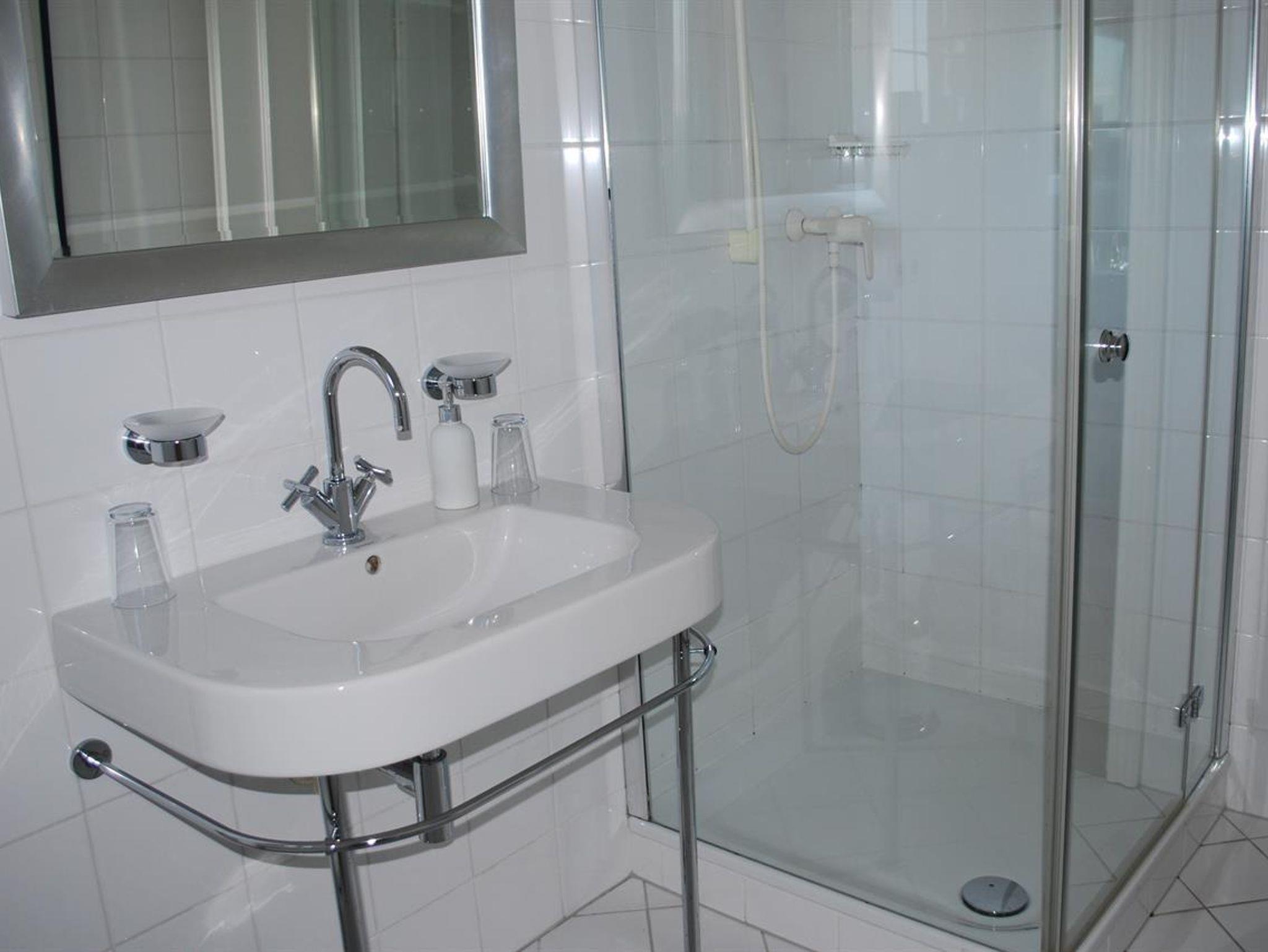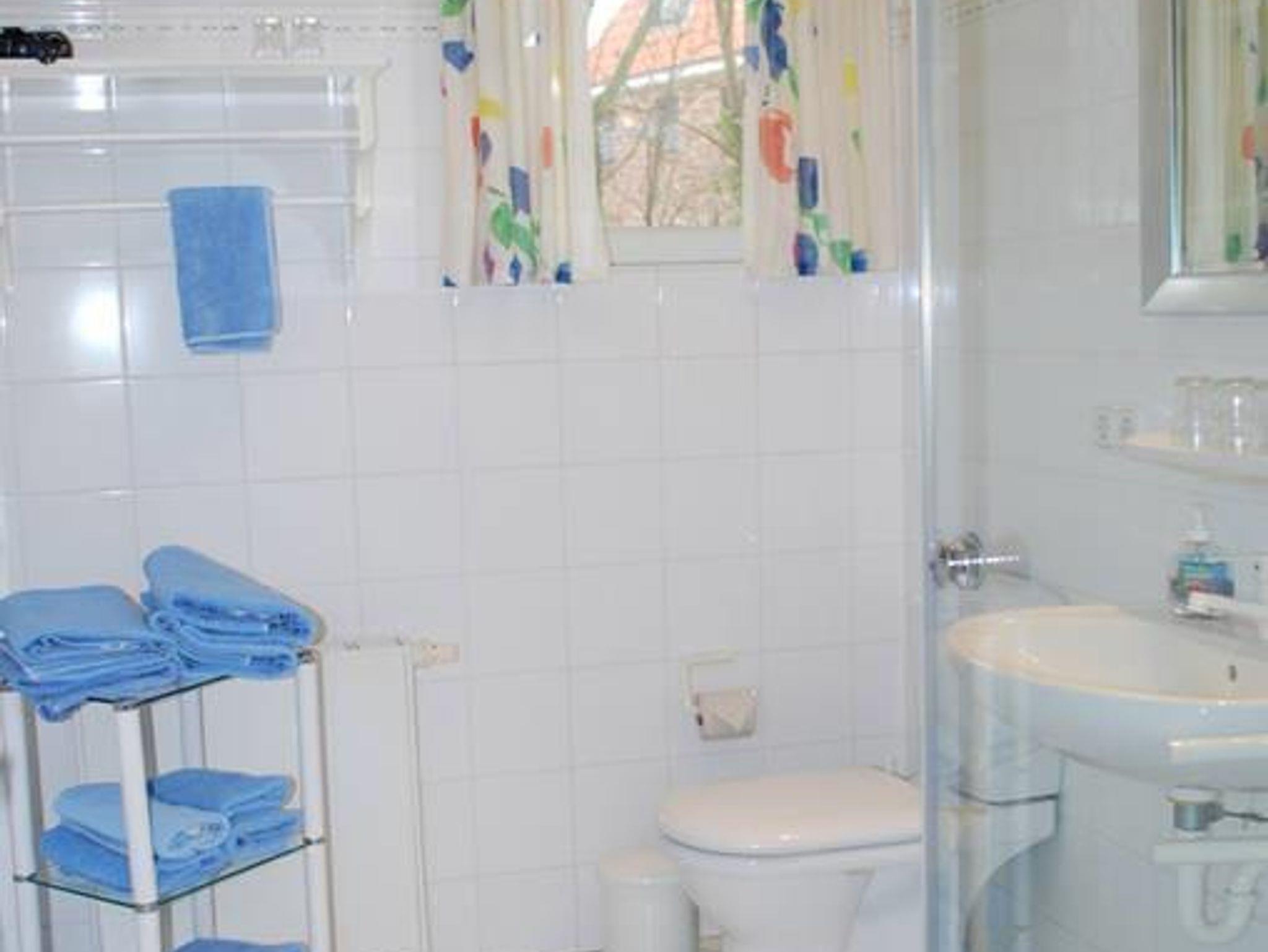 einem Schlafraum mit Doppelbett (1,80 x 2,0 m), und Einzelbett (0,9 x 2,0 m), und einem Duschbad (mit Föhn und Außenfenster)