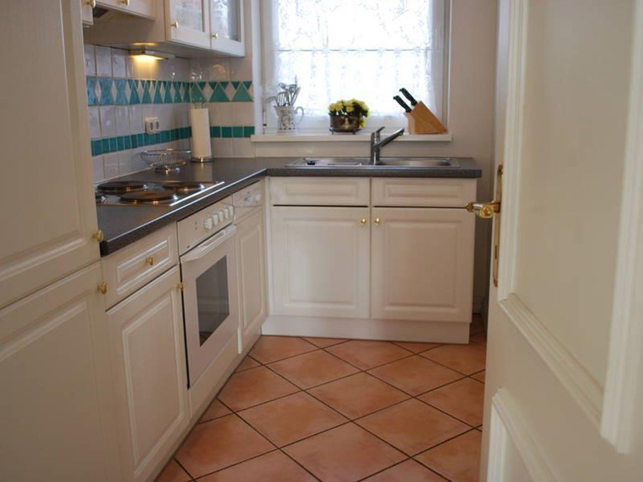 verfügt sie über eine separate voll eingerichtete Landhausküche mit 4-Plattenherd, Spülmaschine, Kühlschrank, Kaffeemaschine,