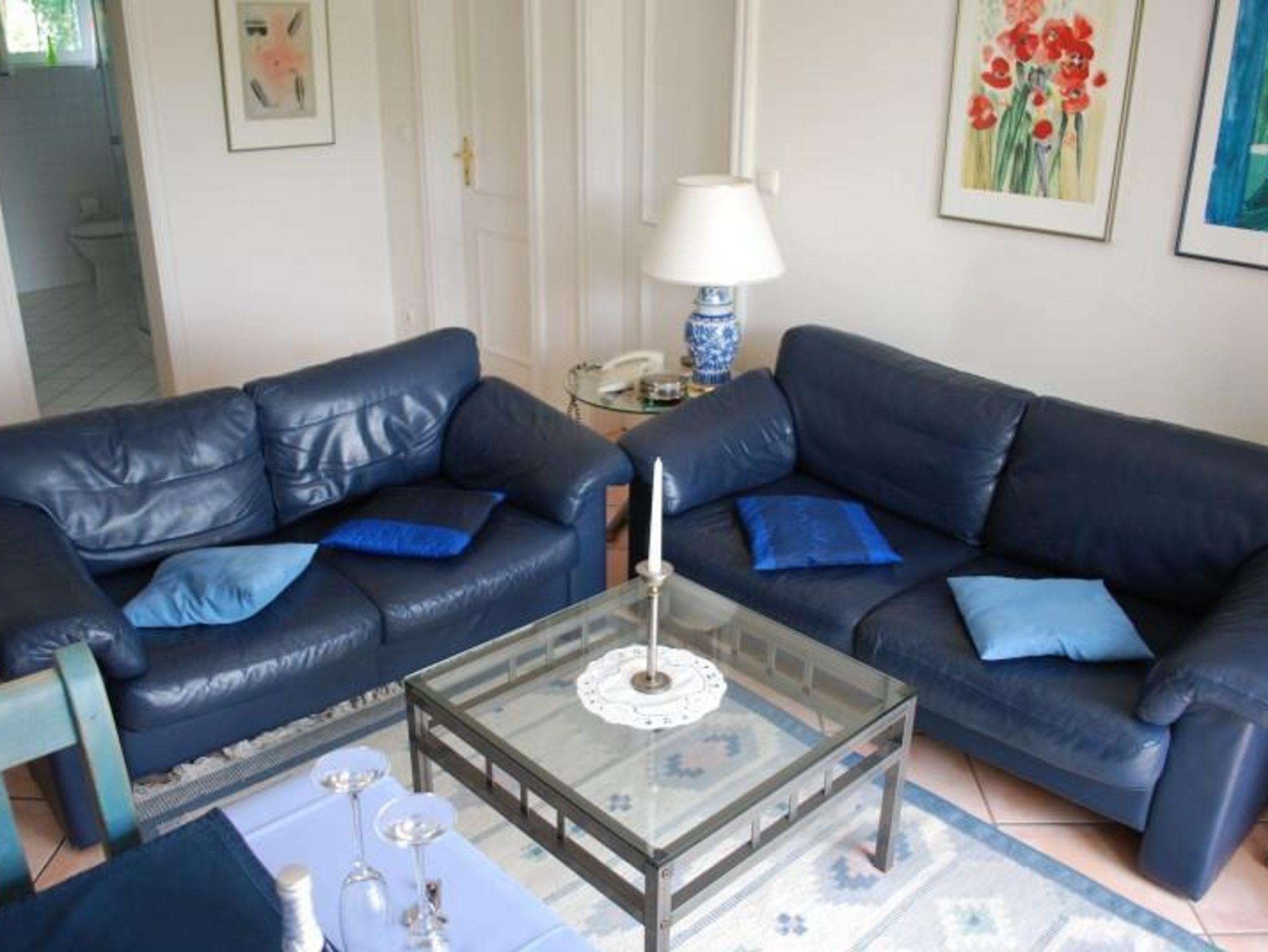 Tischgruppen und Liegen auf den Südterrassen und auf dem großen Rasen sowie zwei Strandkörbe bieten Gelegenheit zum Sonnenbaden oder geselligen Plausch. Jeder Wohnung steht ein reservierter Parkplatz auf dem Grundstück zur Verfügung.