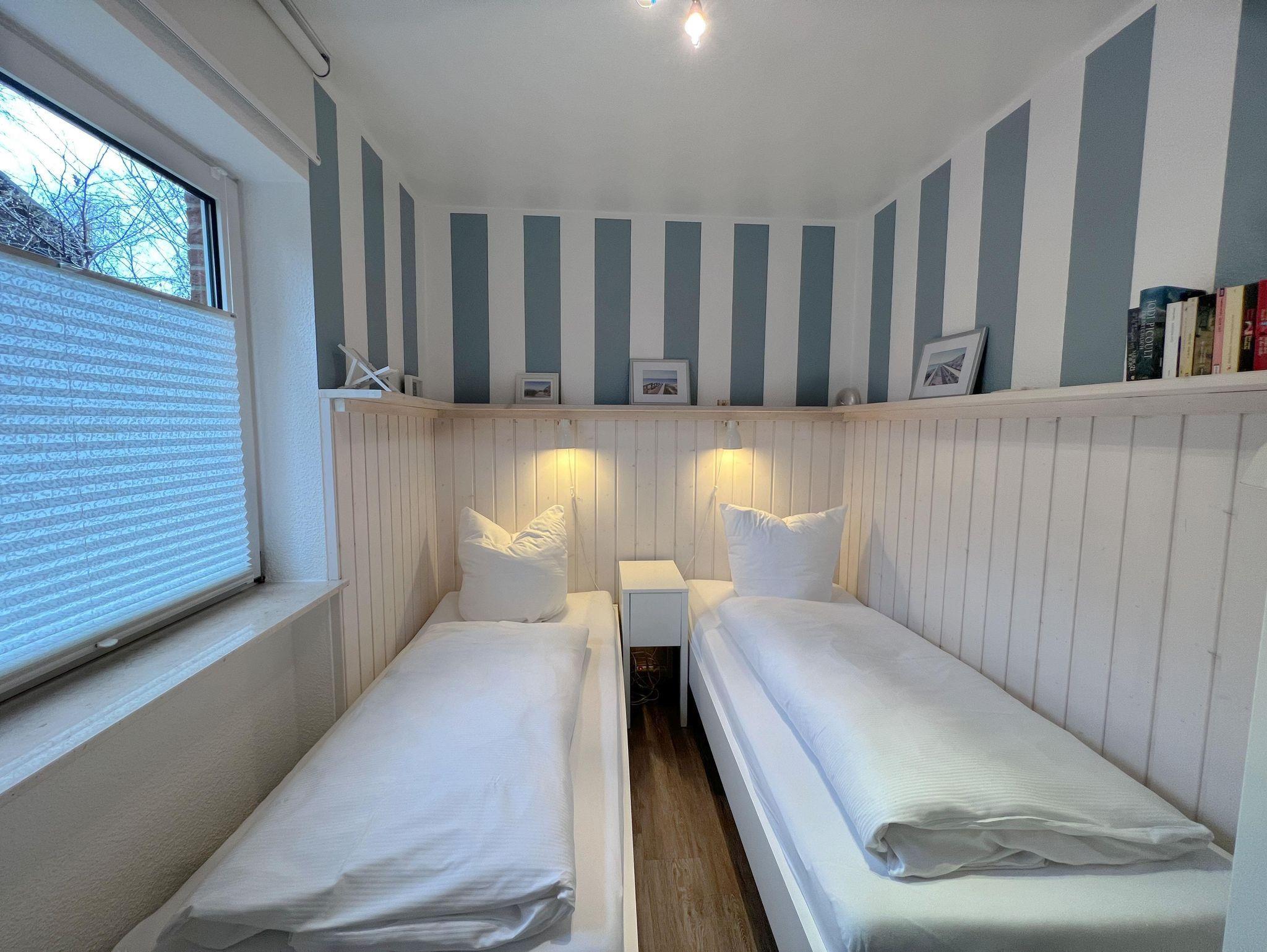Schlafzimmer: 2 Einzelbetten, Nachttisch, Kleiderschrank, JAWO Elektro Direktheizung, 2 Ablagen