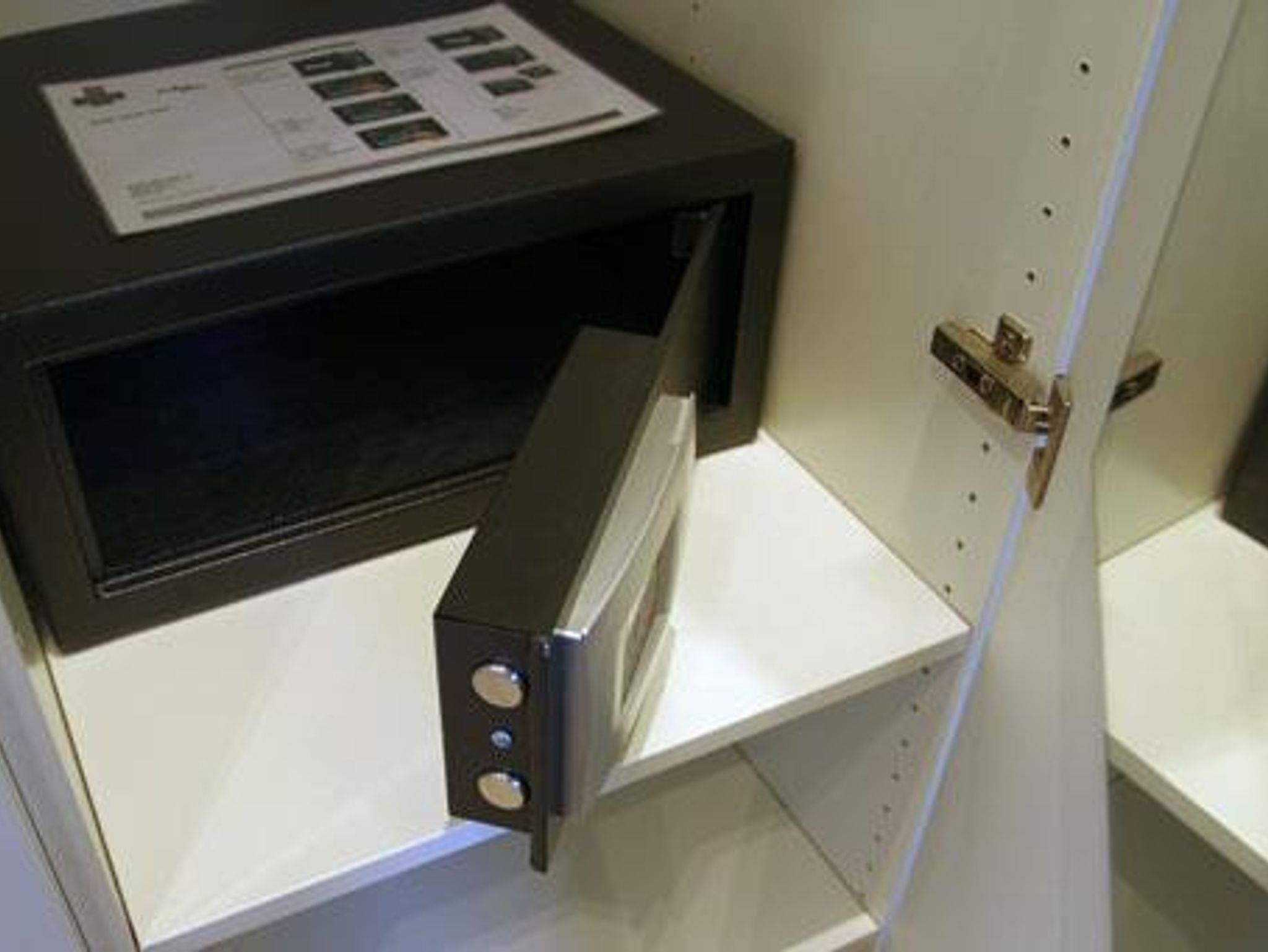 Das Schlafzimmer verfügt über zwei Betten die wahlweise als Einzelbetten oder als Doppelbett genutzt werden können. Neben einem geräumigen Kleiderschrank gehören 2 LED- Leseleuchten und ein 22“ TV zur Ausstattung dieses Raumes. Ein Hoteltresor rundet das Ausstattungspaket ab. Der Raum ist ruhig zur Waldseite gelegen.