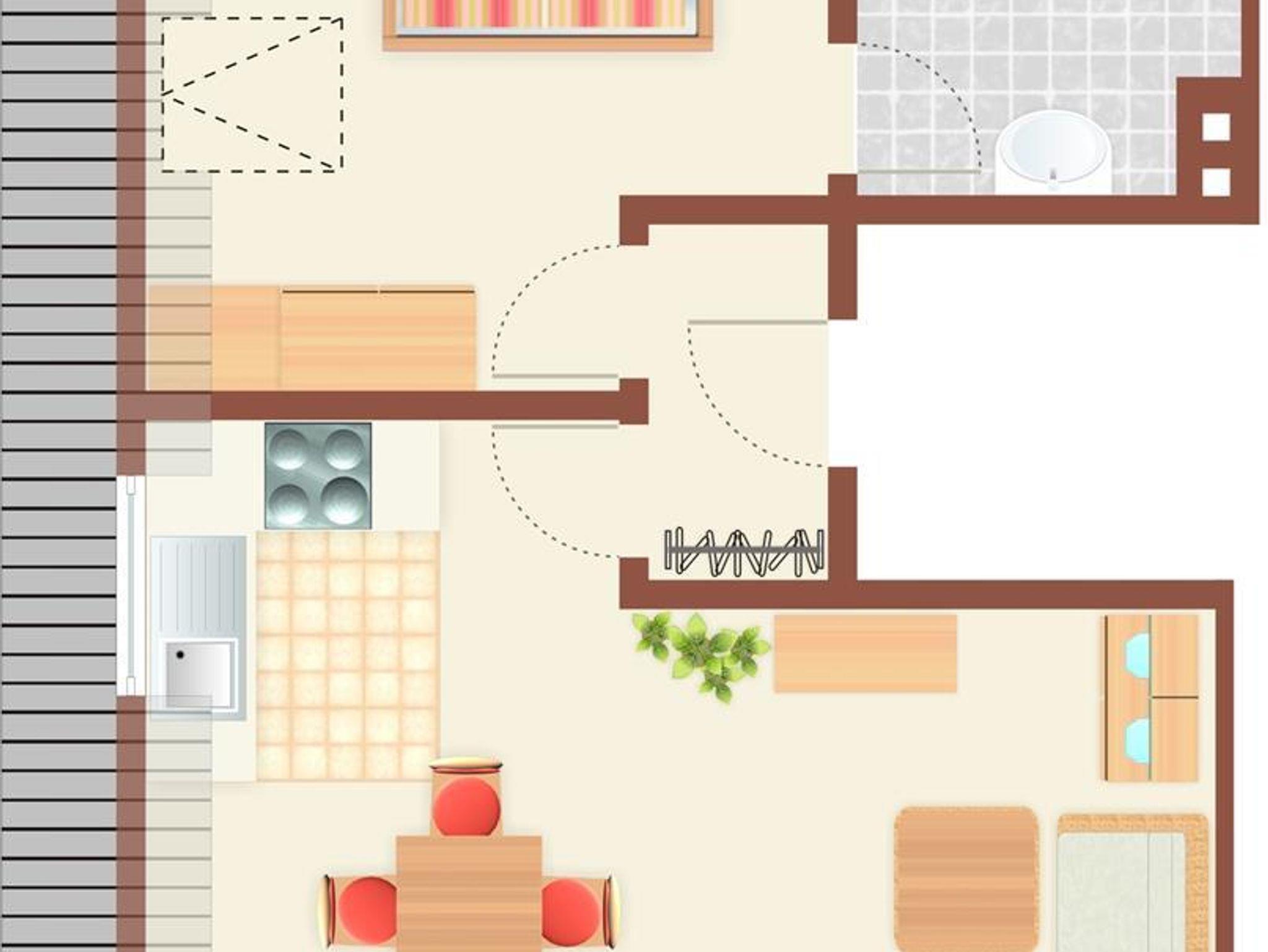 Bad mit Dusche/WC, Balkon mit Balkonmöbeln. Sehr behaglich eingerichtet.