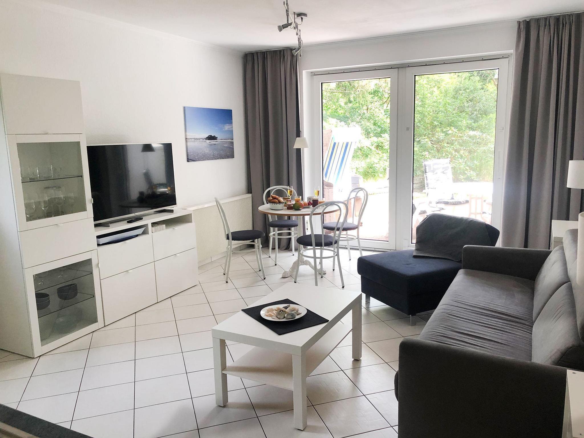 Tannengrund Nr. 01 ist eine 2-Zimmer-Ferienwohnung im EG - ideal für 2, aber auch als Familie nutzbar! Die Nichtraucher-Wohnung hat neben dem hellen, gemütlichen Wohnbereich eine umfassend ausgestattete, moderne Küchenzeile mit Cerankochfeld und Backofen und ein sehr hübsches Bad. Auf der abgetrennten Terrasse in südöstlicher Ausrichtung können Sie im Strandkorb Nordseeluft schnuppern und nachts im Schlafzimmer von den nächsten Aktivitäten träumen.