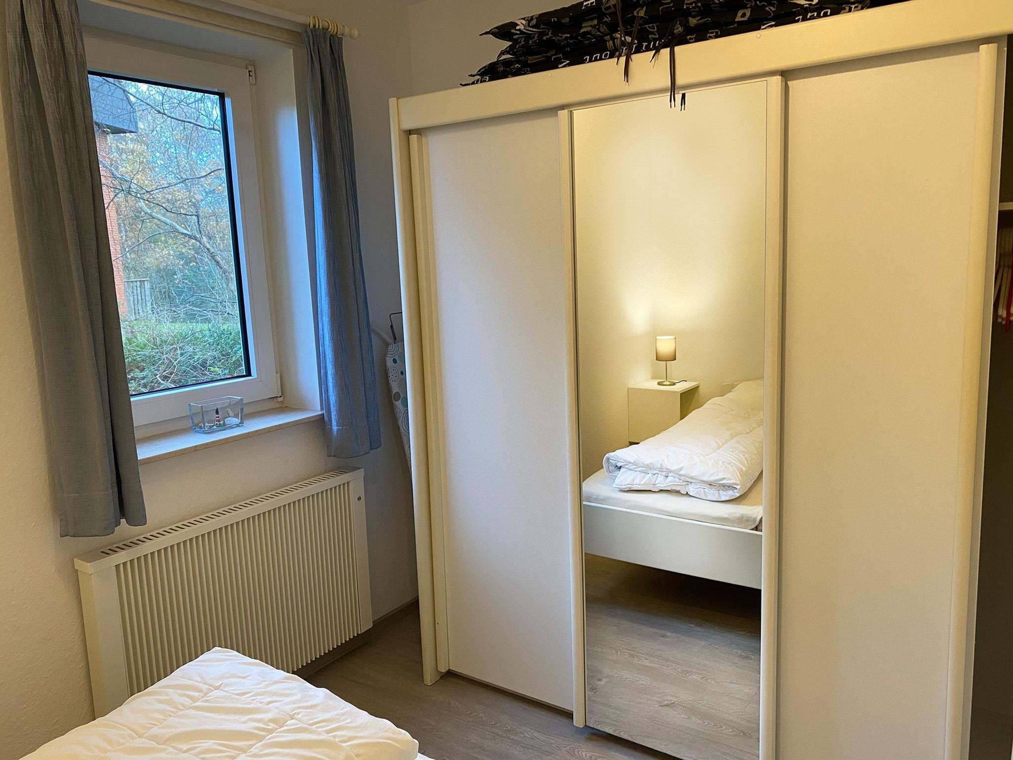 Schlafzimmer: Doppelbett 2,00 x 1,60 m, 2 Nachttische, Radiowecker, Kleiderschrank, Spiegel, Nachtspeicherofen, Bügelbrett, Bügeleisen, Staubsauger