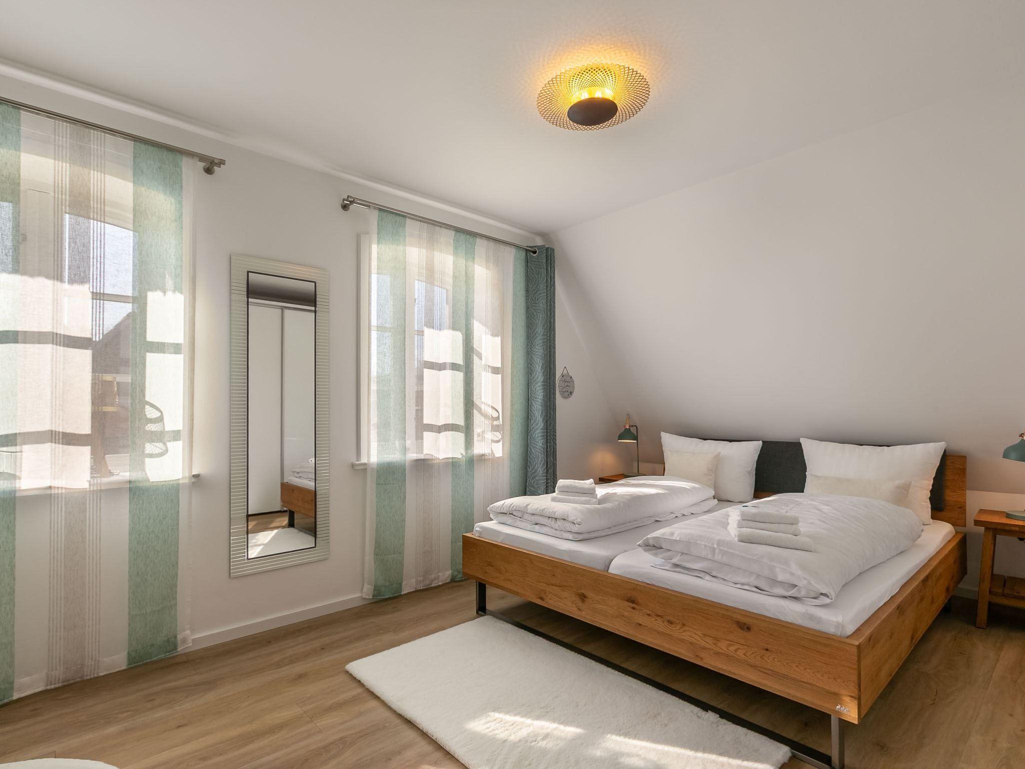Insgesamt fünf Schlafzimmer mit Doppelbetten (je 2x 90x200cm), im Erdgeschoss mit direkten Terrassenzugängen.