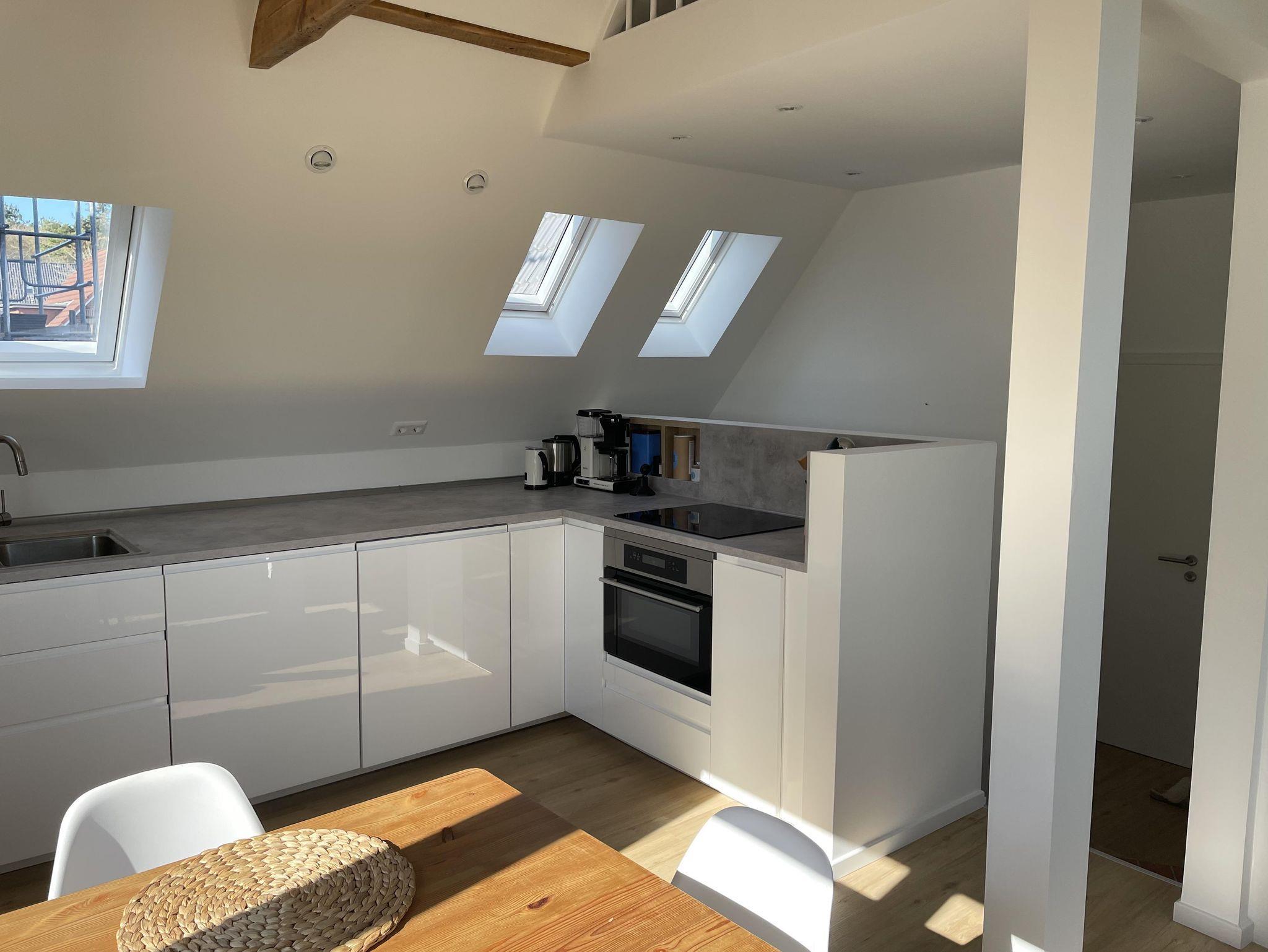 Unsere sehr helle Ferienwohnung 4 ist ideal für den Urlaub von Familien oder von 2 Paaren geeignet. Sie bietet für 4 Personen Schlafplätze (Zustellbett möglich). Sie befindet sich in der 1. Etage und hat eine Wohnfläche von ca. 50qm.