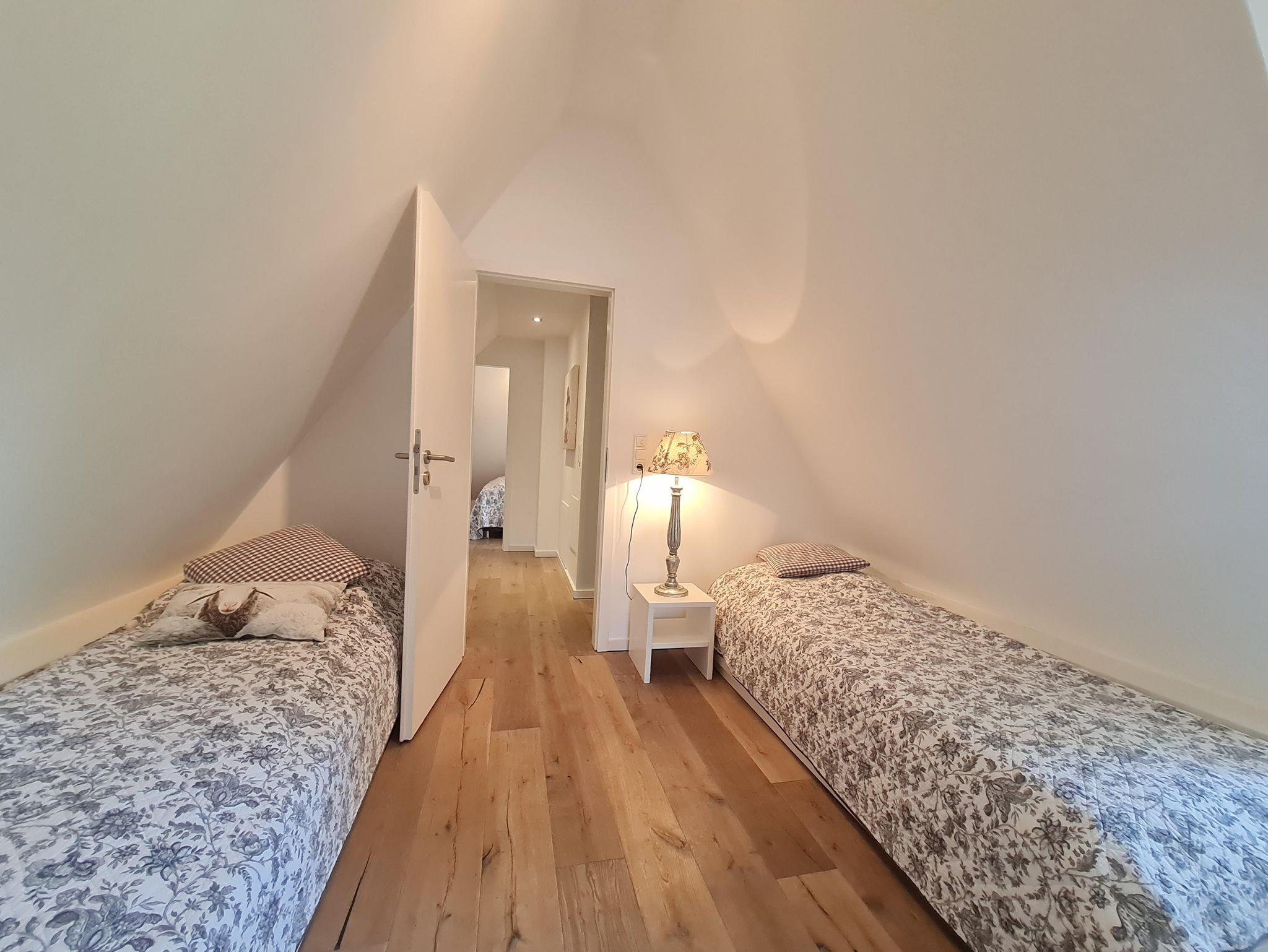 Im Obergeschoss befinden sich 2 Schlafzimmer mit jeweils einem Doppelboxspringbett, sowie ein Schlafraum mit 2 Einzelbetten.