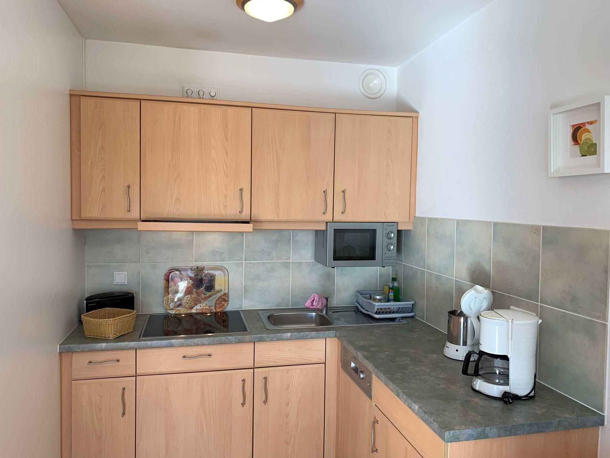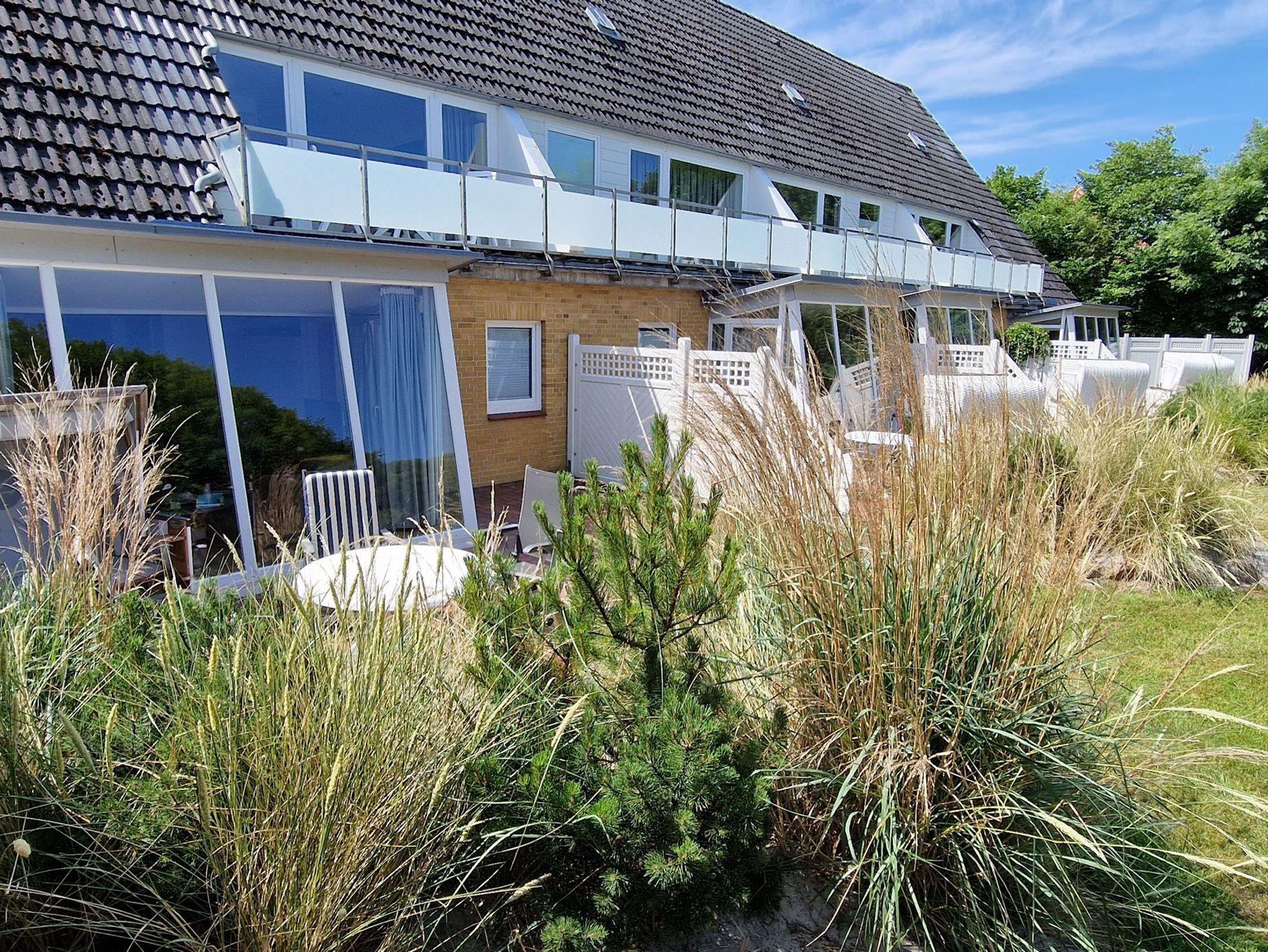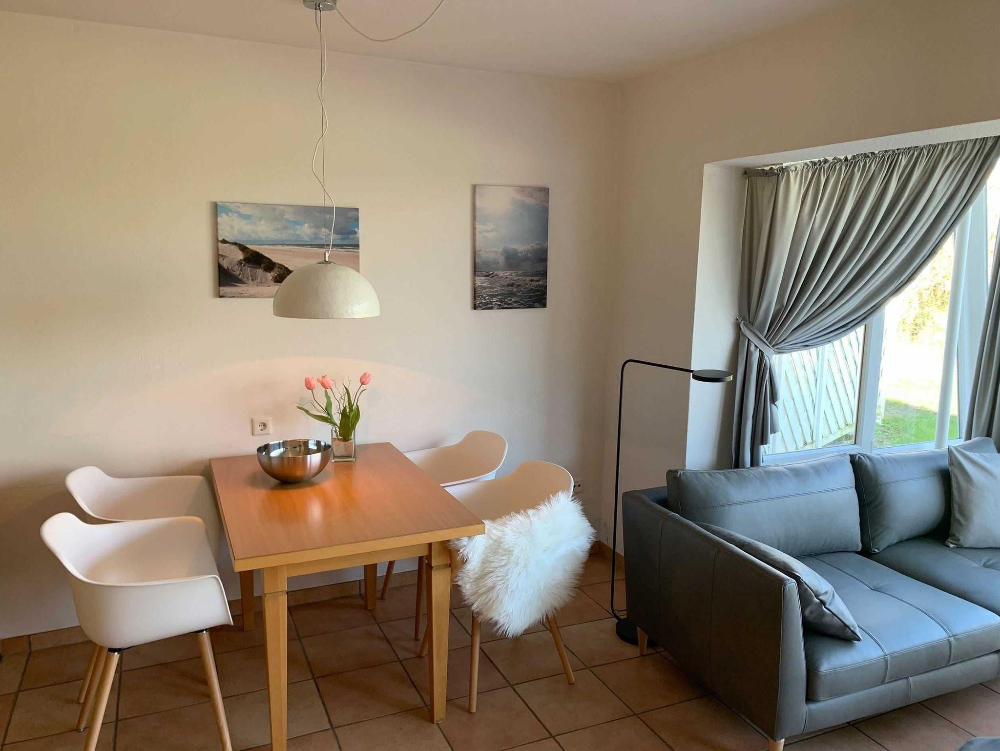 Die Wohnung 7 in der Anlage Luna I liegt im Erdgeschoss des Hauses. Sie ist 55qm groß und geeignet für bis zu 4 Personen. Der Eingangsbereich ist mit einer Garderobe ausgestattet. Das Schlafzimmer verfügt über ein Doppelbett (180x200cm, getrennte Matratzen). Weitere Personen können ein Schrankbett (180x200cm, Matratze nicht durchgehend) im Wohnbereich nutzen. Im Weiteren ist ein Duschbad mit Waschbecken und WC vorhanden. Der Wohn-und Essraum verfügt über eine offene integrierte Einbauküche, einen Esstisch und Sitzbereich mit Fernseher. W-Lan steht kostenlos zur Verfügung. Die Einrichtung ist modern und hochwertig. Der vorgelagerte Wintergarten sorgt für eine angenehme Helligkeit und ermöglicht einen Blick in die wunderschöne Grünanlage. Vom Wohnbereich aus gelangen Sie ebenerdig auf die südlich ausgerichtete Terrasse, die mit Gartenmöbeln und einem Strandkorb ausgestattet ist. Von hier aus blicken Sie in den Garten und auf die alten Obstbäume.